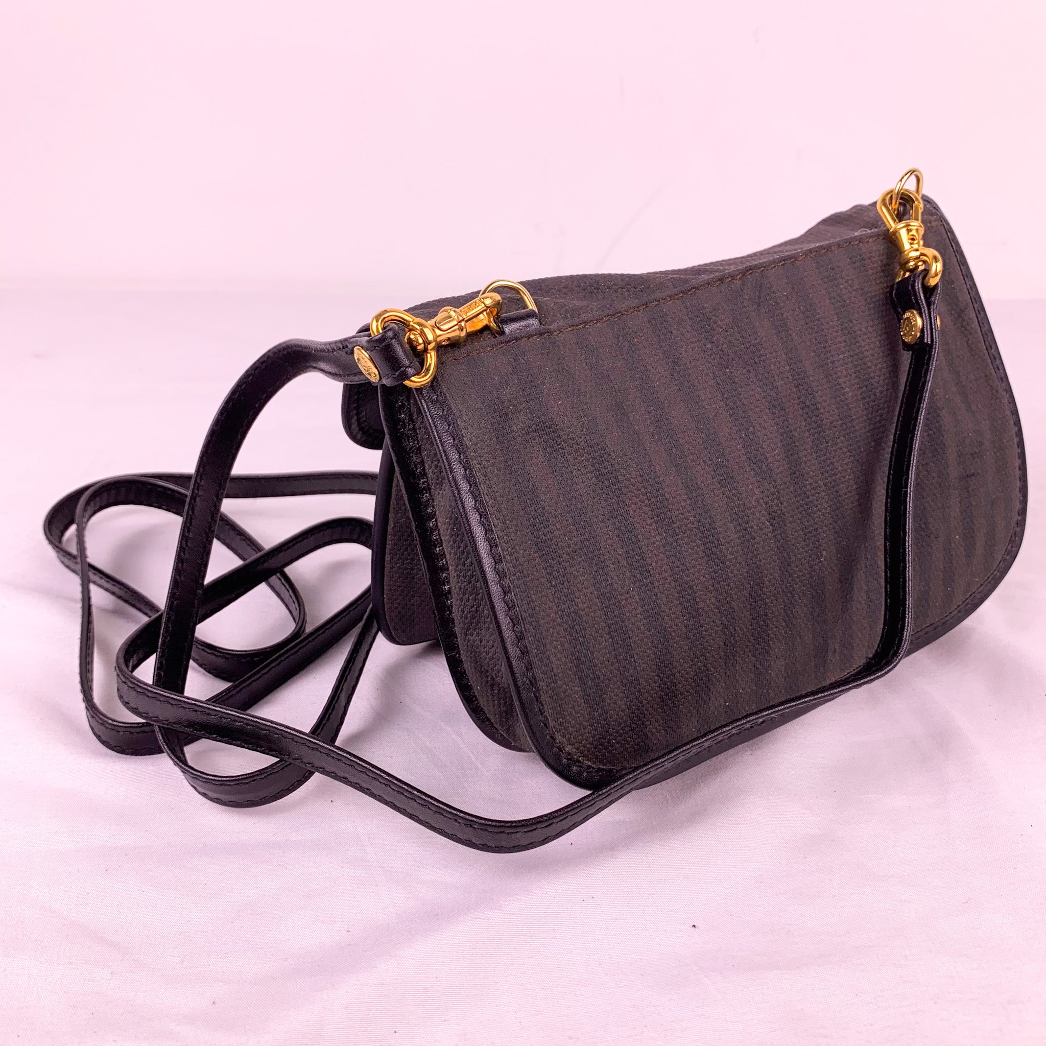Fendi Pequin Mini Striped Coated Leather Shoulder Bag