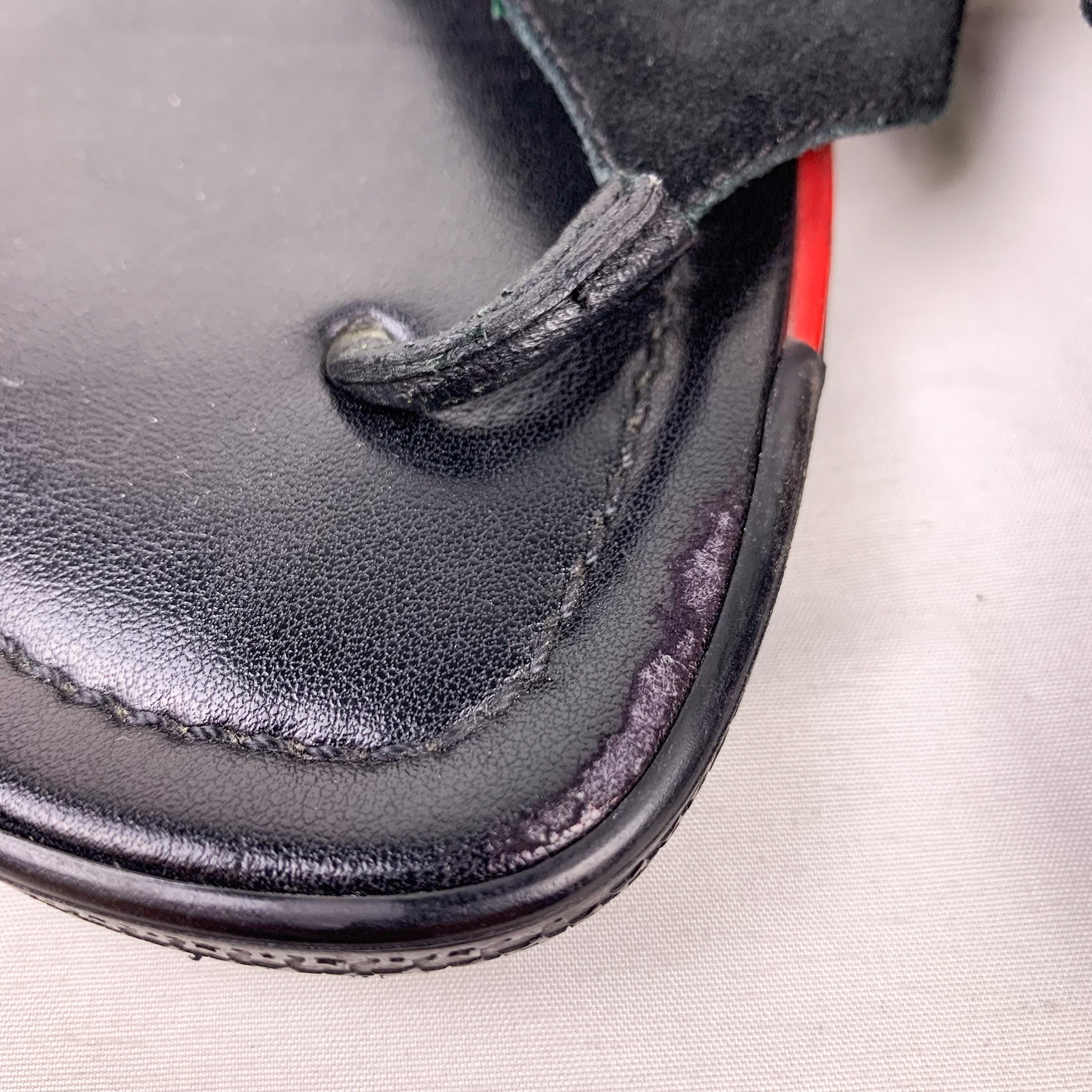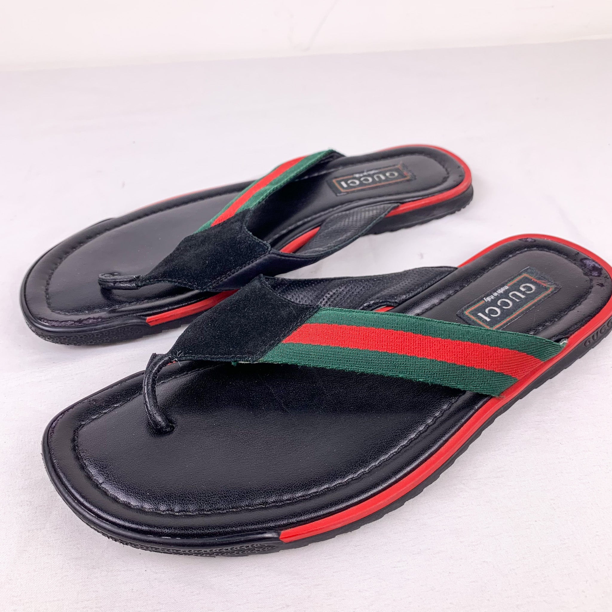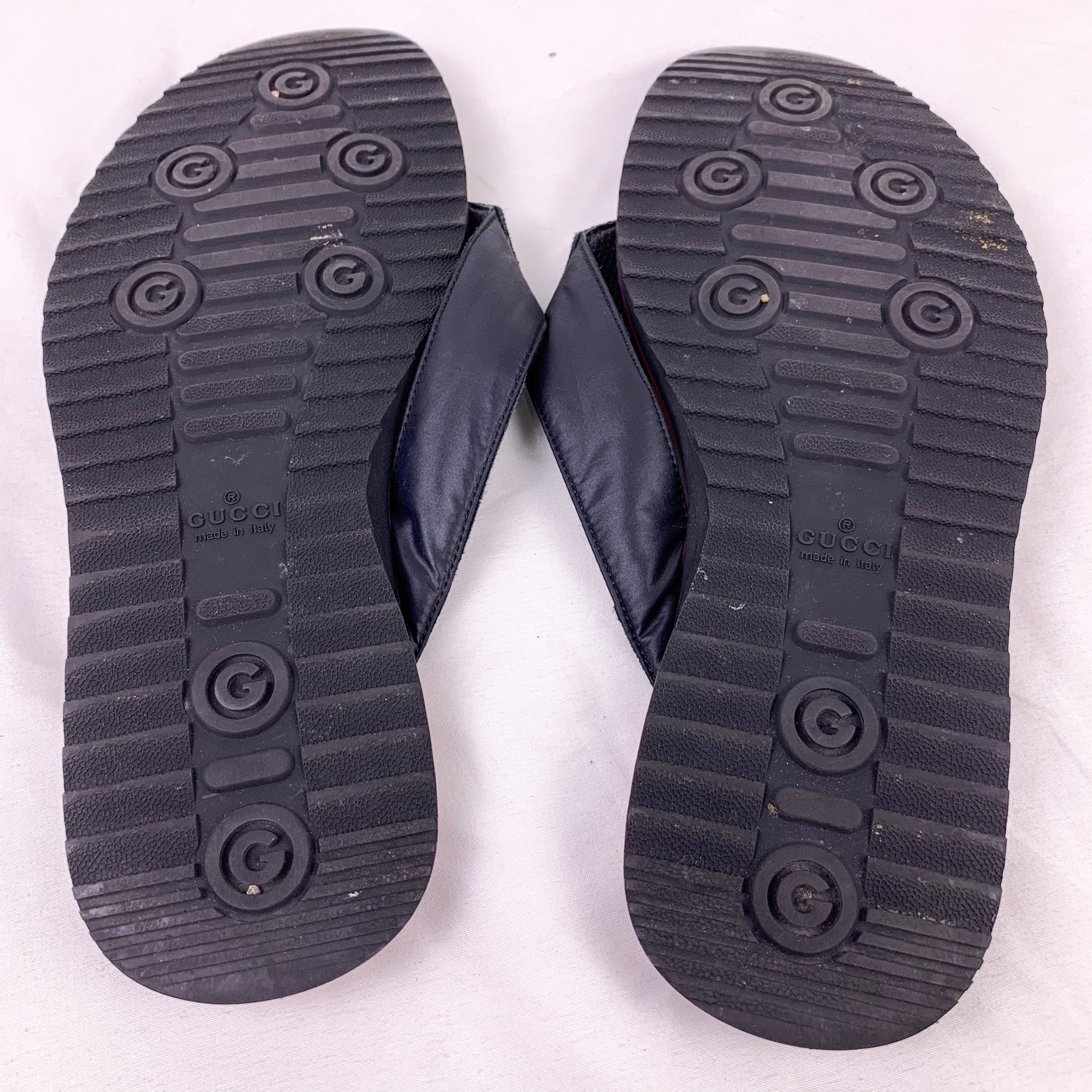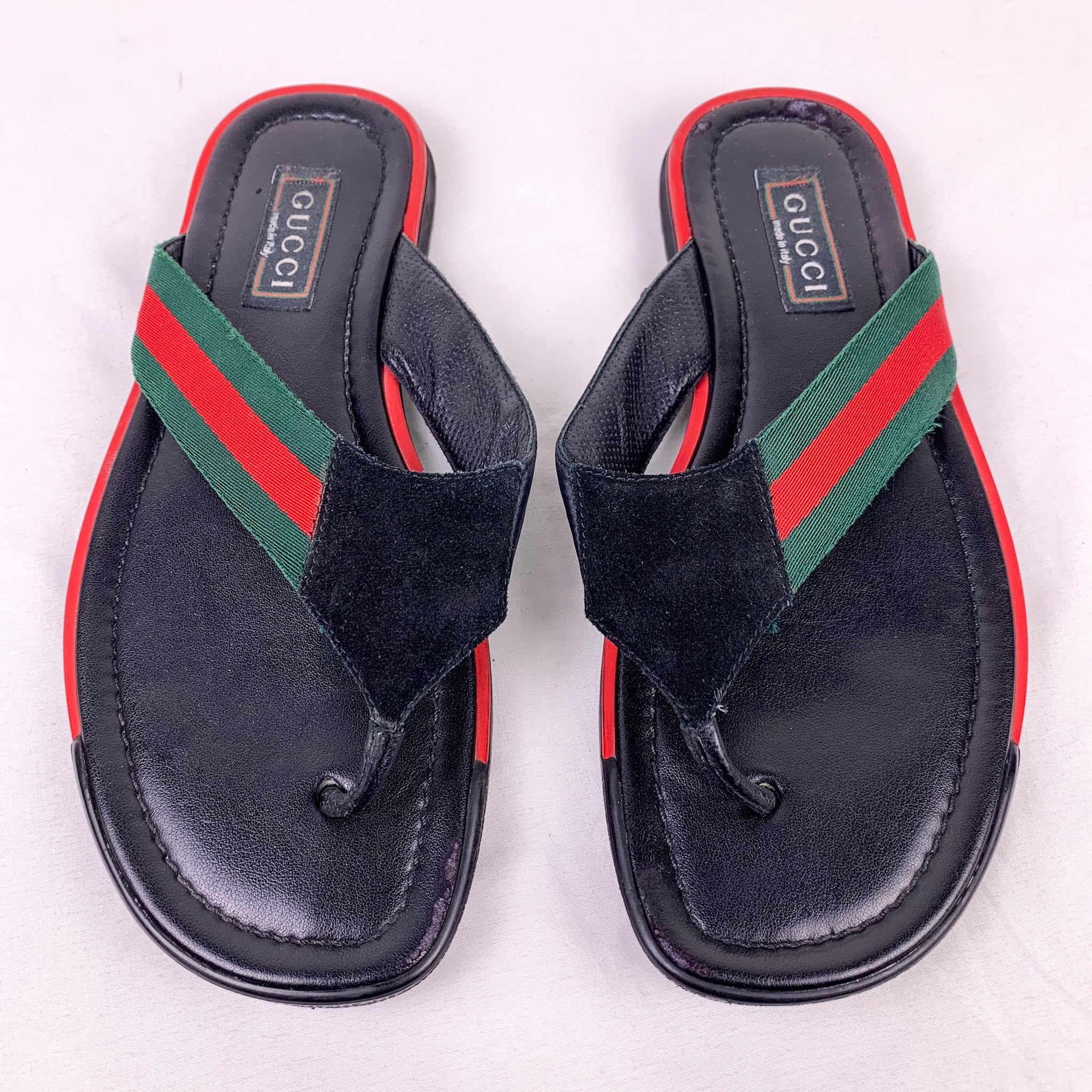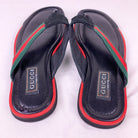Gucci Web Black Leather Flip-Flop Thong Sandals