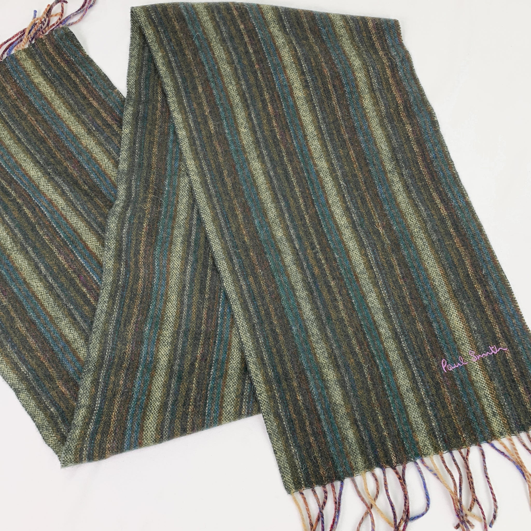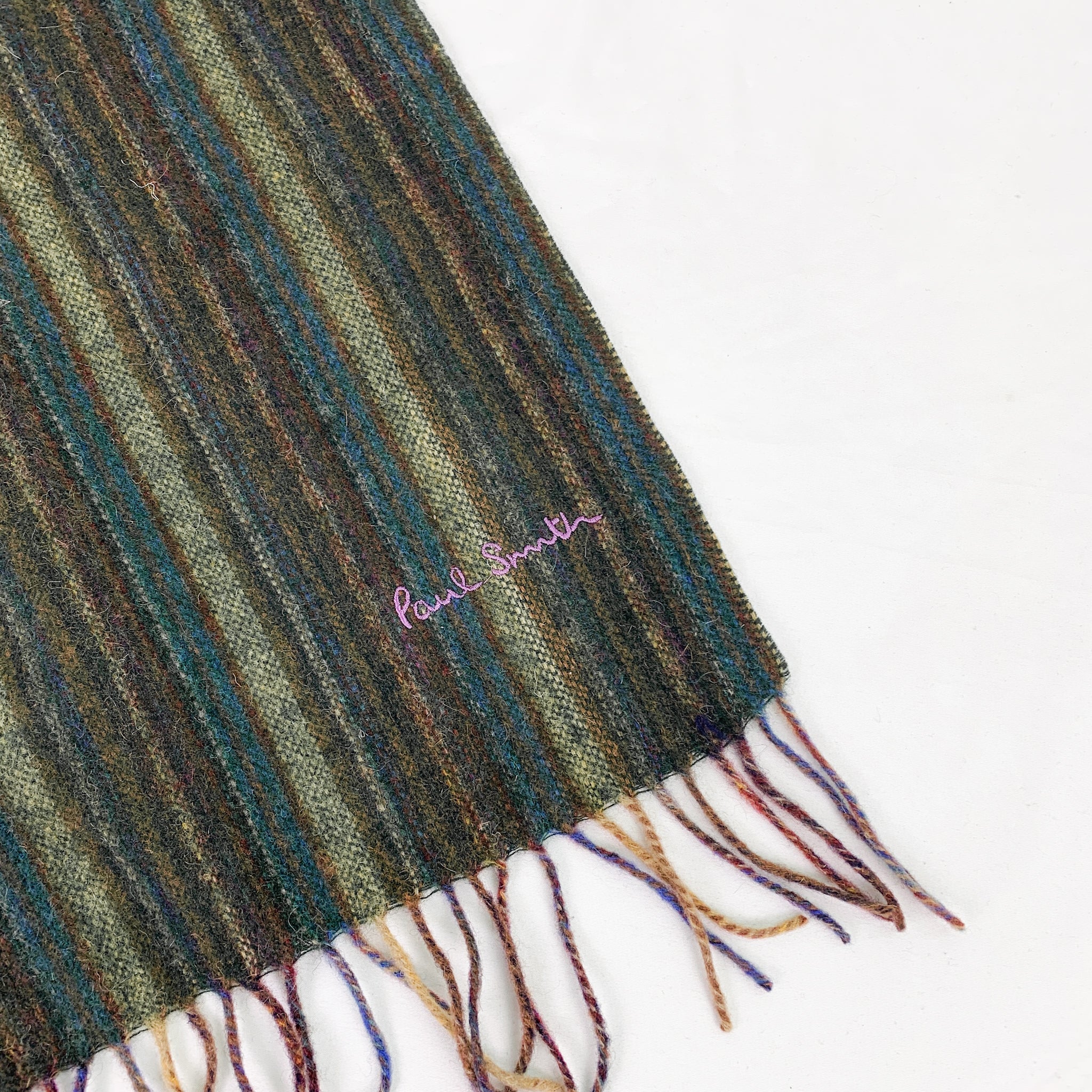 Paul Smith Embroidered Logo Green Knit Wool Scarf