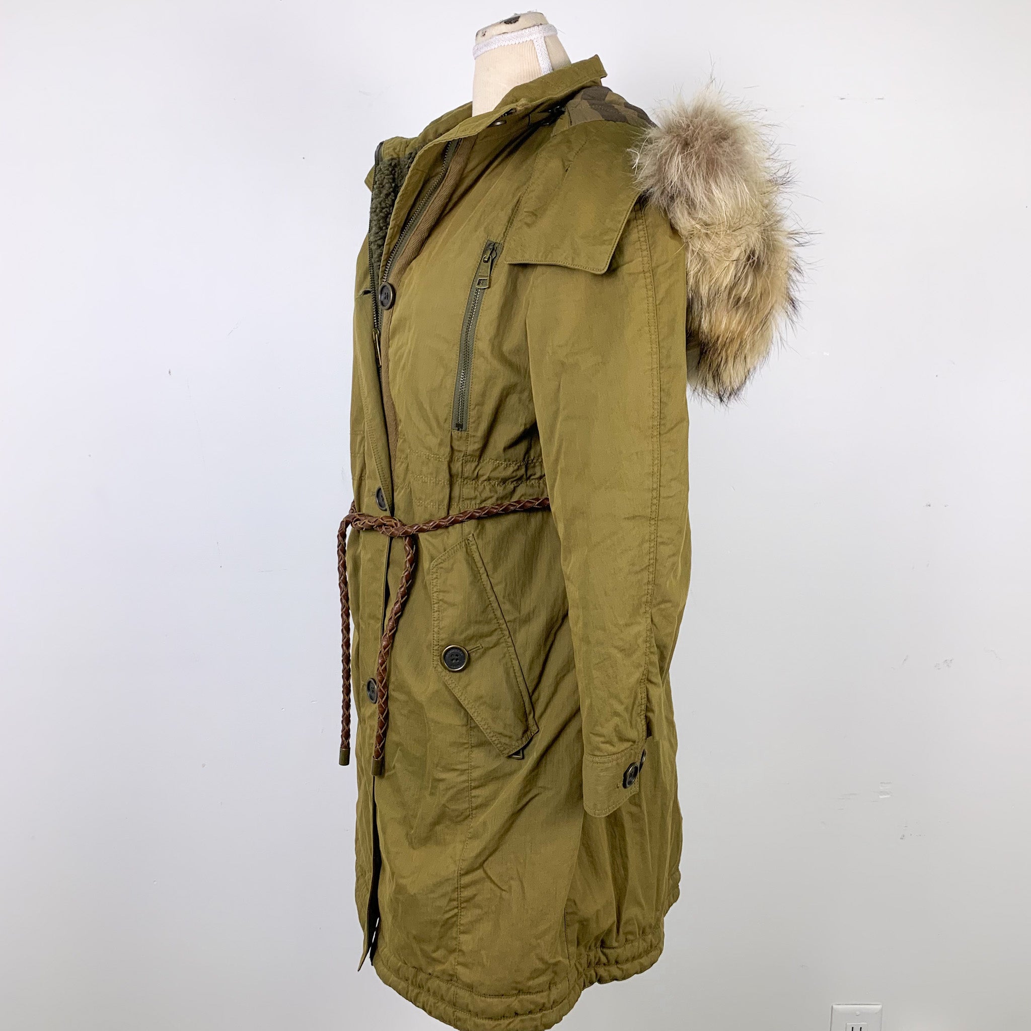 Burberry Olive Green Winter Coat With Racoon Fur Trim (Small)