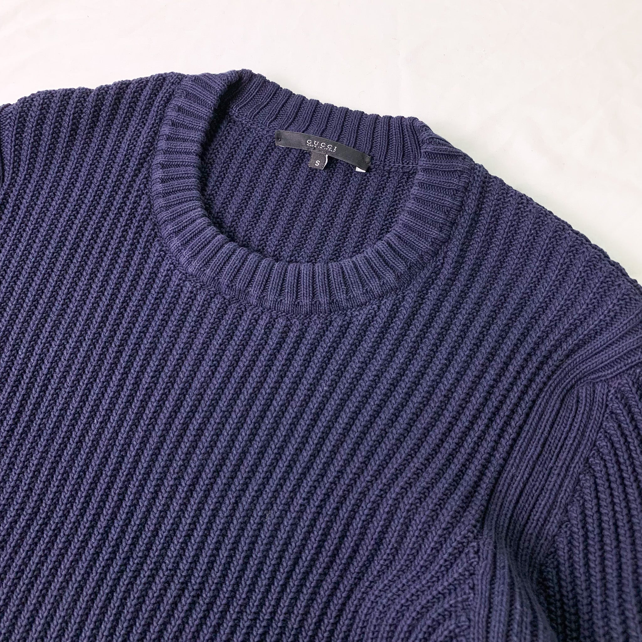 Gucci Navy Cotton Rib-Knit Sweatshirt (Small)