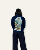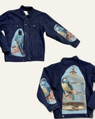 Upcycled Black Denim Jacket with Embellishments and Bird Cutouts
