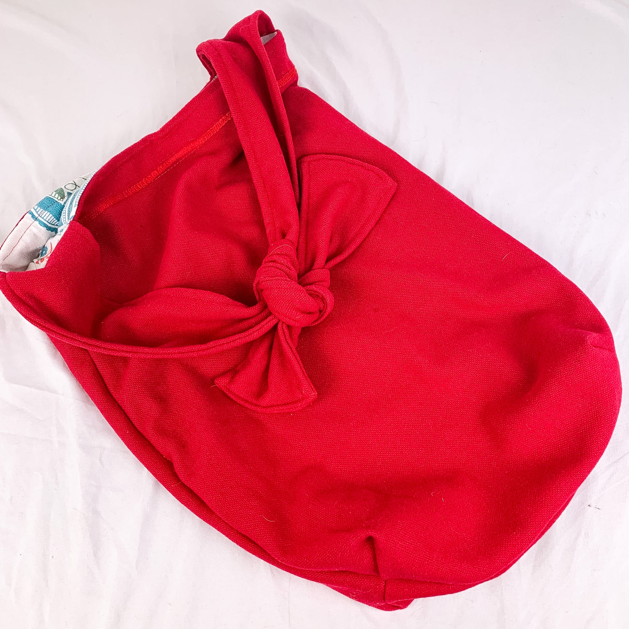Upcycled Red Wool Tie-Up Tote Bag With Linen Lining