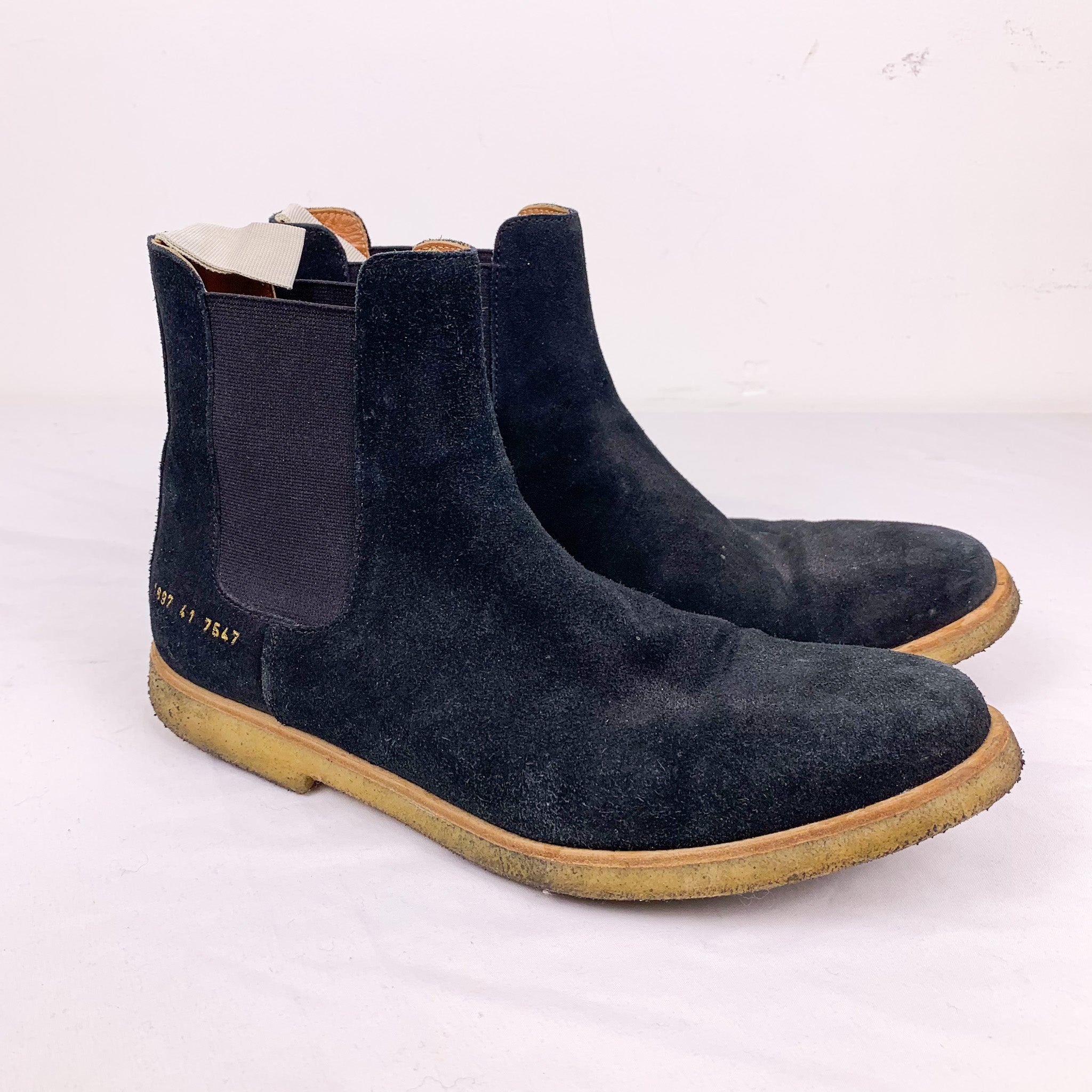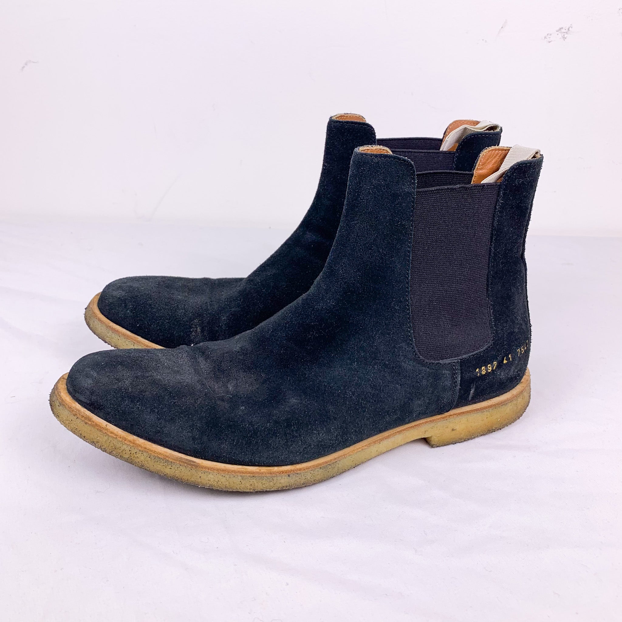 Common Projects Black Suede Crepe Sole Chelsea Boots (41)