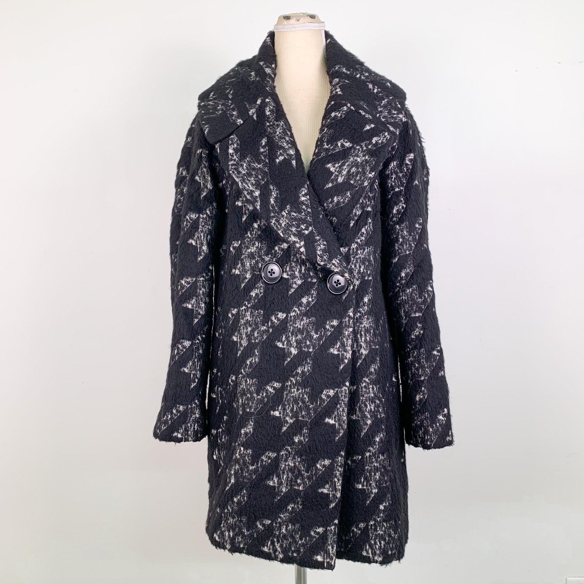 Elie Tahari Shiloh Double Breasted Houndstooth Coat (Small)