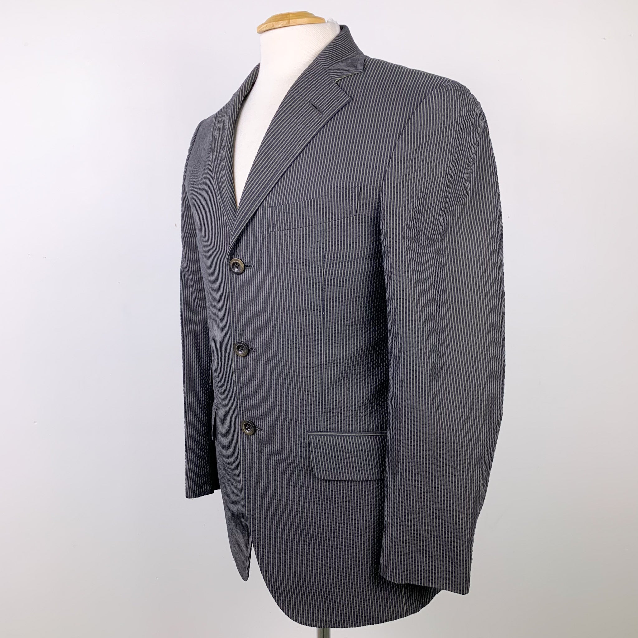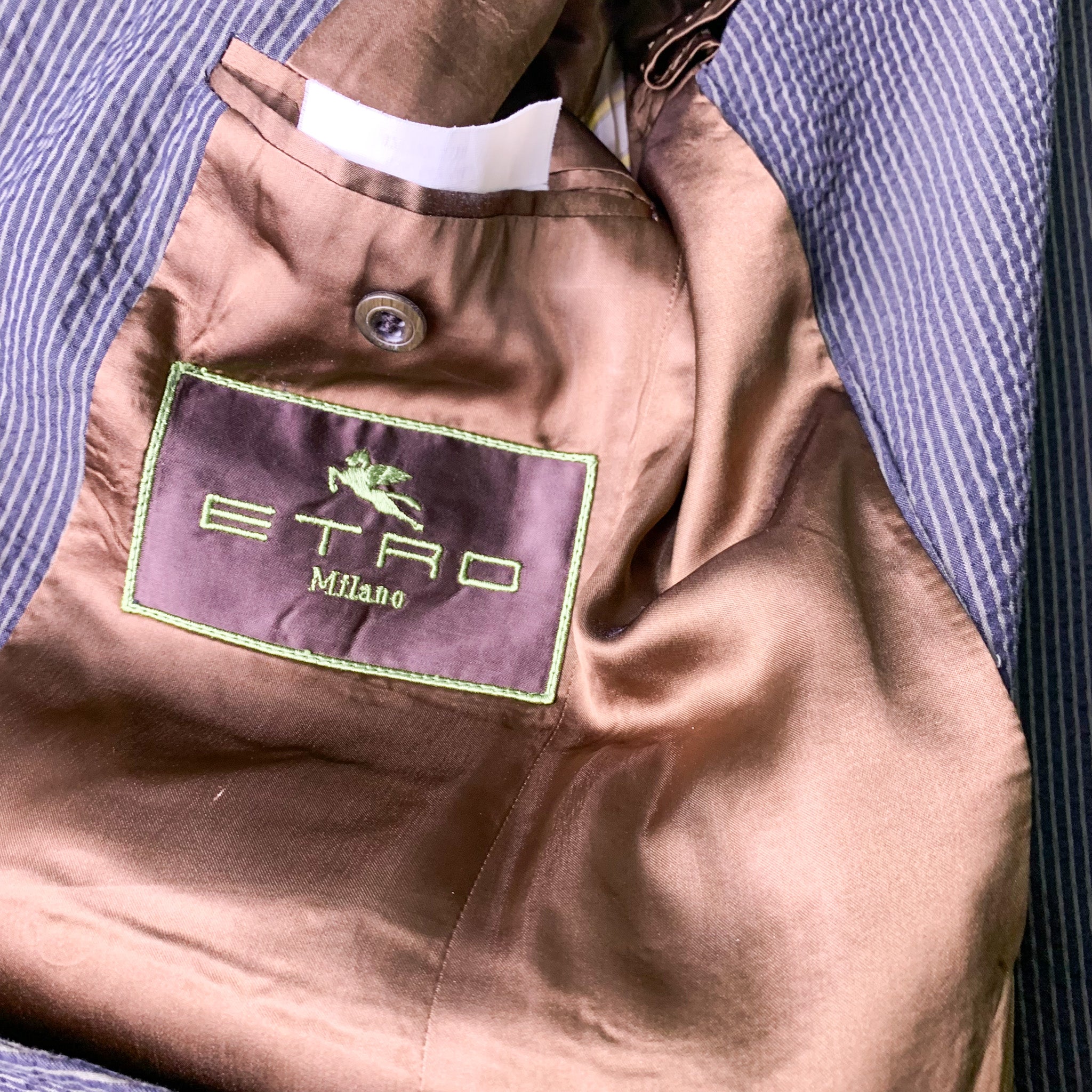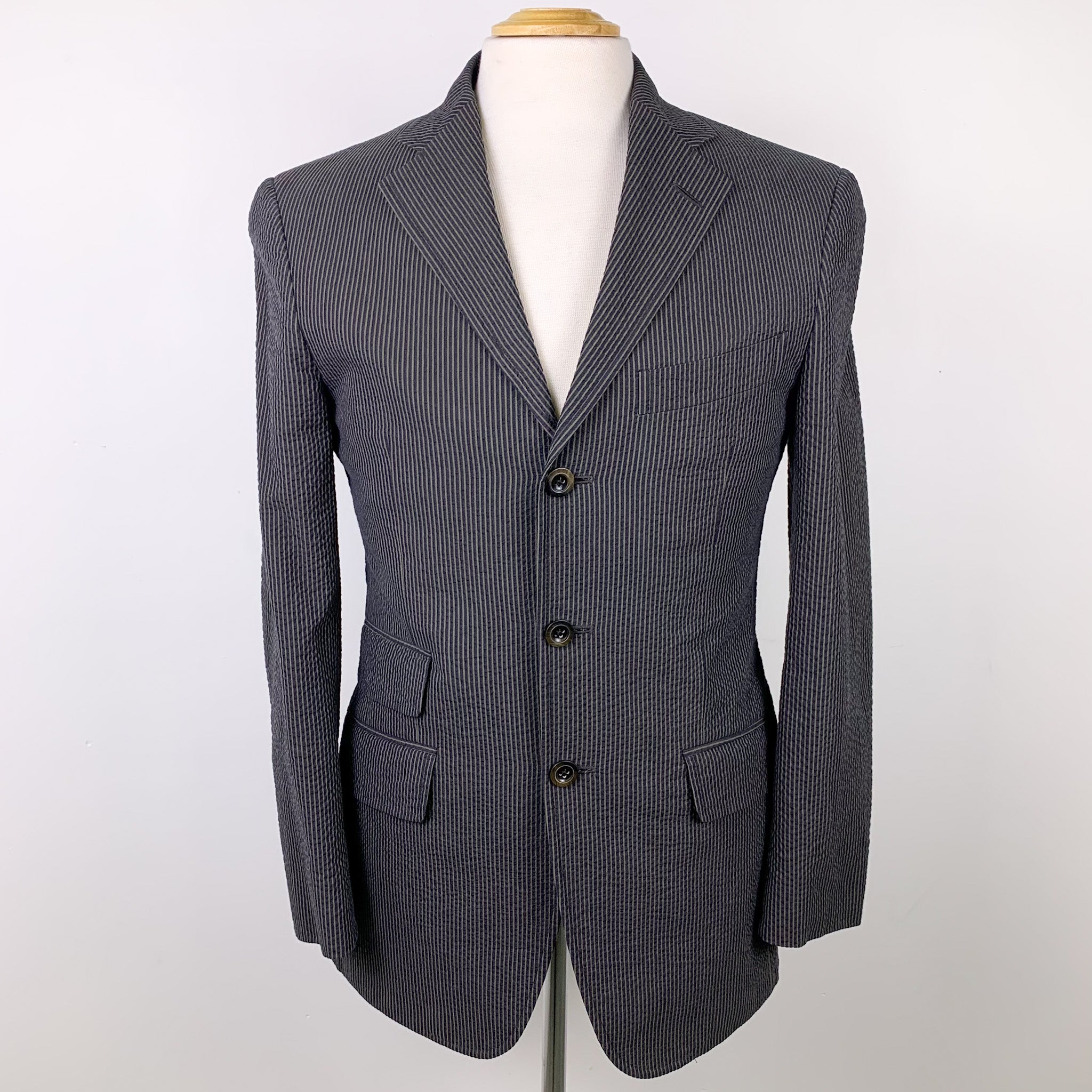 Etro Cotton Seersucker Brown Striped Blazer Jacket (46)