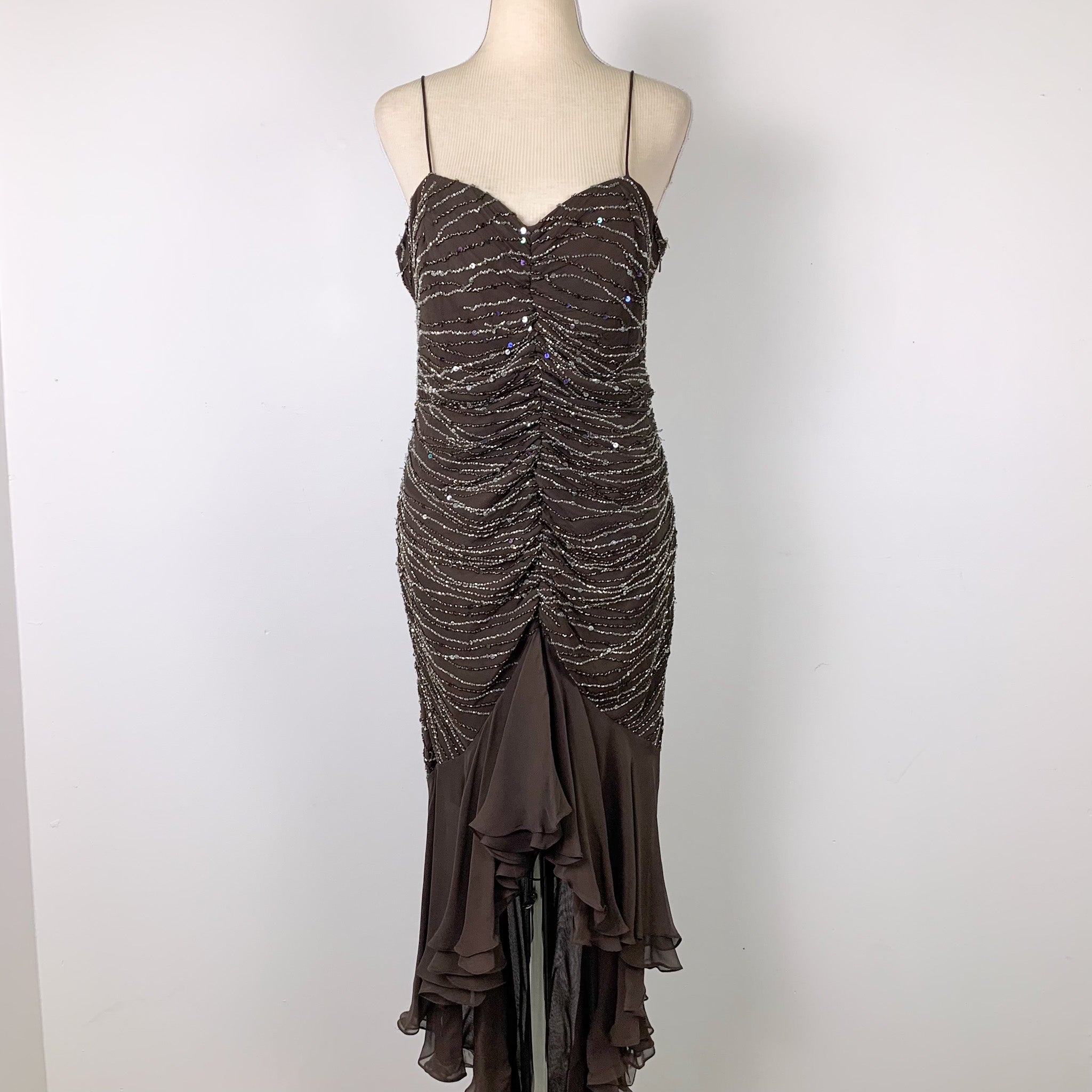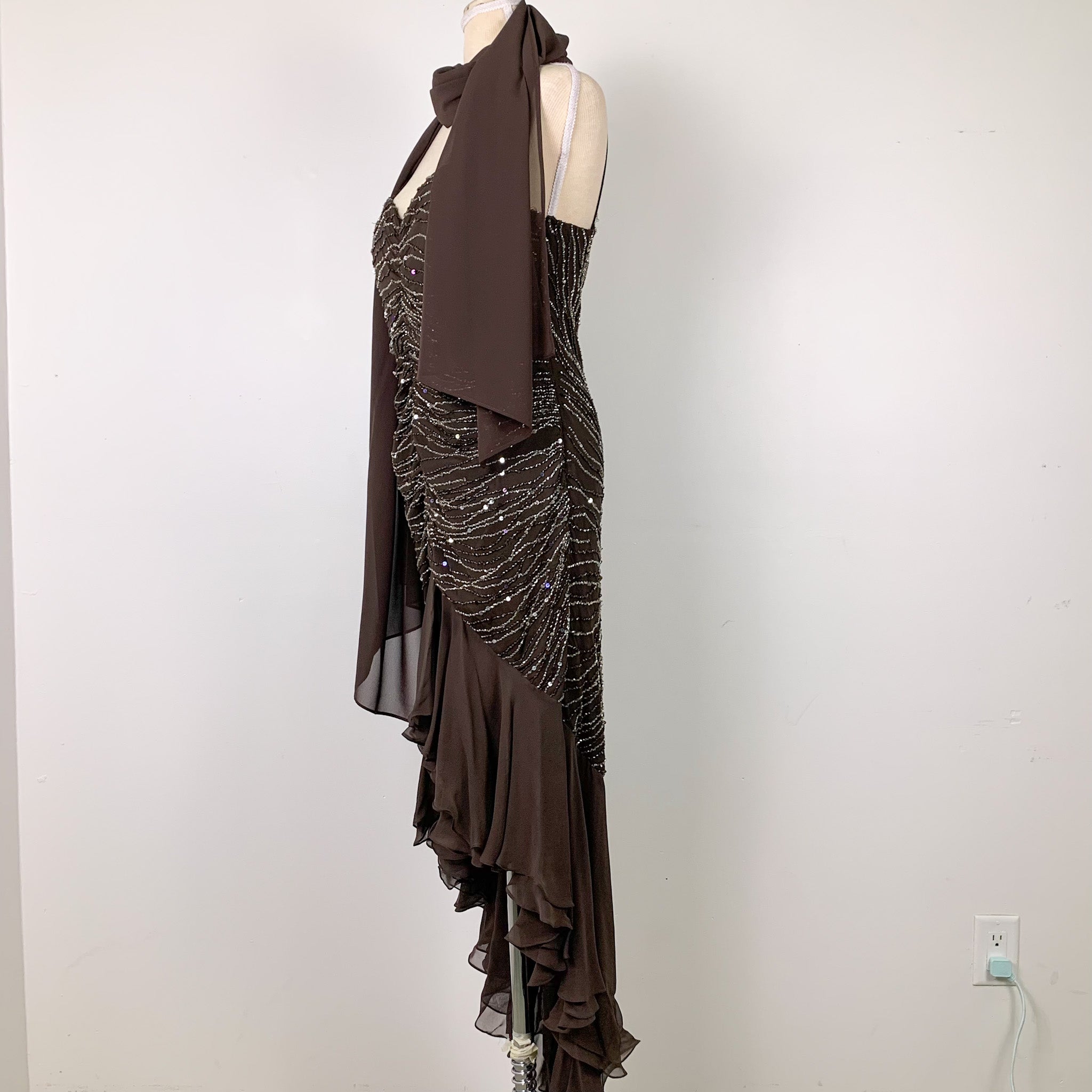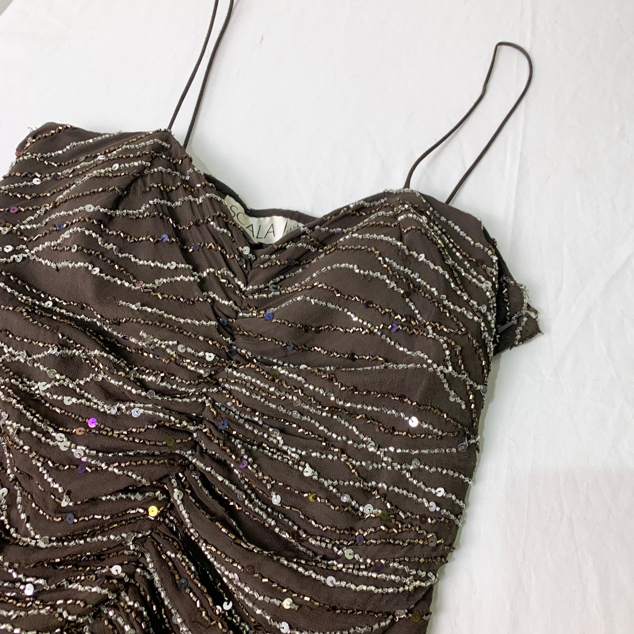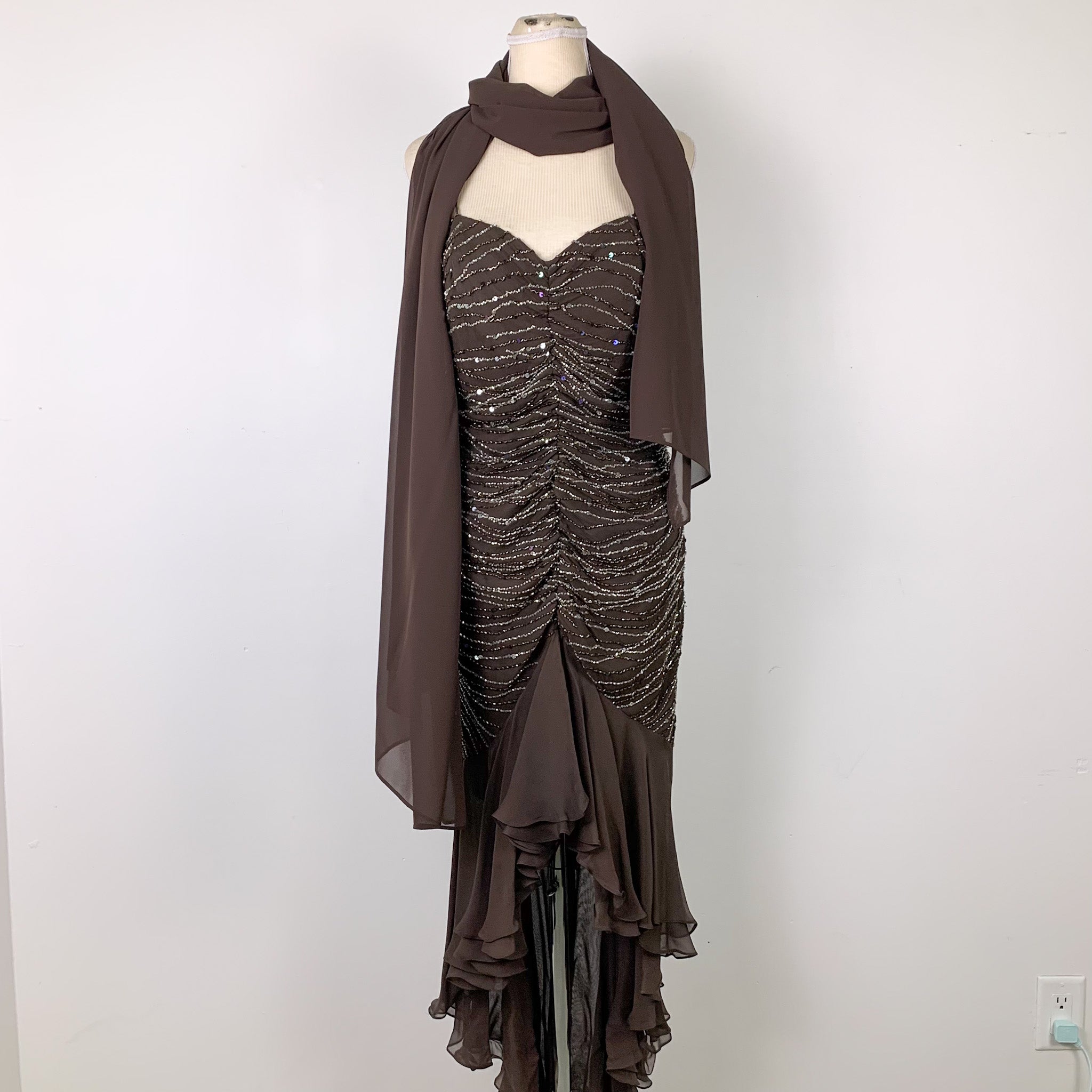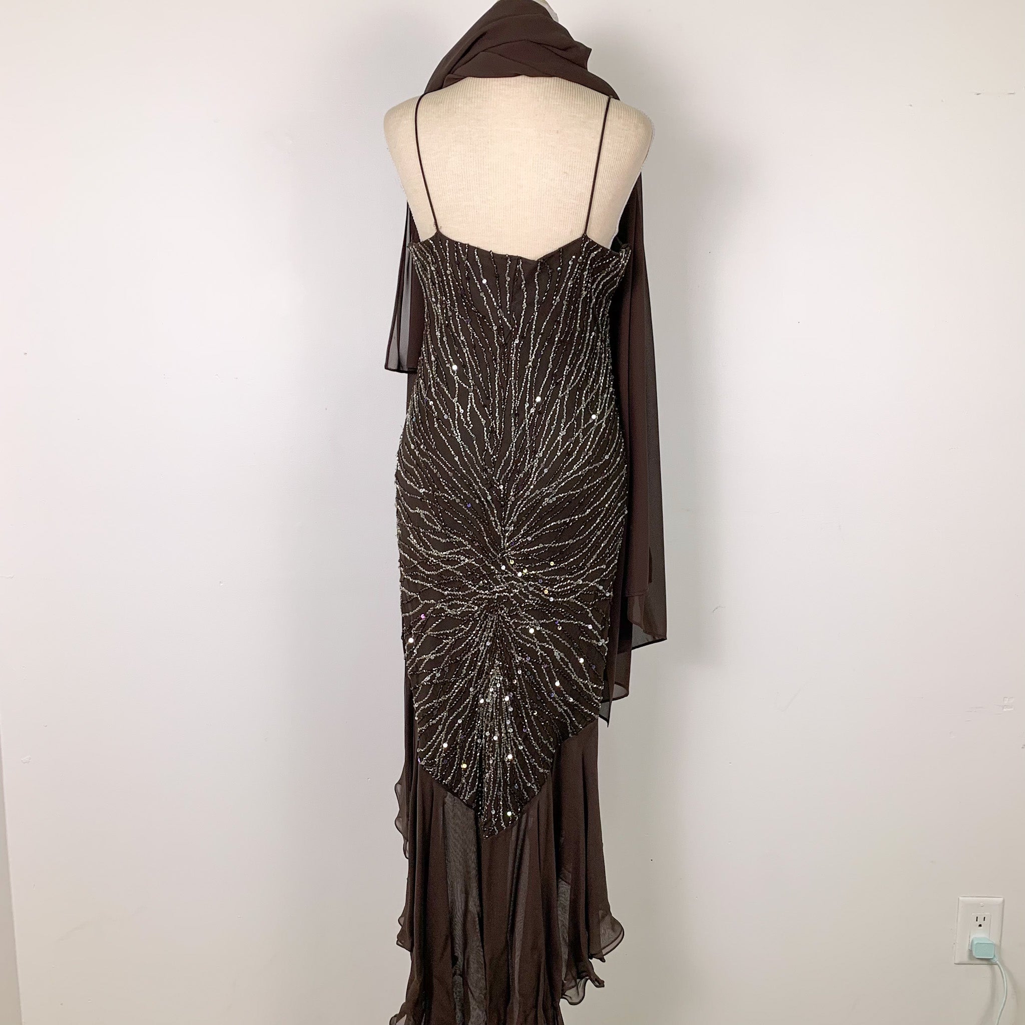 Scala Vintage Silk Beaded Sequin Dress & Scarf (X-Large)