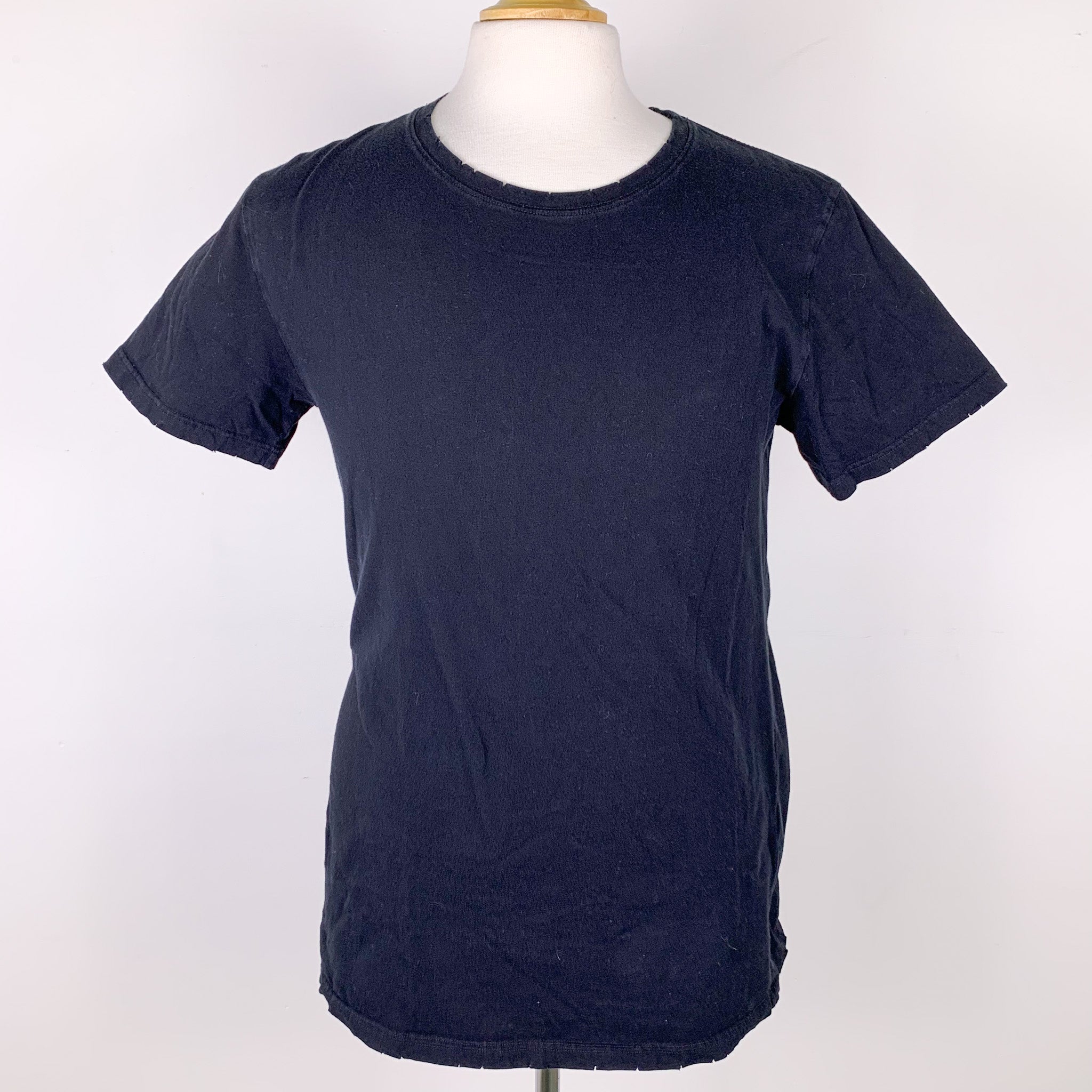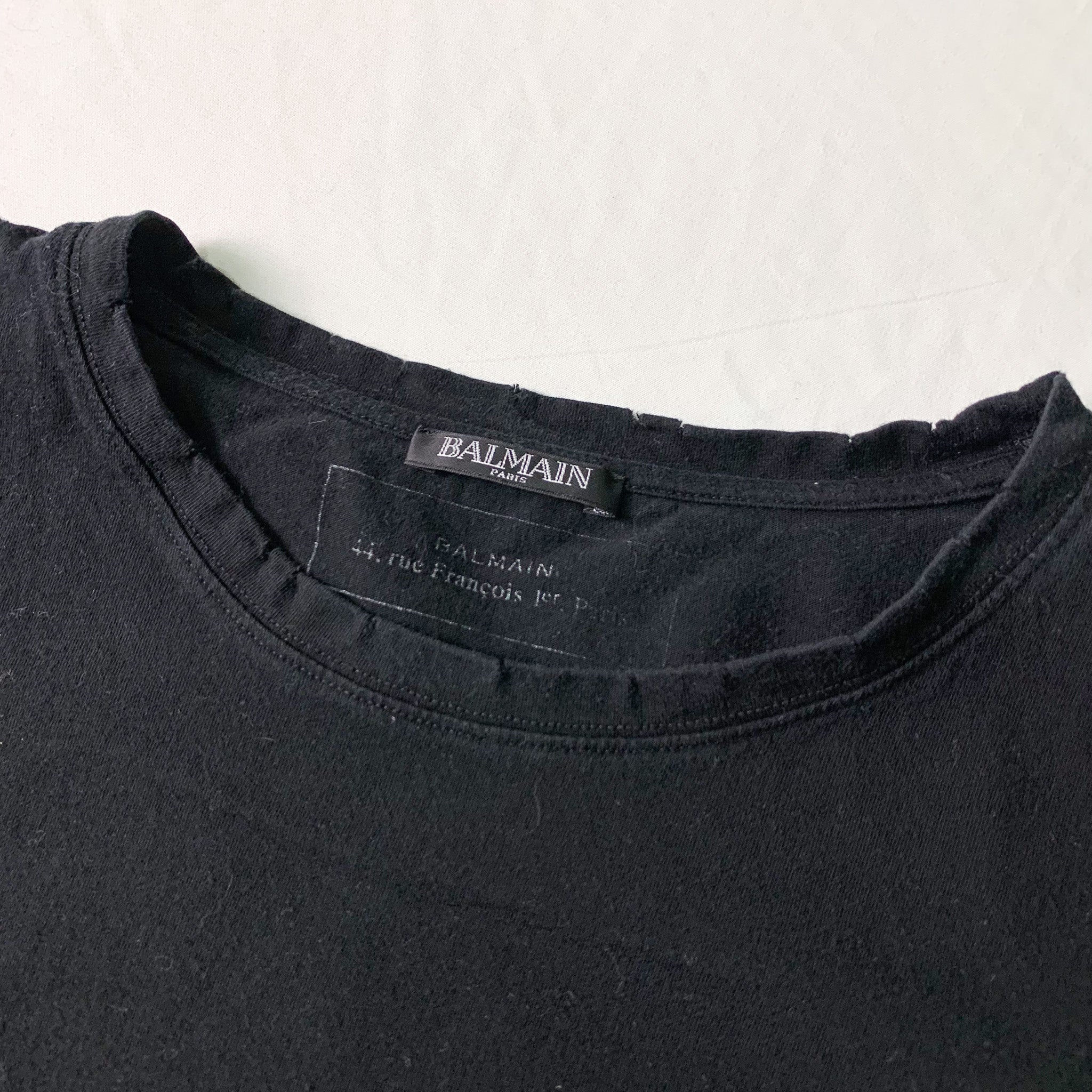 Balmain Distressed Collar/Hem Black Tee Shirt (X-Large)