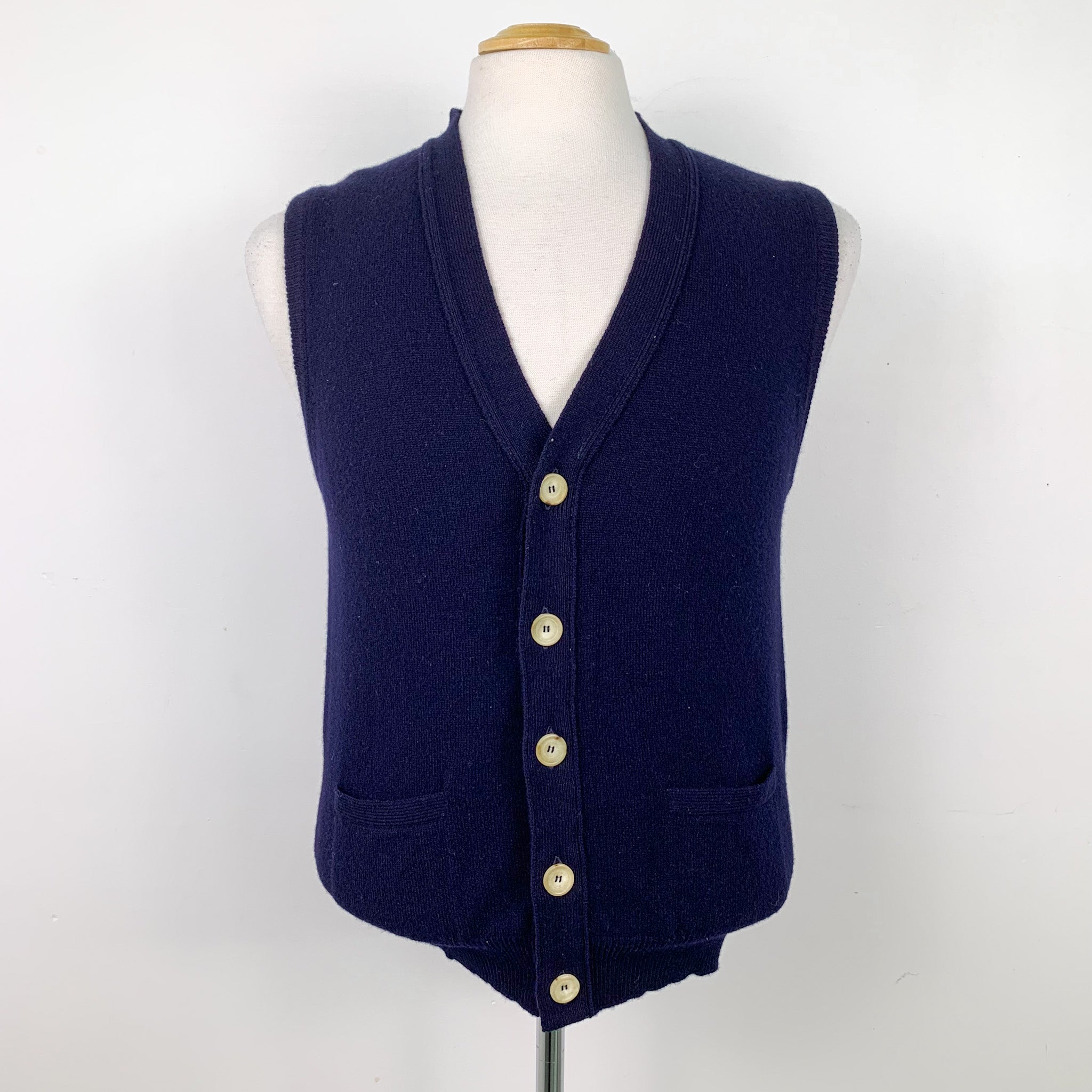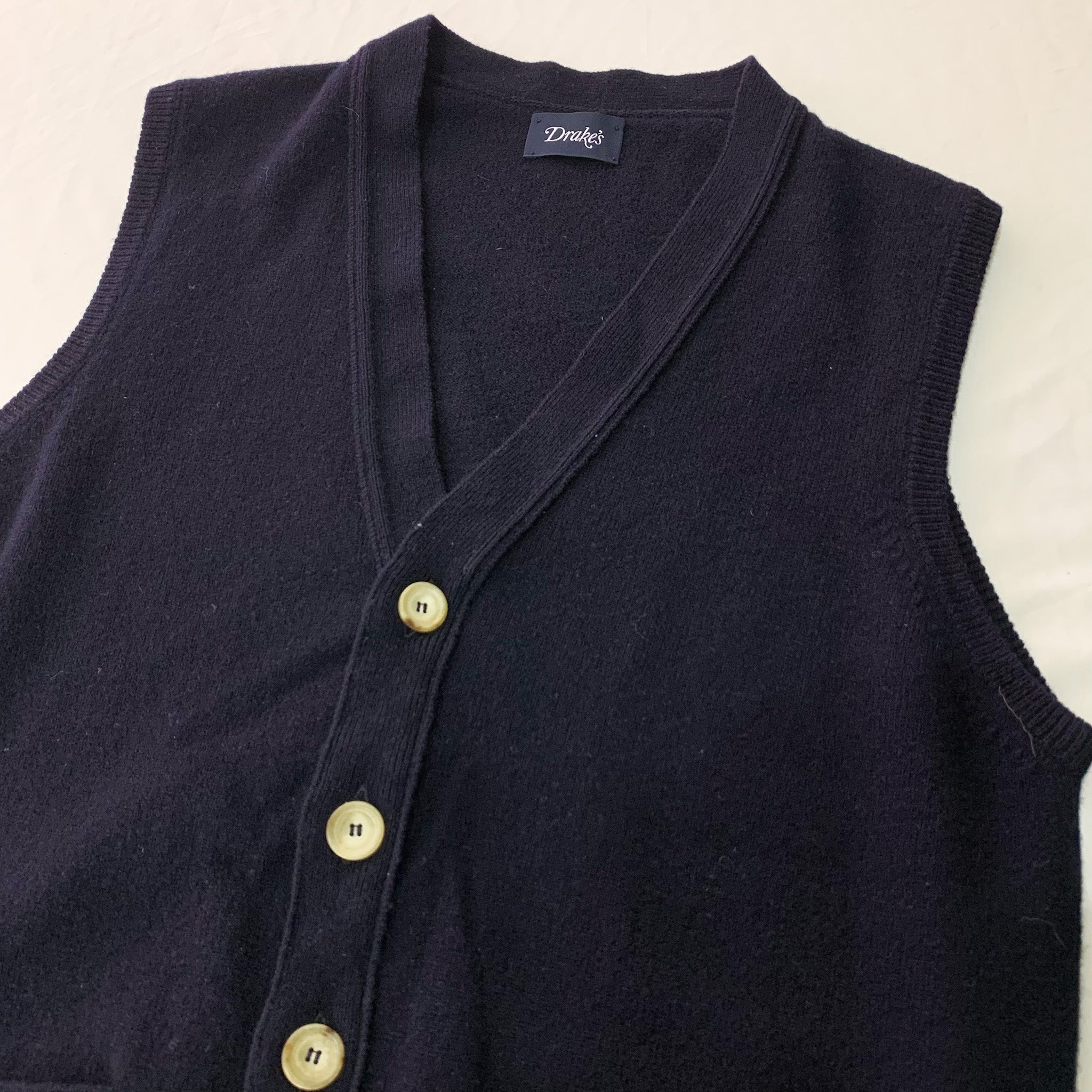 Drake's Lambswool Knit Button-Up Vest (Small)