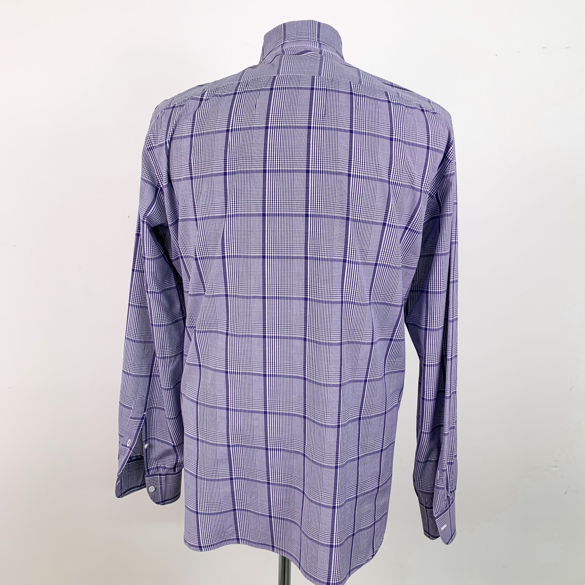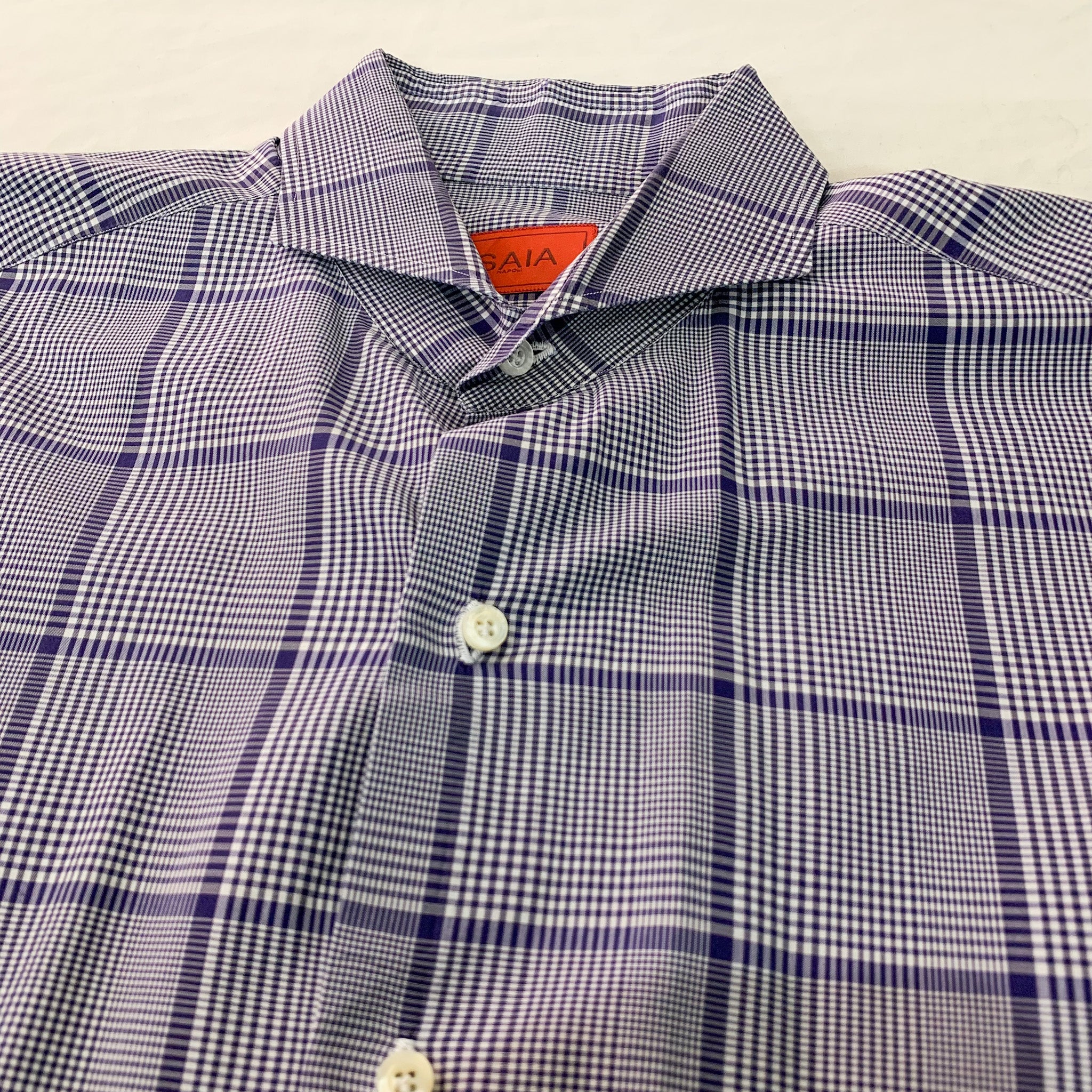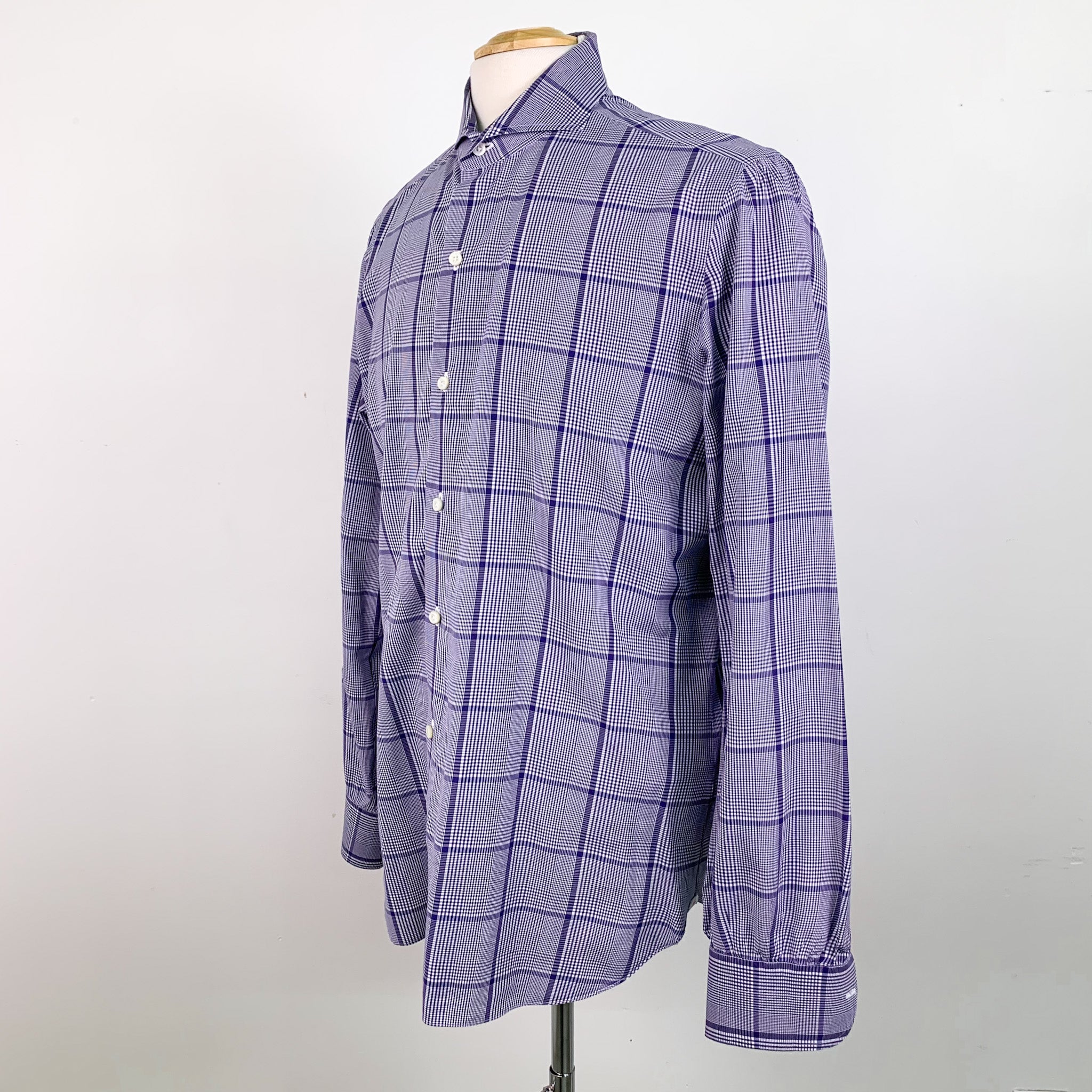Isaia Blue Grid Full Split Collar Button Up Shirt (16/41) 5