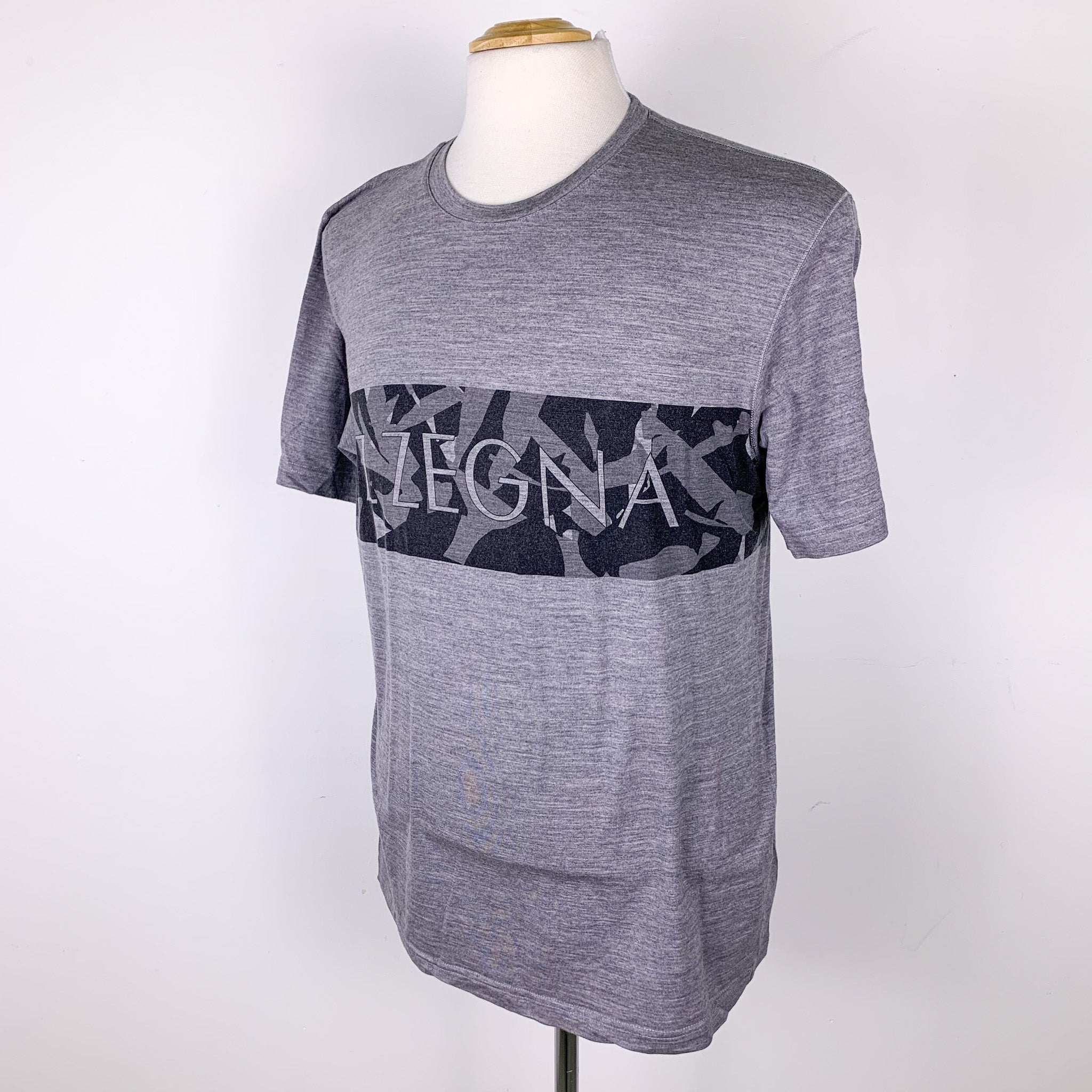 Z Zegna Grey Logo Spellout Tee Shirt (Large)