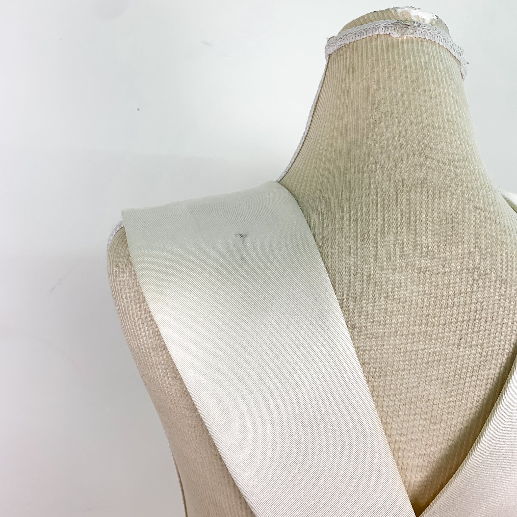 - Condition: Flawed with tags. Stains throughout, some buttons removed. With dry cleaning & new buttons the dress will be perfect. Return tag (pictured in slide 3) has been removed.
