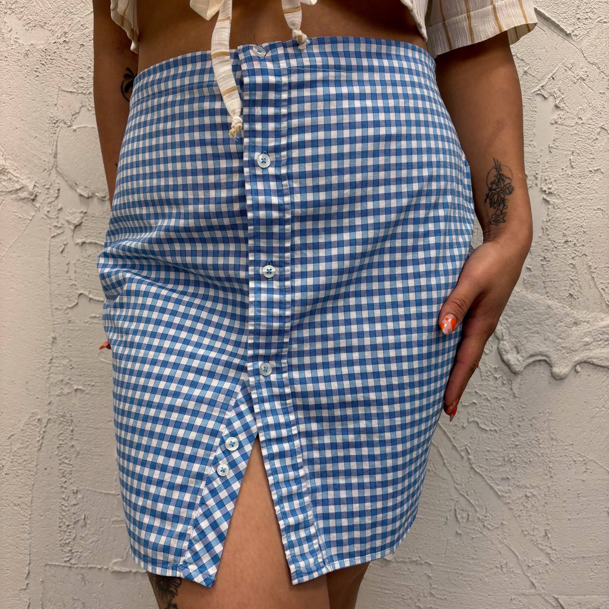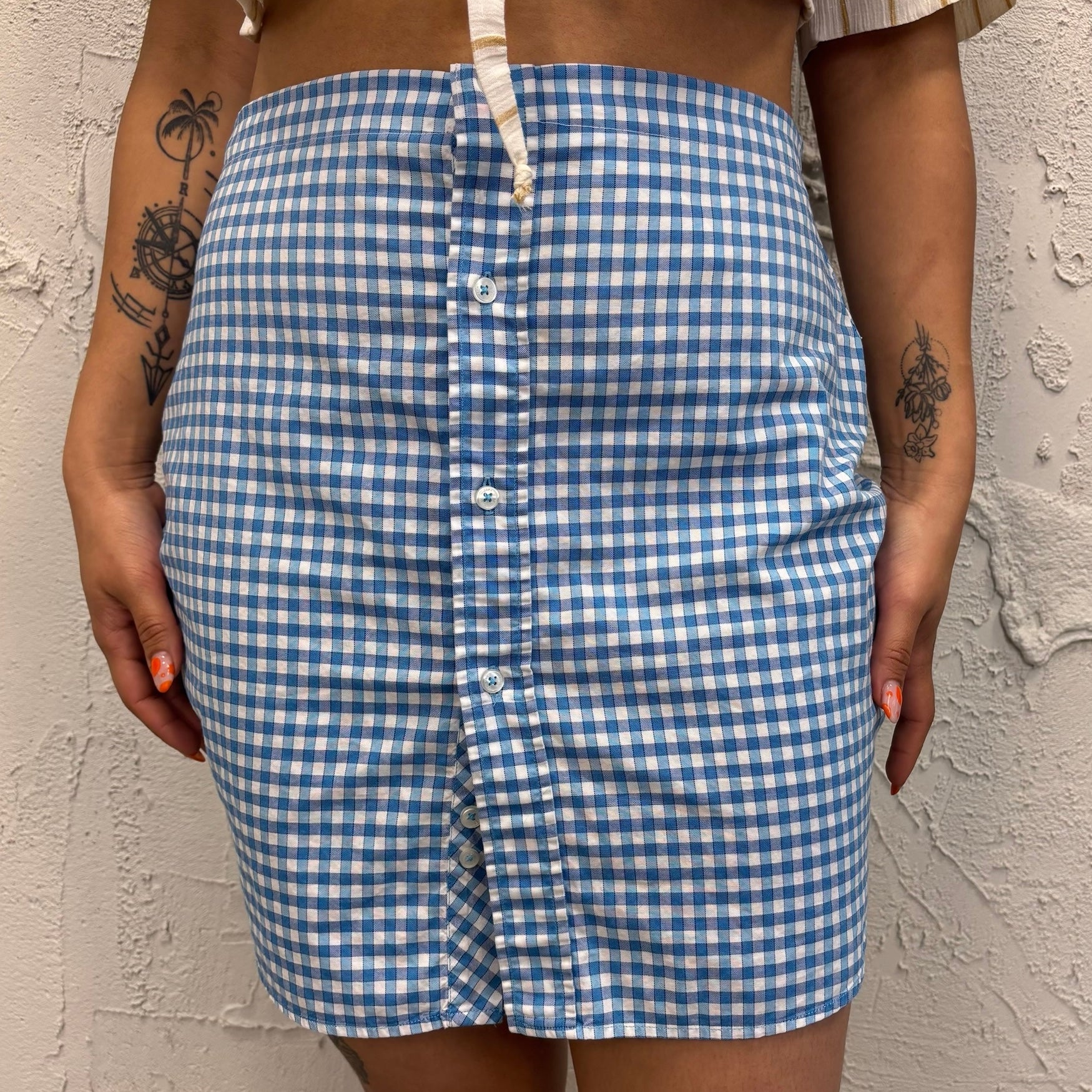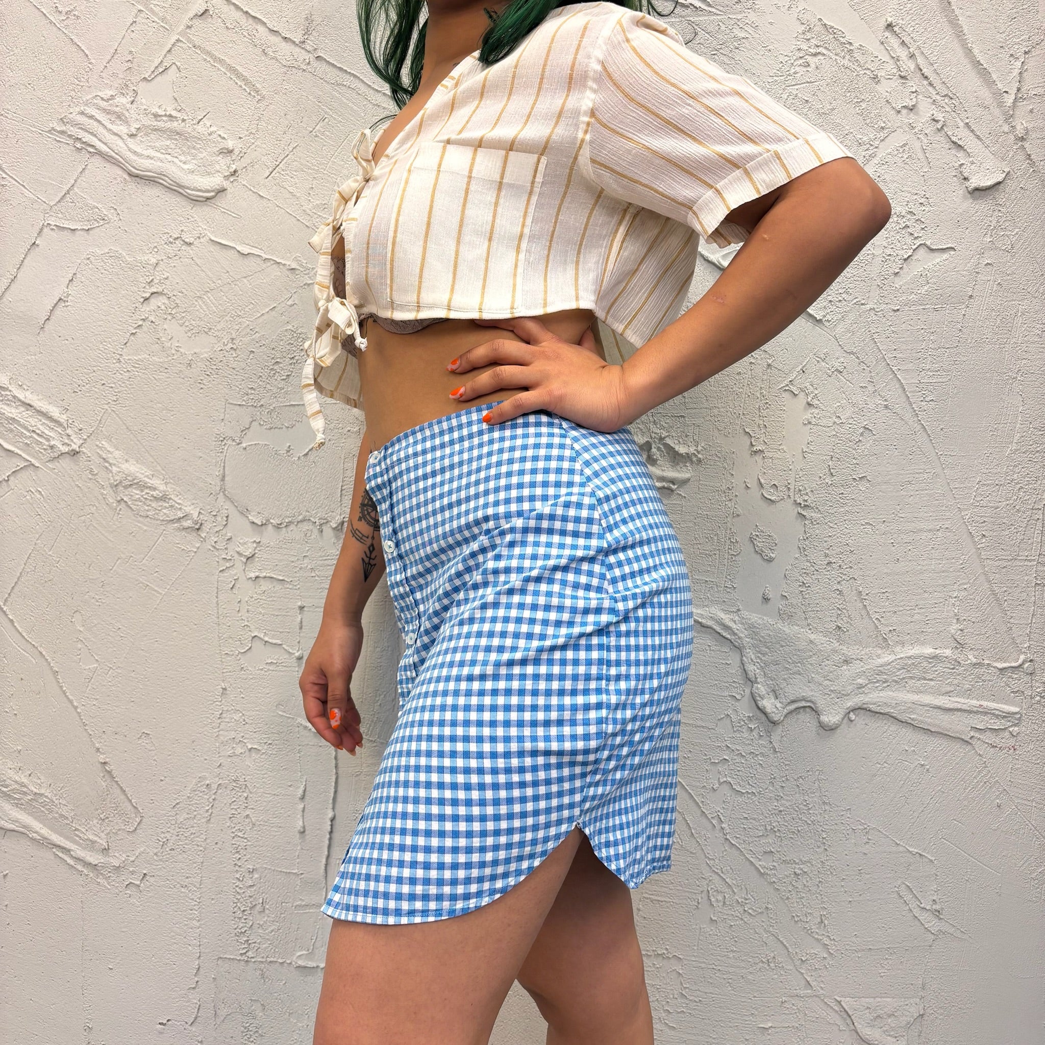 Upcyced Blue, Aqua, and White Plaid Mini Skirt