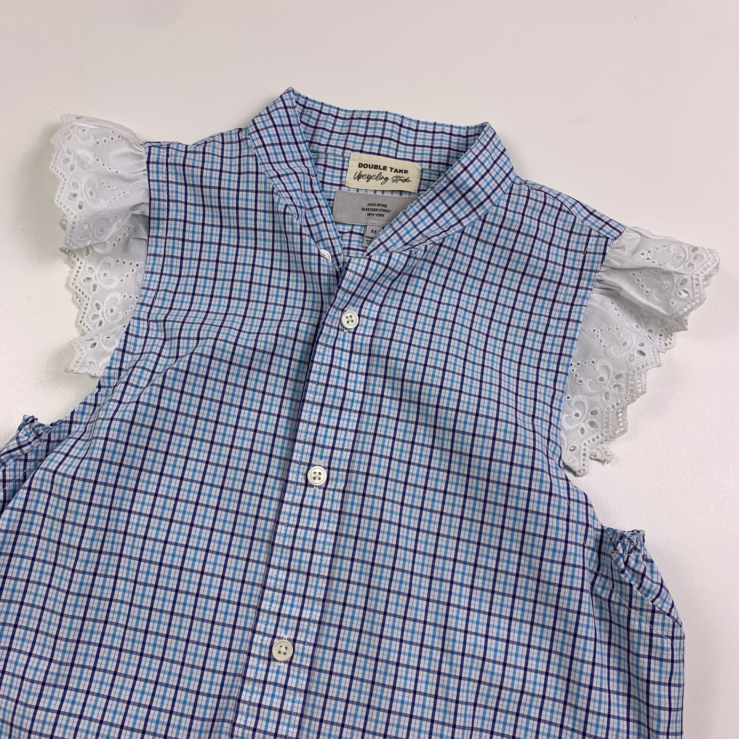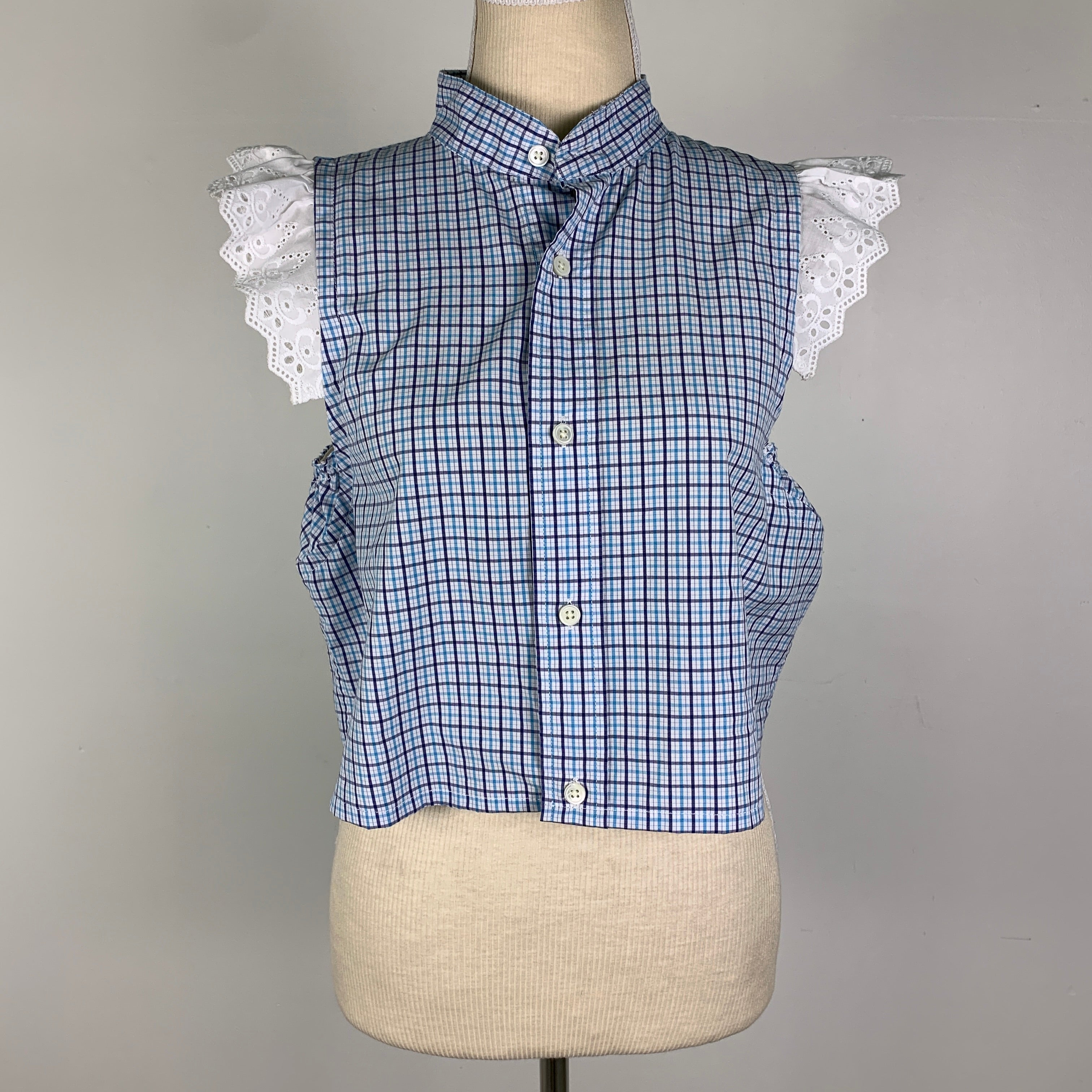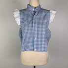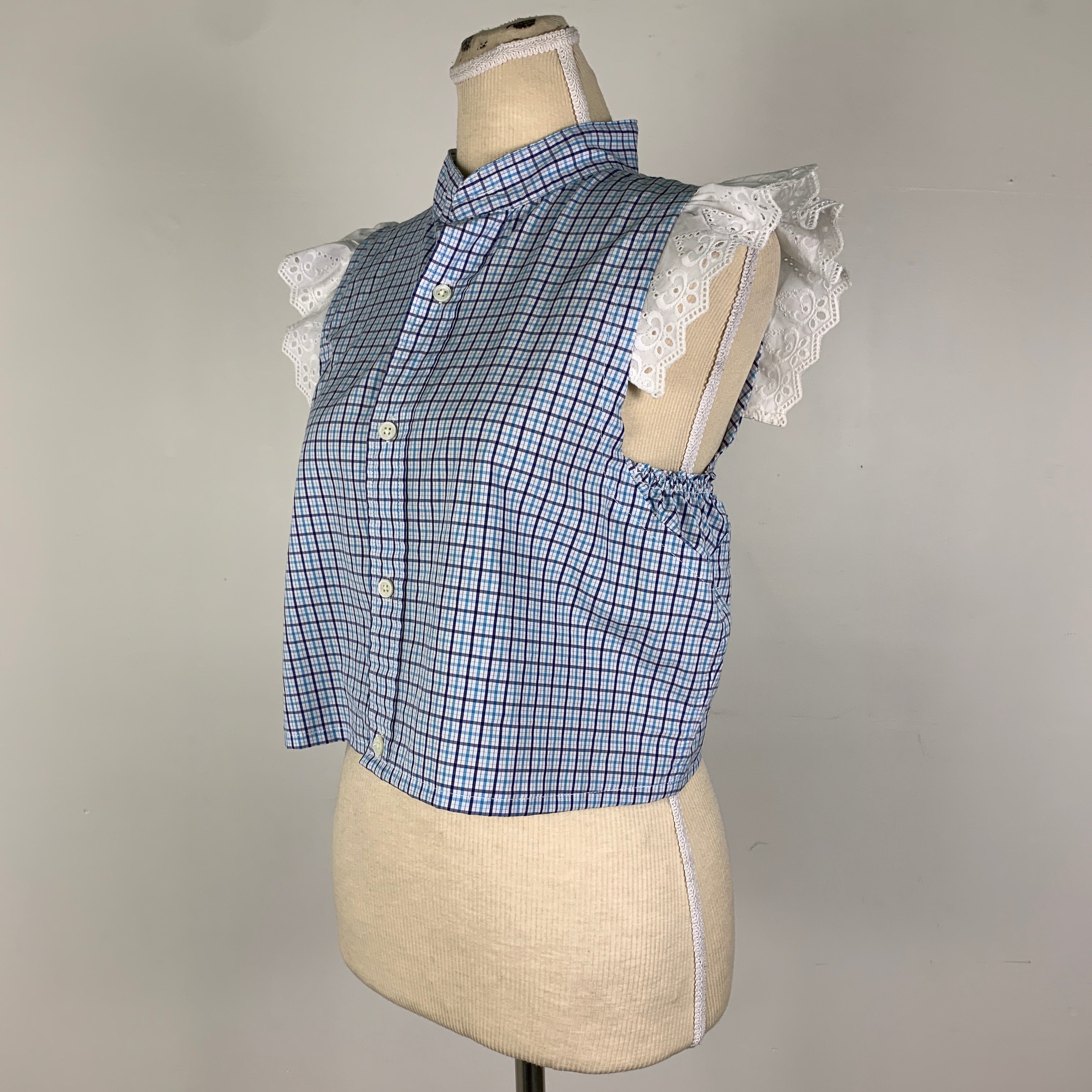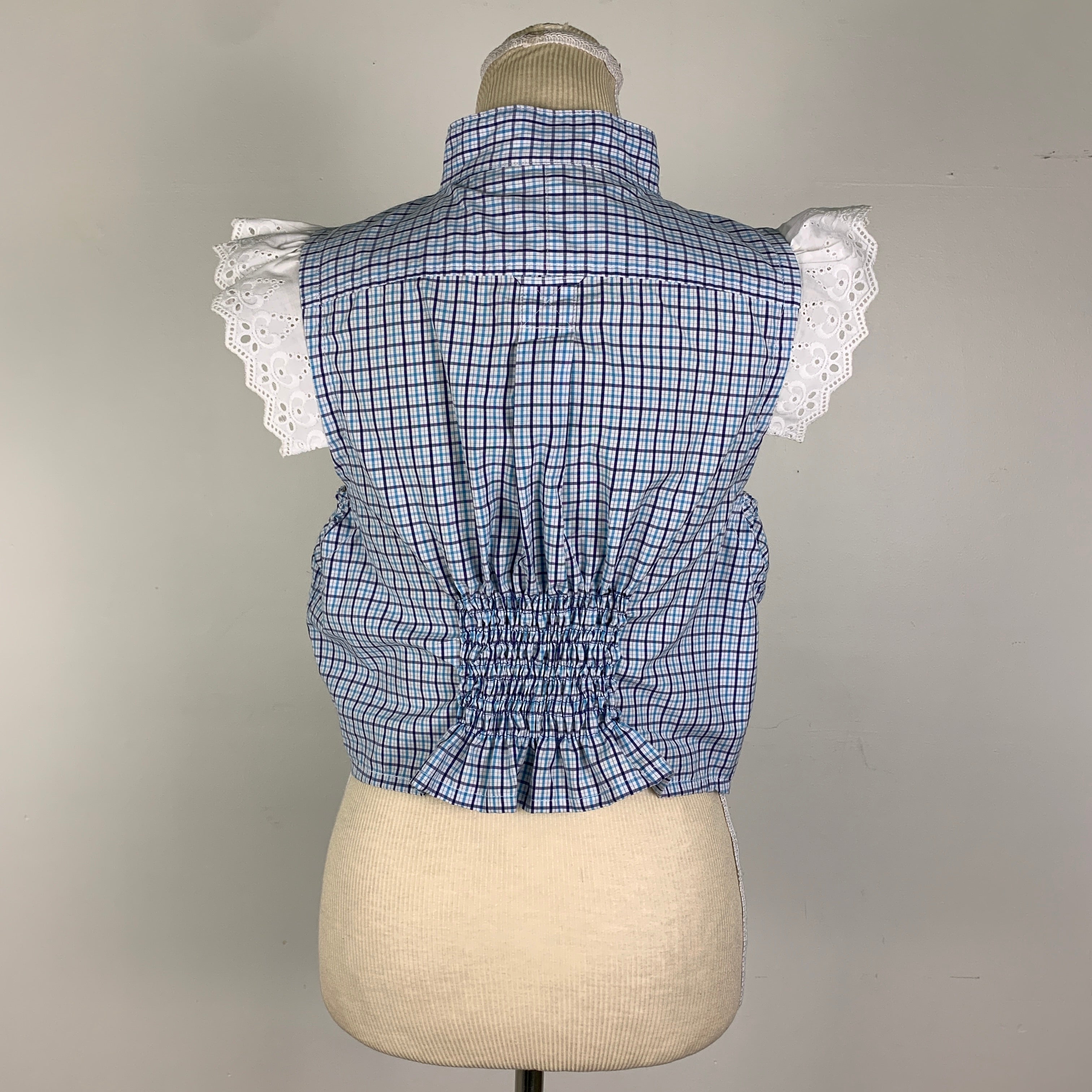 Upcycled Blue and White Tattersall Top with Lace Frills