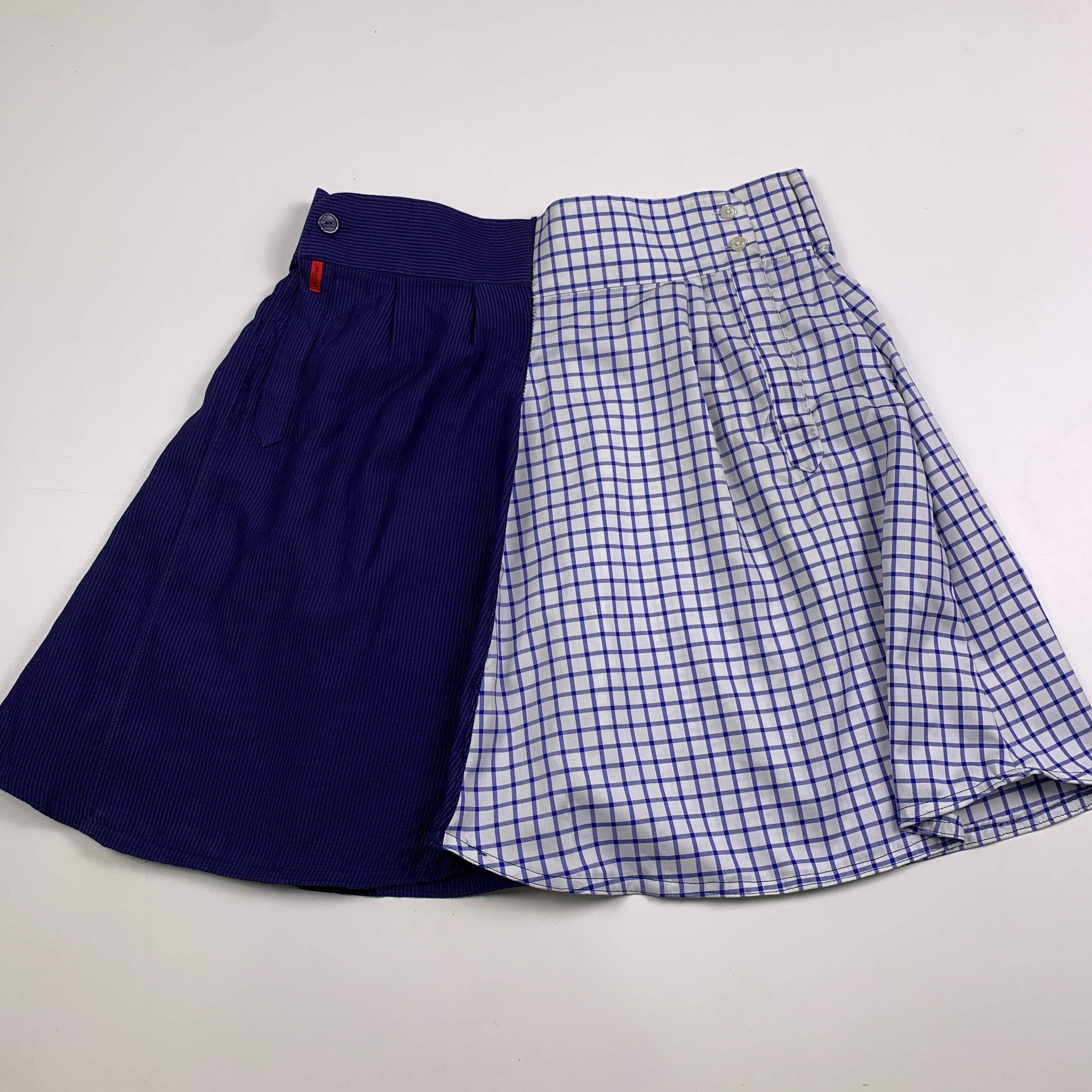 Upcycled Blue / Blue Windowpane Shirt Sleeve Skirt