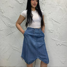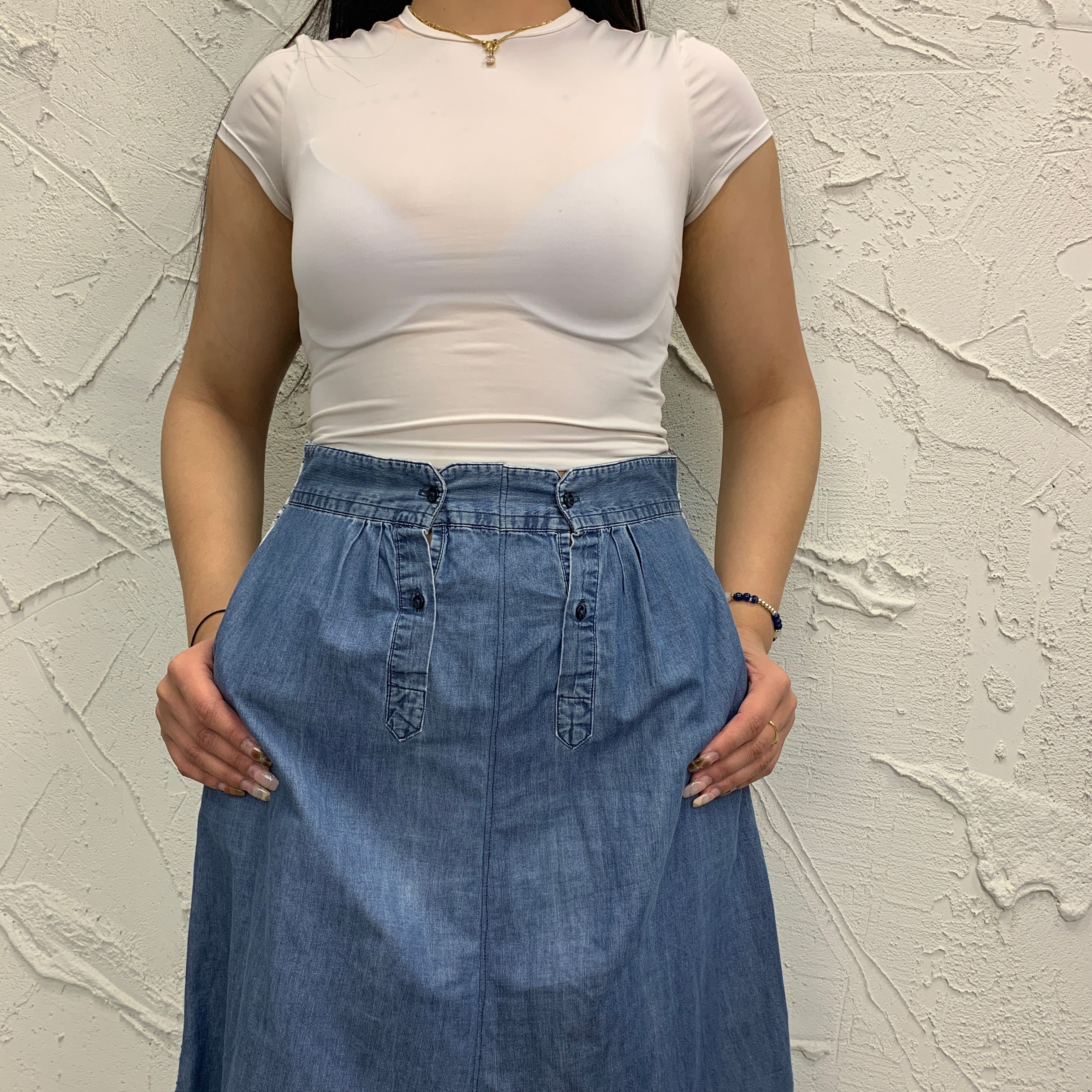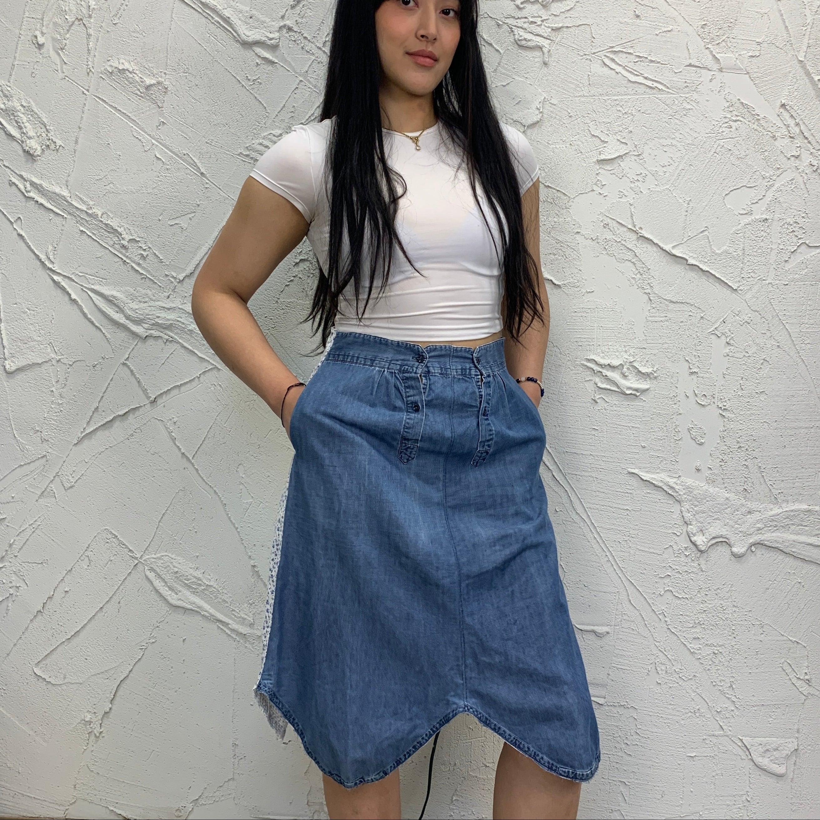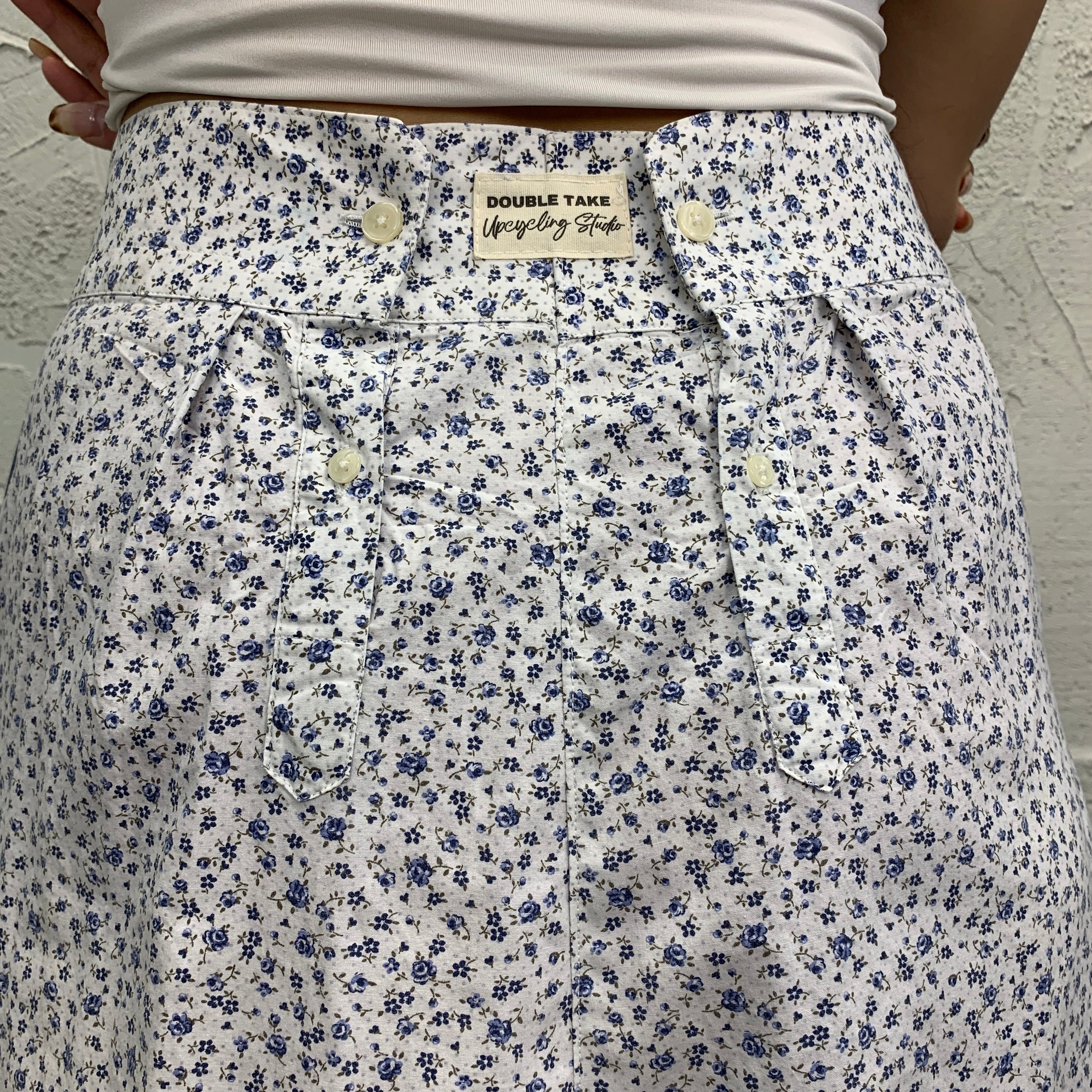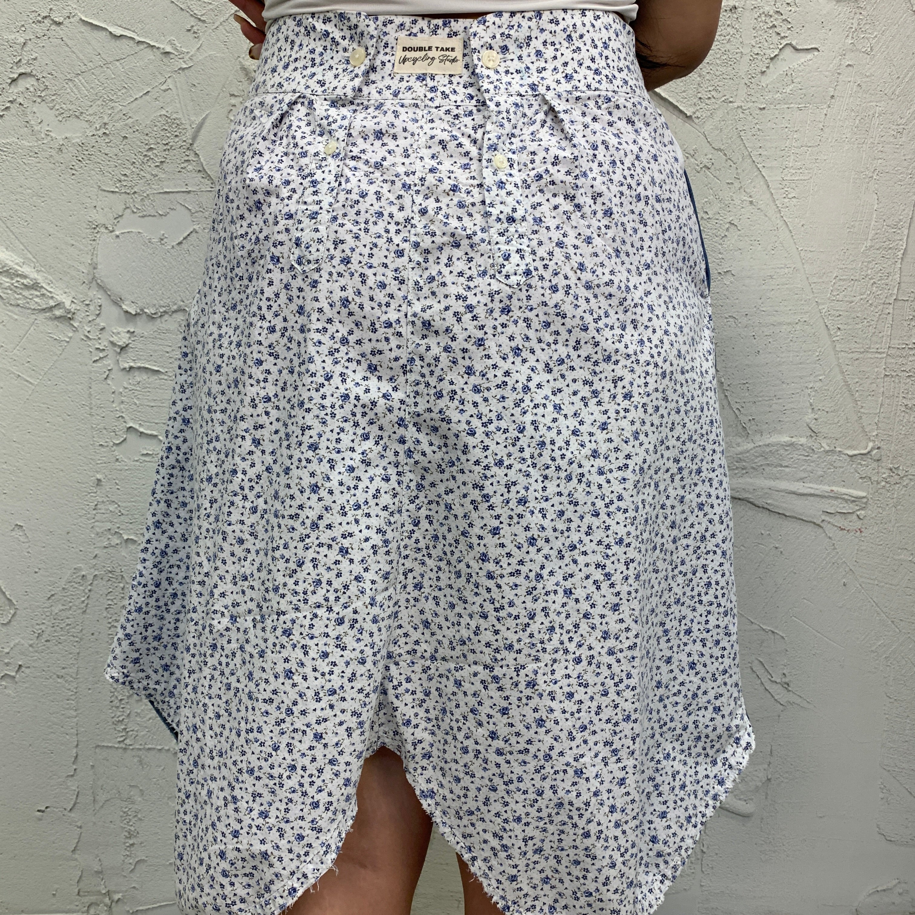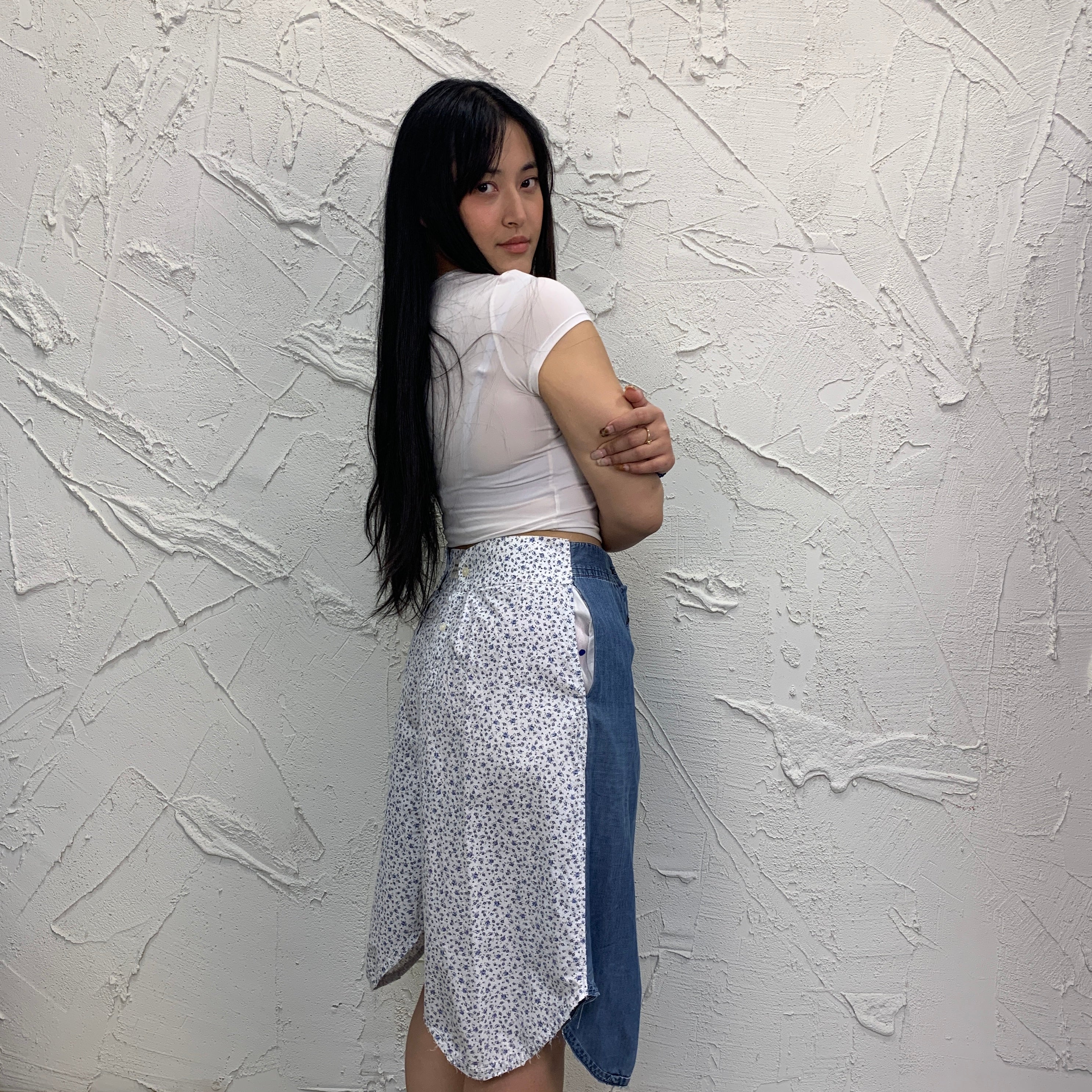 Upcycled Blue Flower / Denim Sleeve Skirt