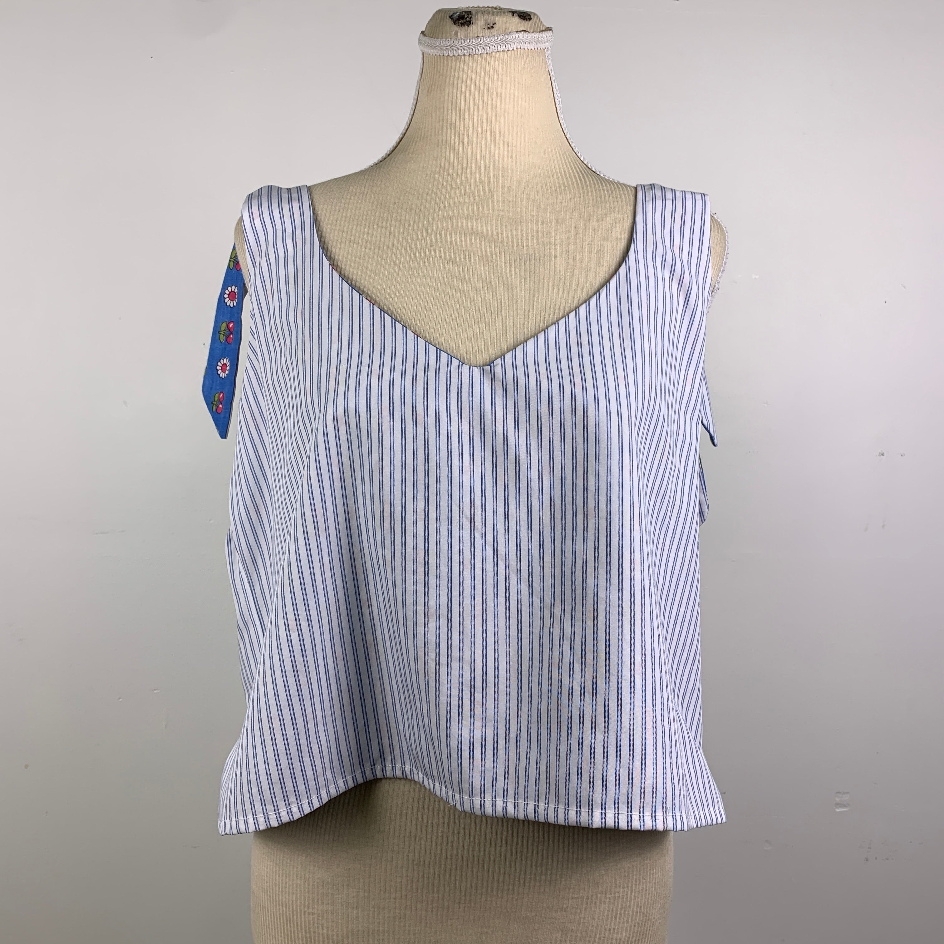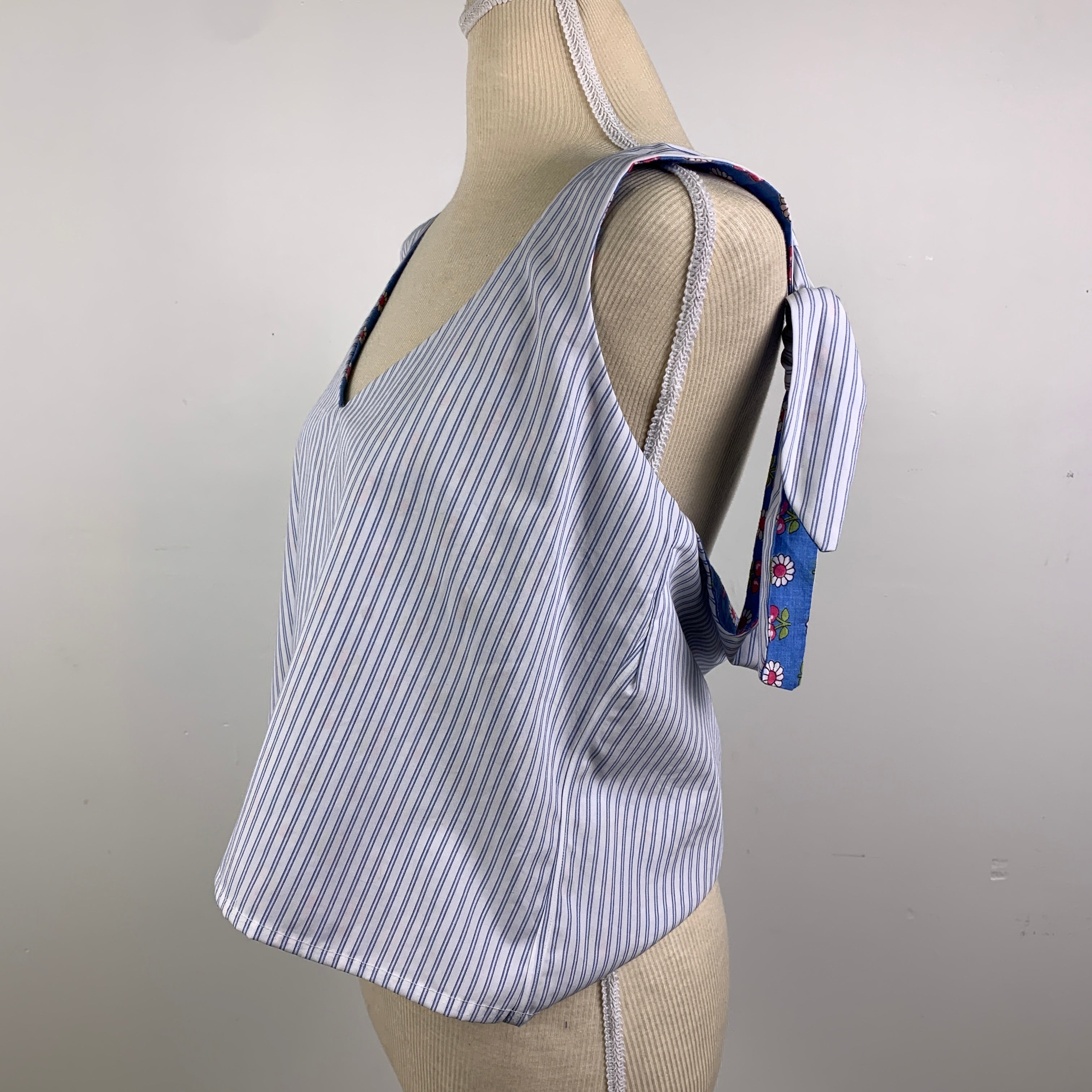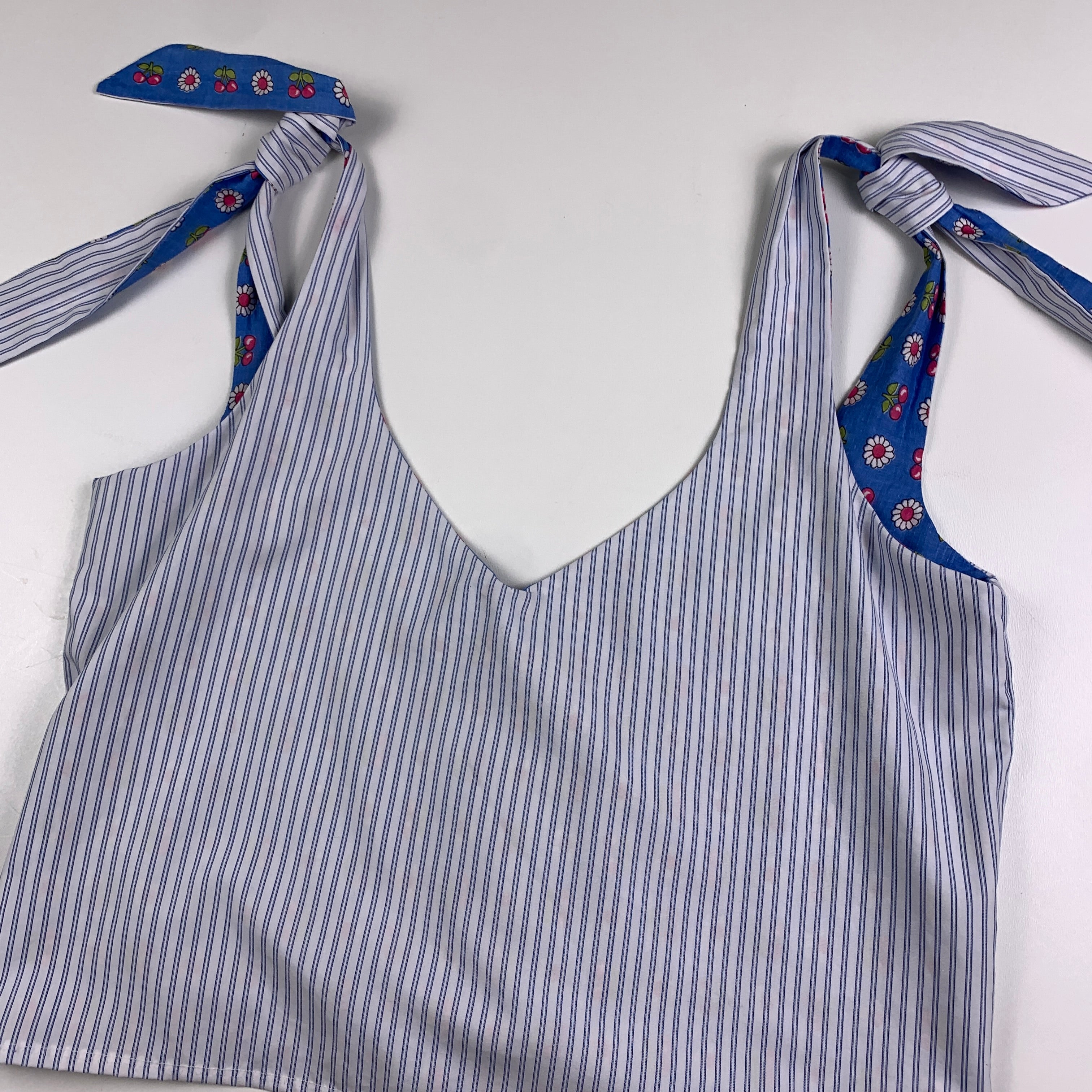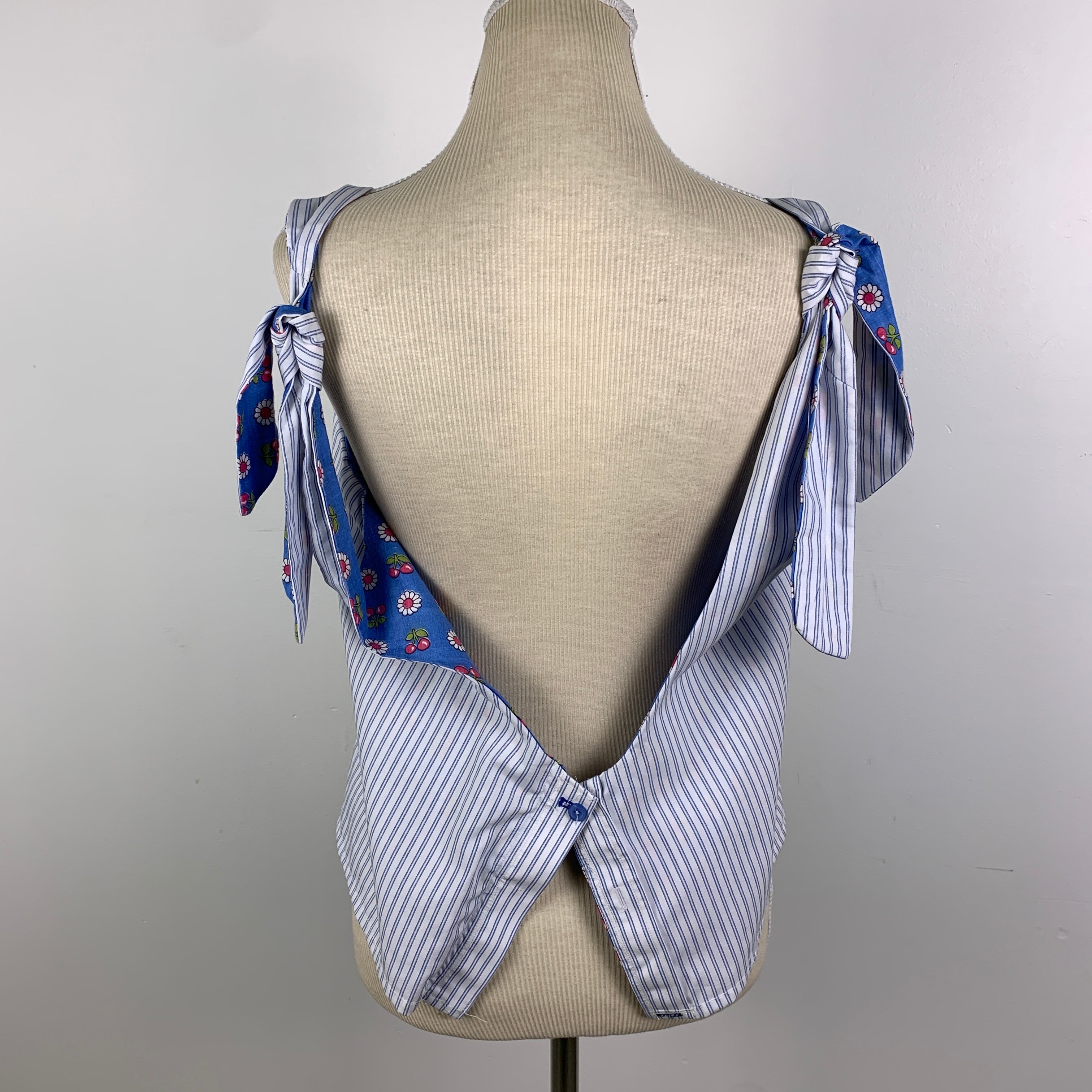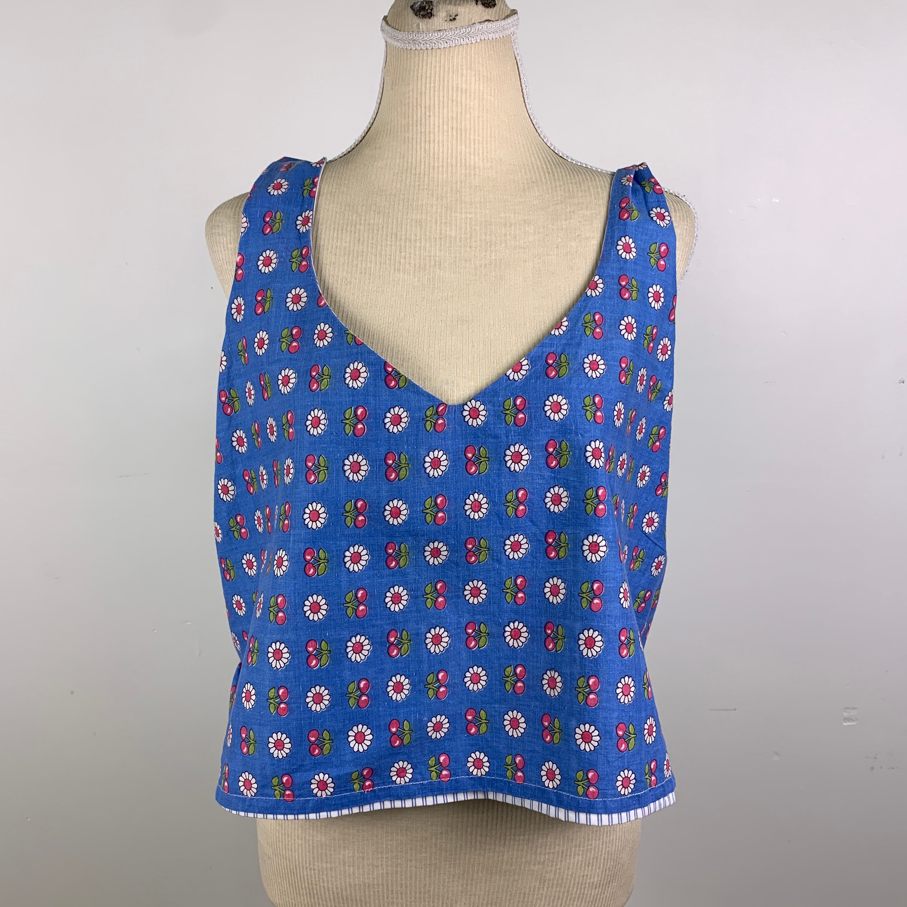 Upcycled Blue & White Plaid / Cherry Print Reversible Tank