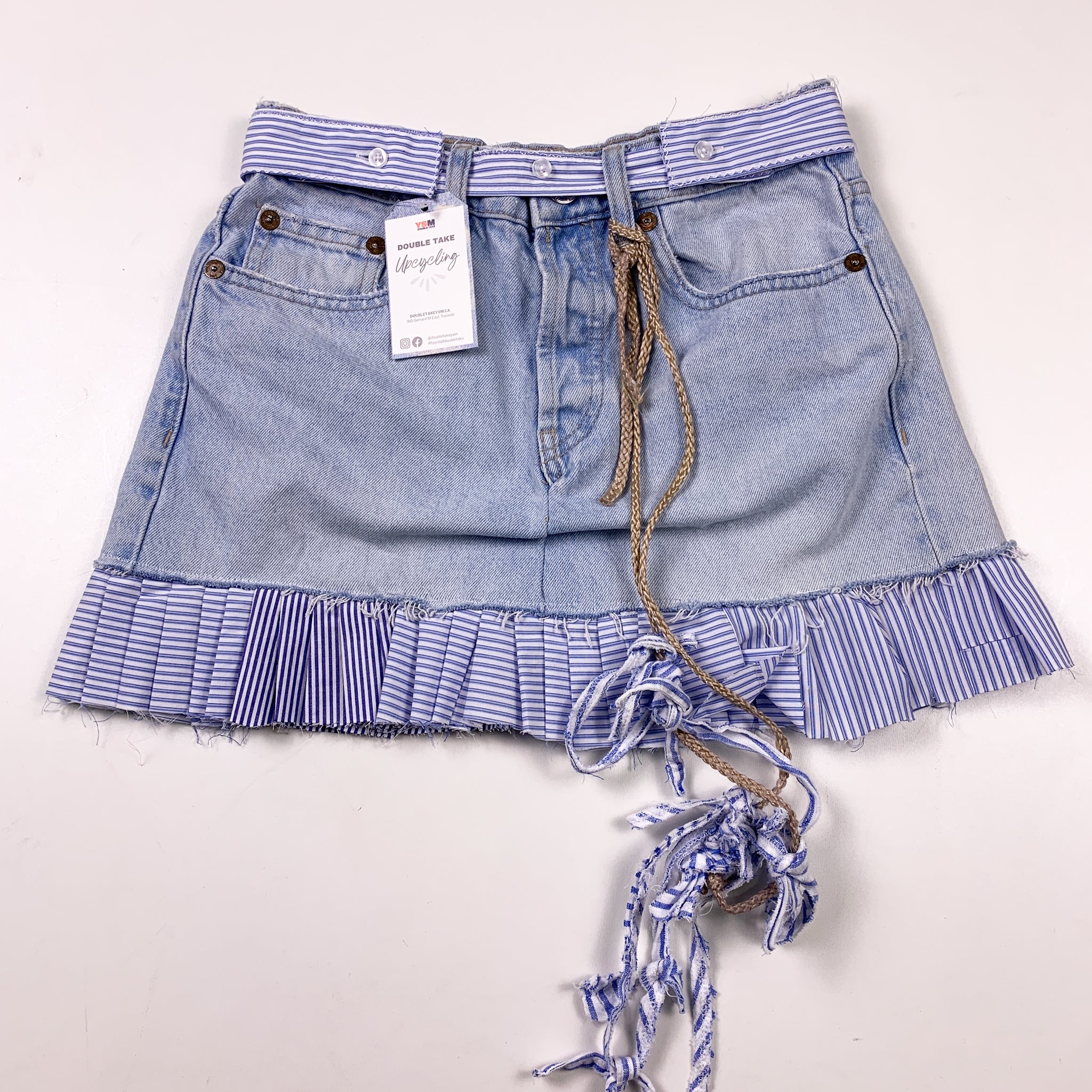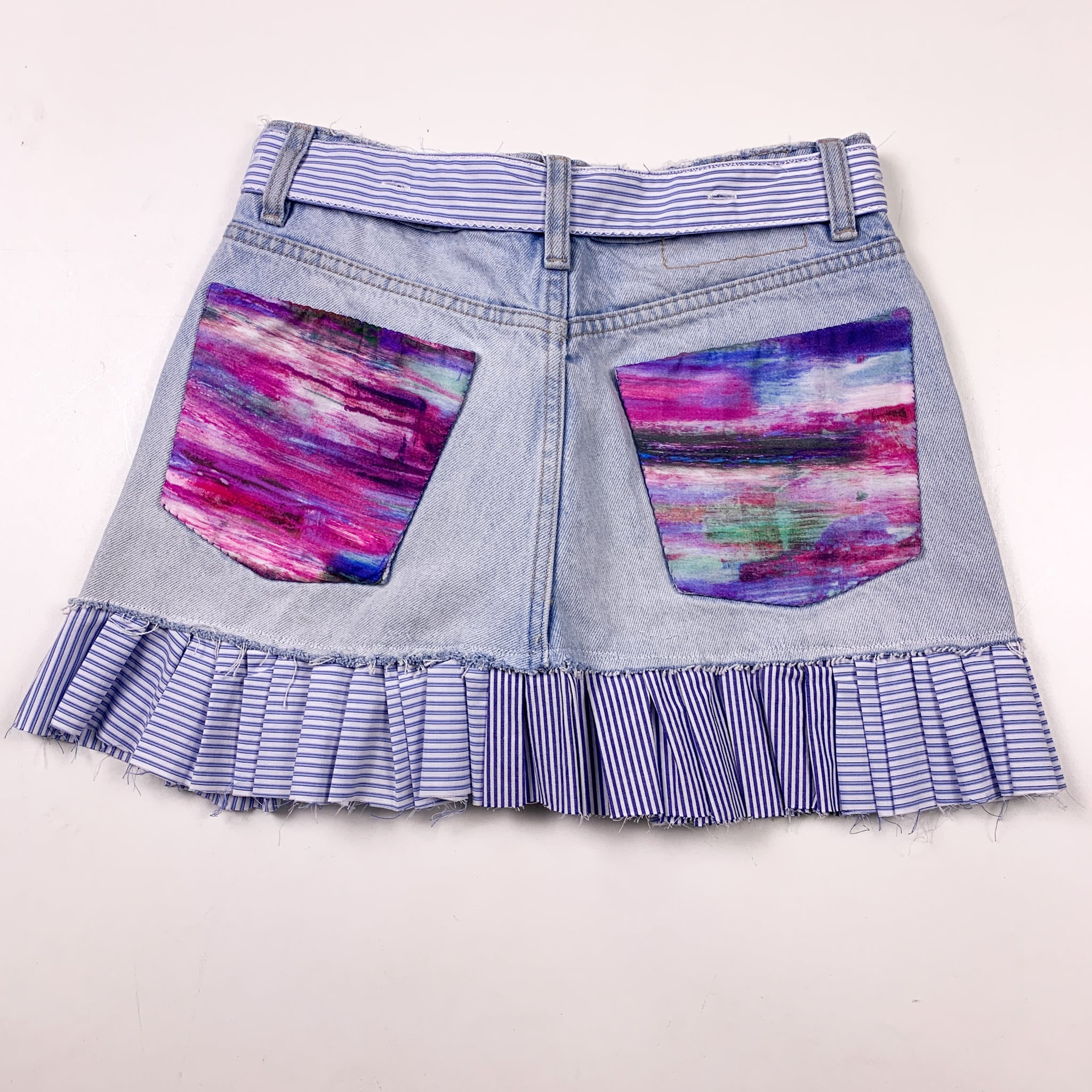 Upcycled Denim Mini Skirt With Pleated Cotton Trim, Cotton Belt & Rope Belt (26)