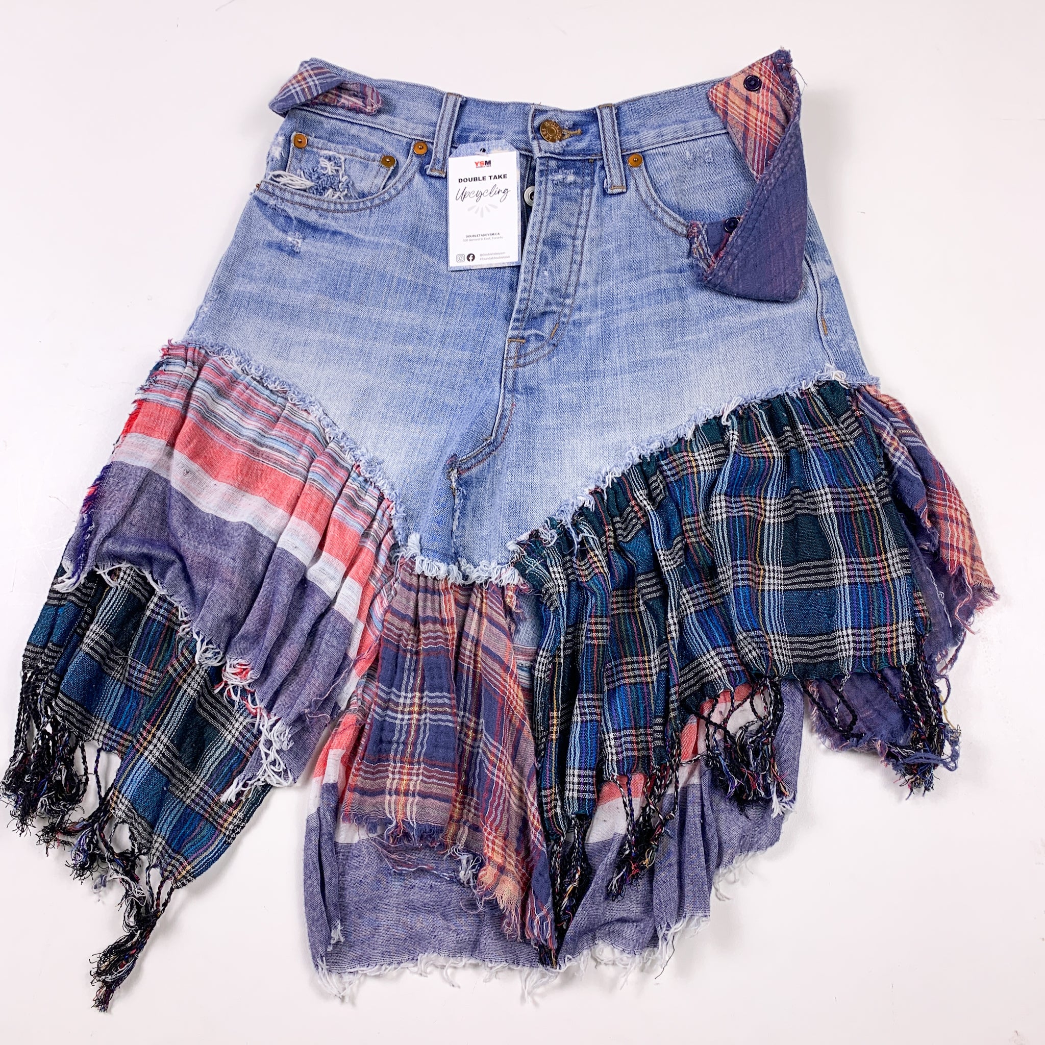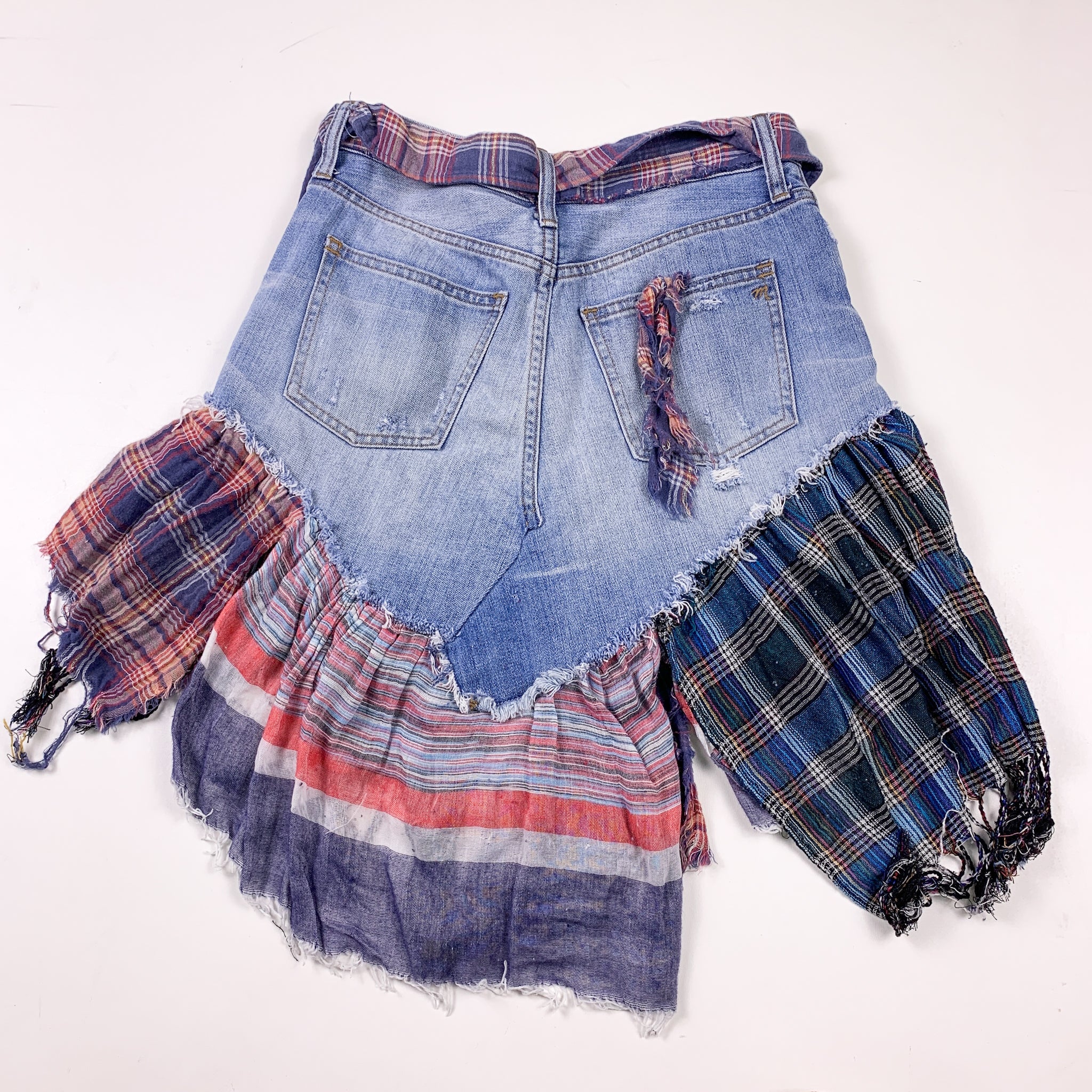 Upcycled Denim Mini Skirt With Scarf Drape Detail (28)