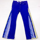 Upcycled Flared Blue Pants With Patchwork Striped Panels