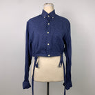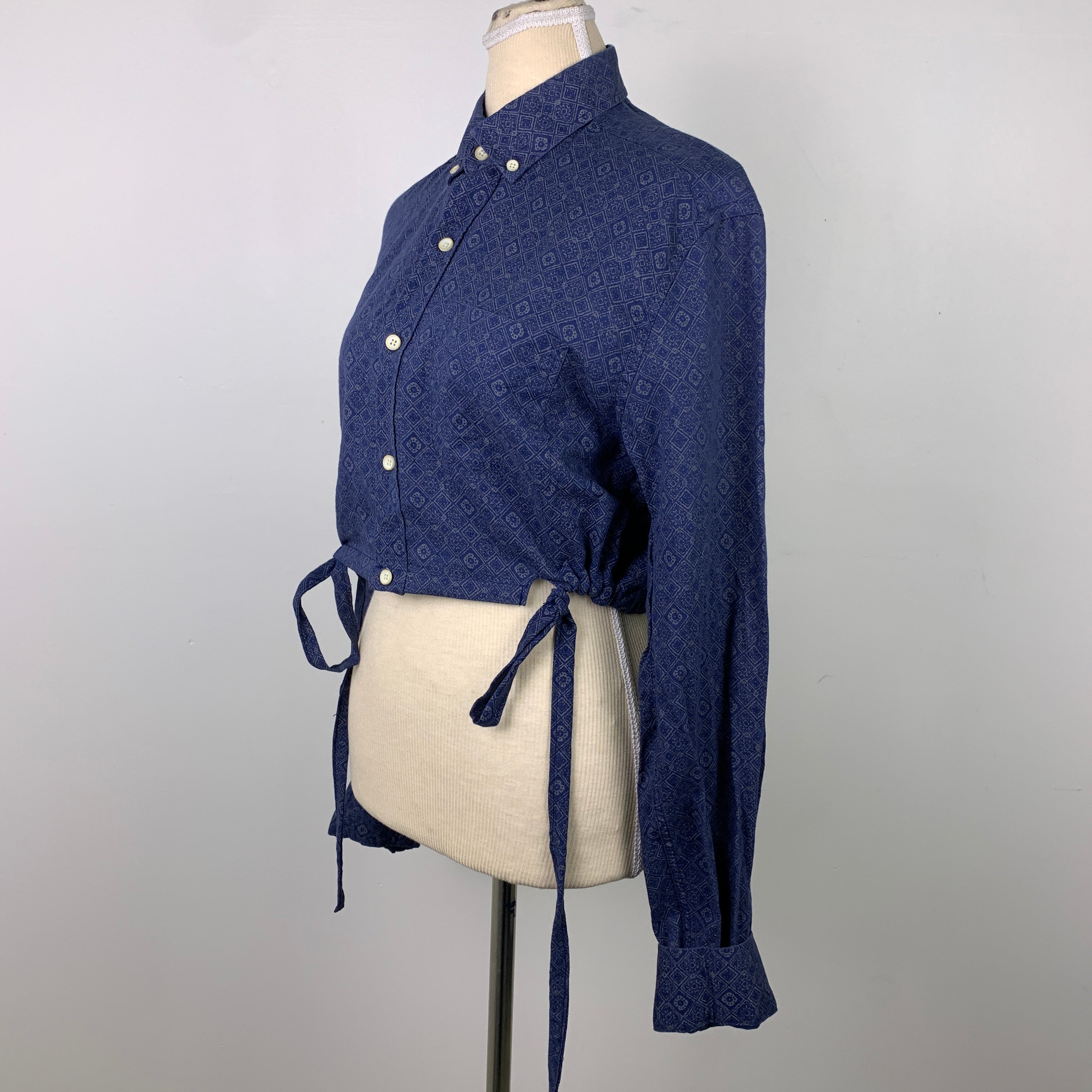 - A classic button-down, cropped with a drawstring waist and side ties for that perfect summer fit.