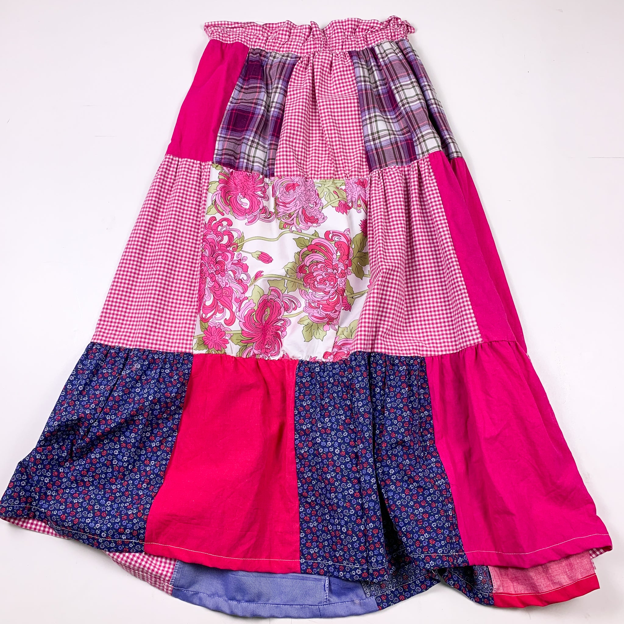 Upcycled Pink Cotton Patchwork Tiered Maxi Skirt (28)
