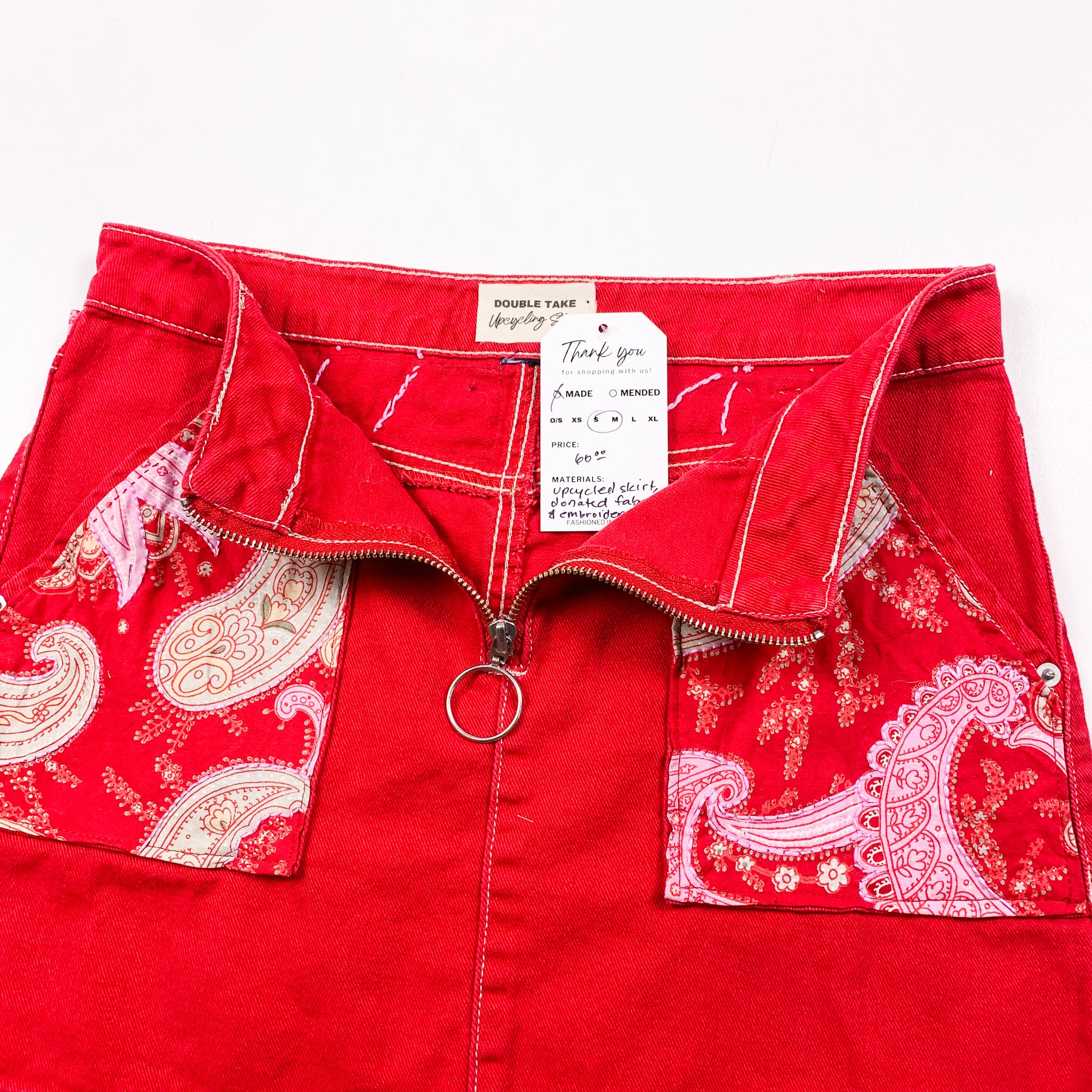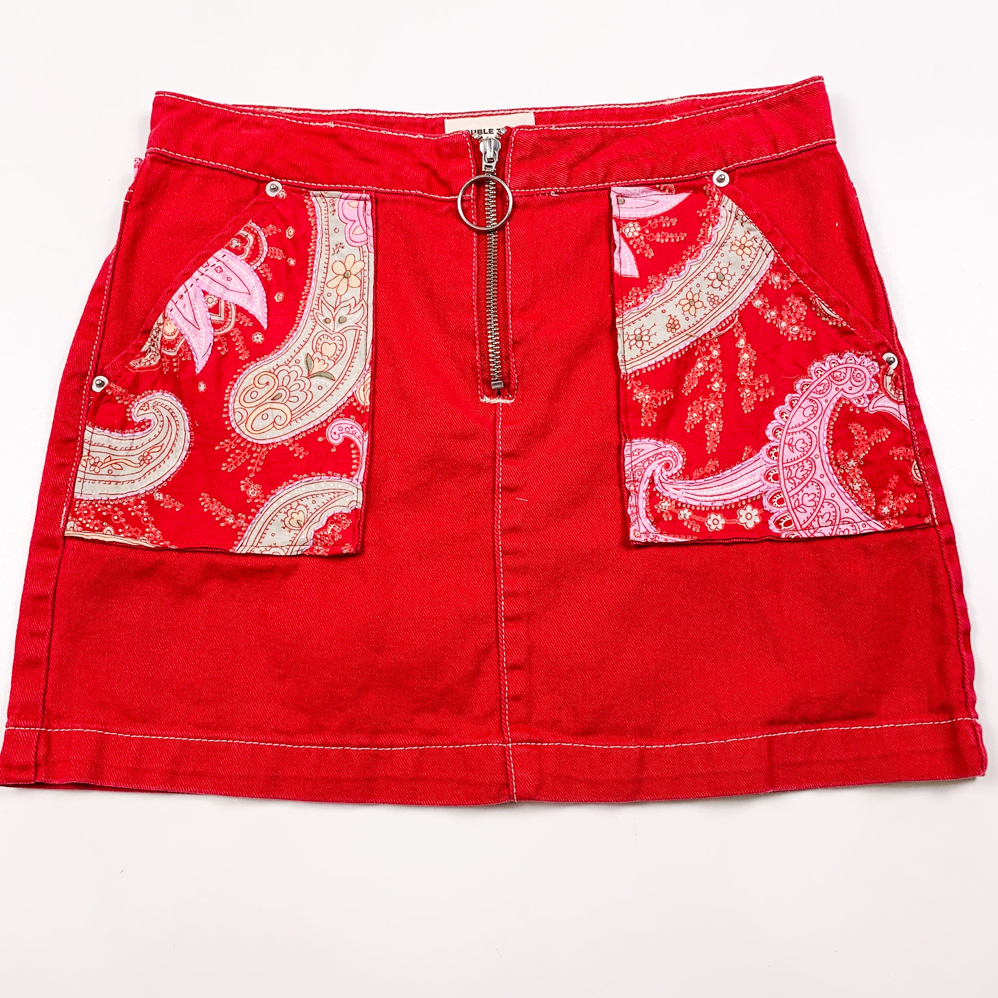 Upcycled Red Mini Skirt with Pocket Patches