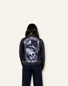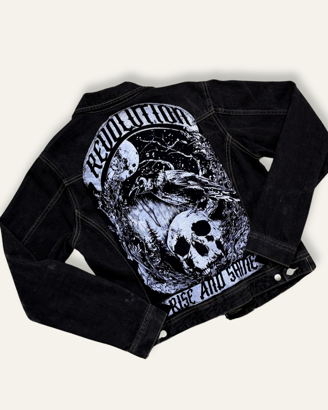 Upcycled Black Denim Jacket with Graphic Cutout On Back