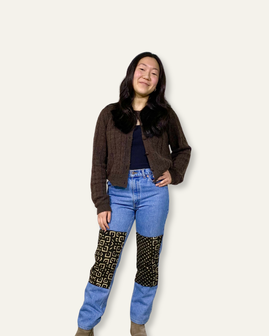 Upcycled Levi's Ribcage Straight Ankle Jeans With Handsewn Patchwork
