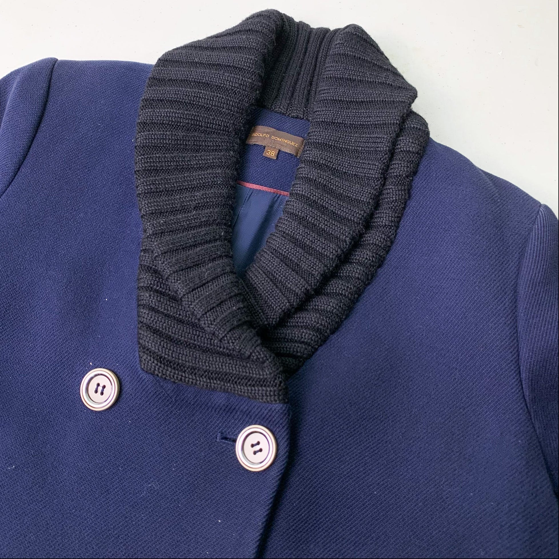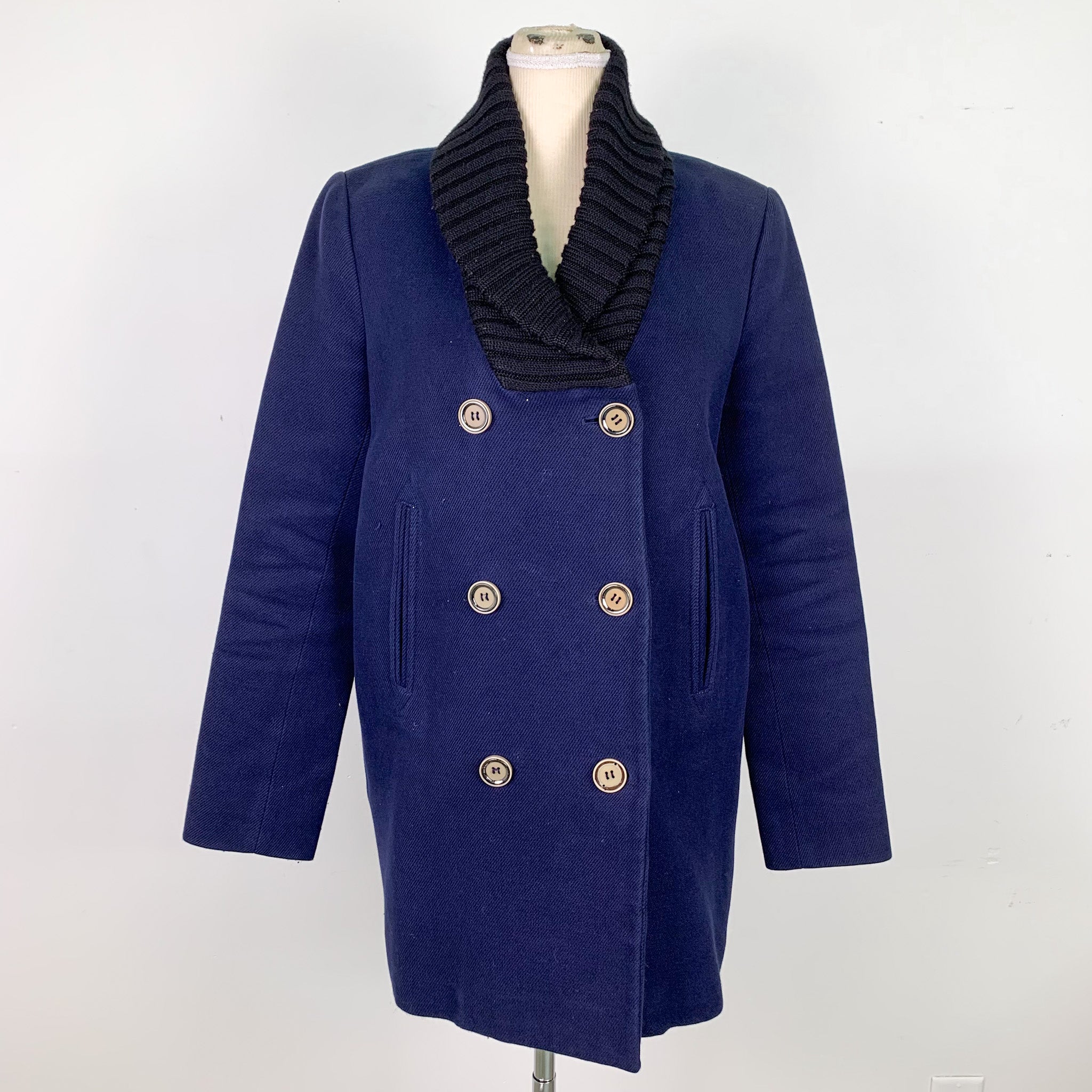 Adolfo Dominguez Peacoat With Rib-Knit Collar (Small)
