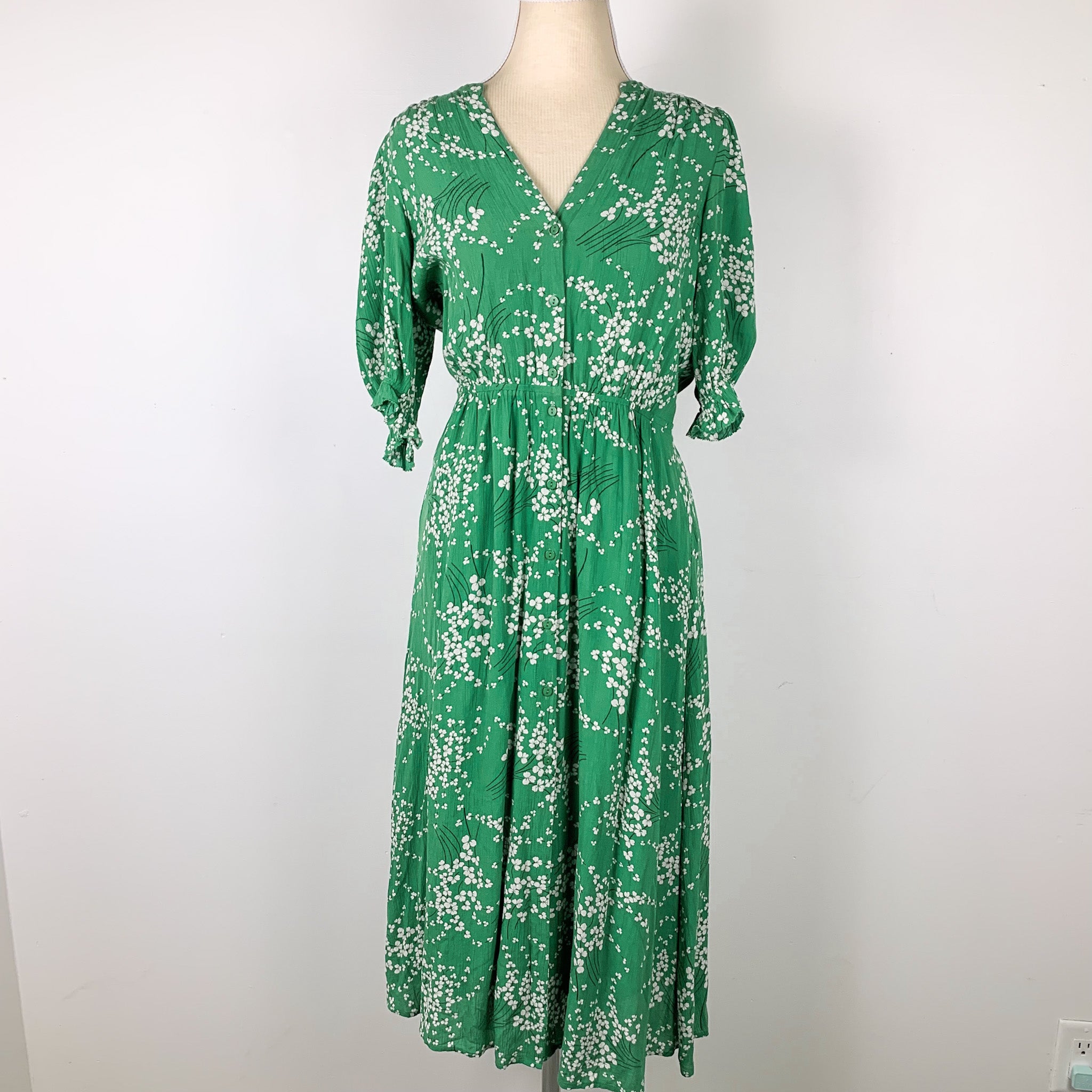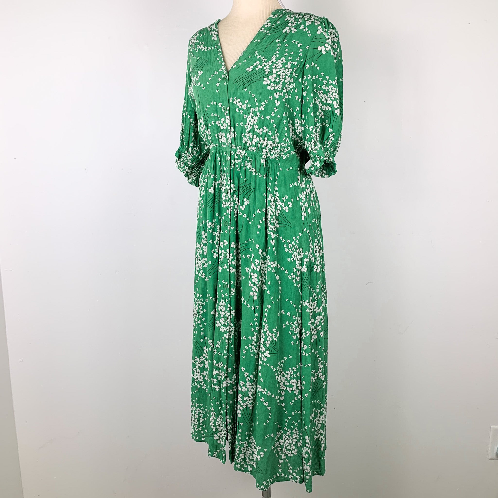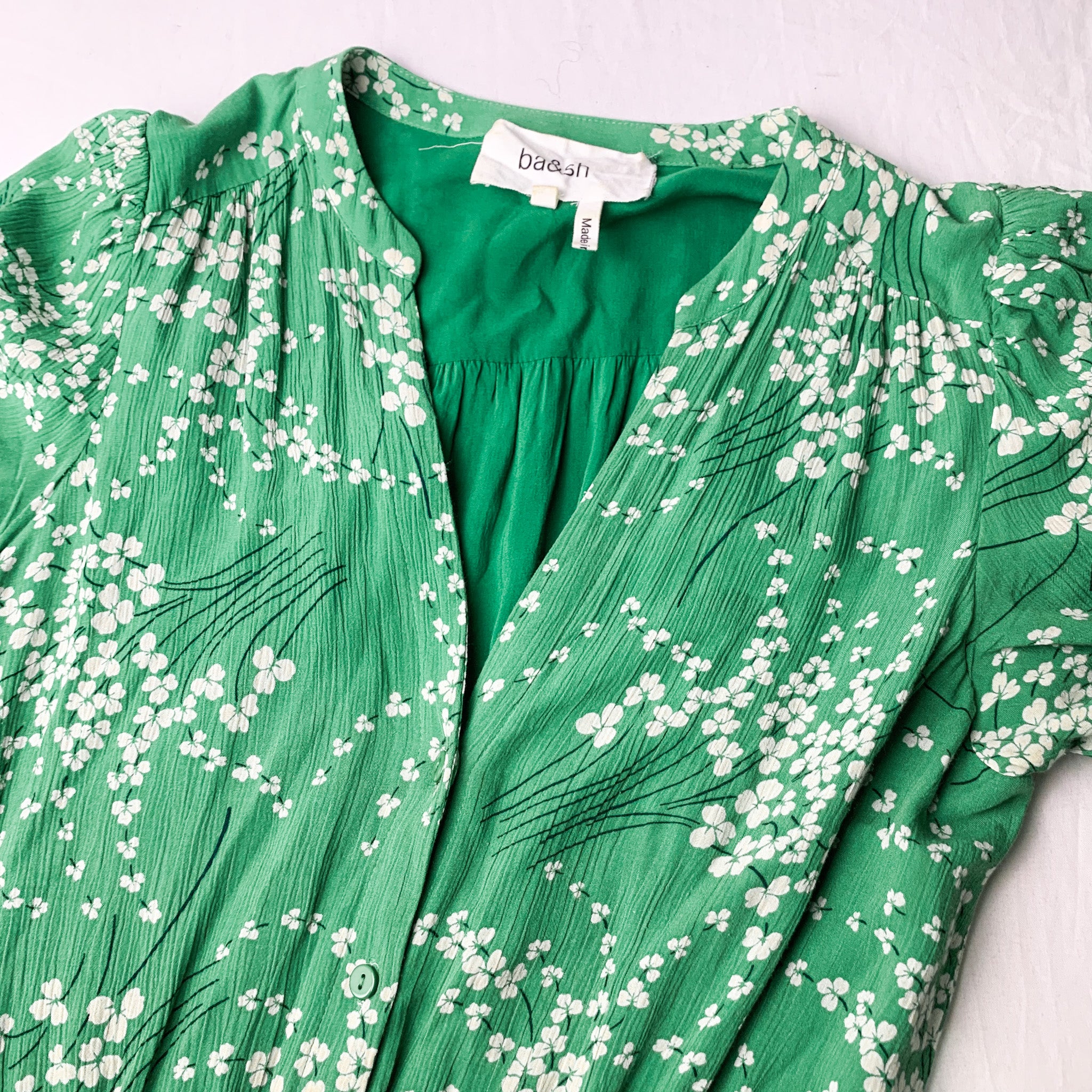 Ba&sh Obra Green Floral Print Dress (X-Small)