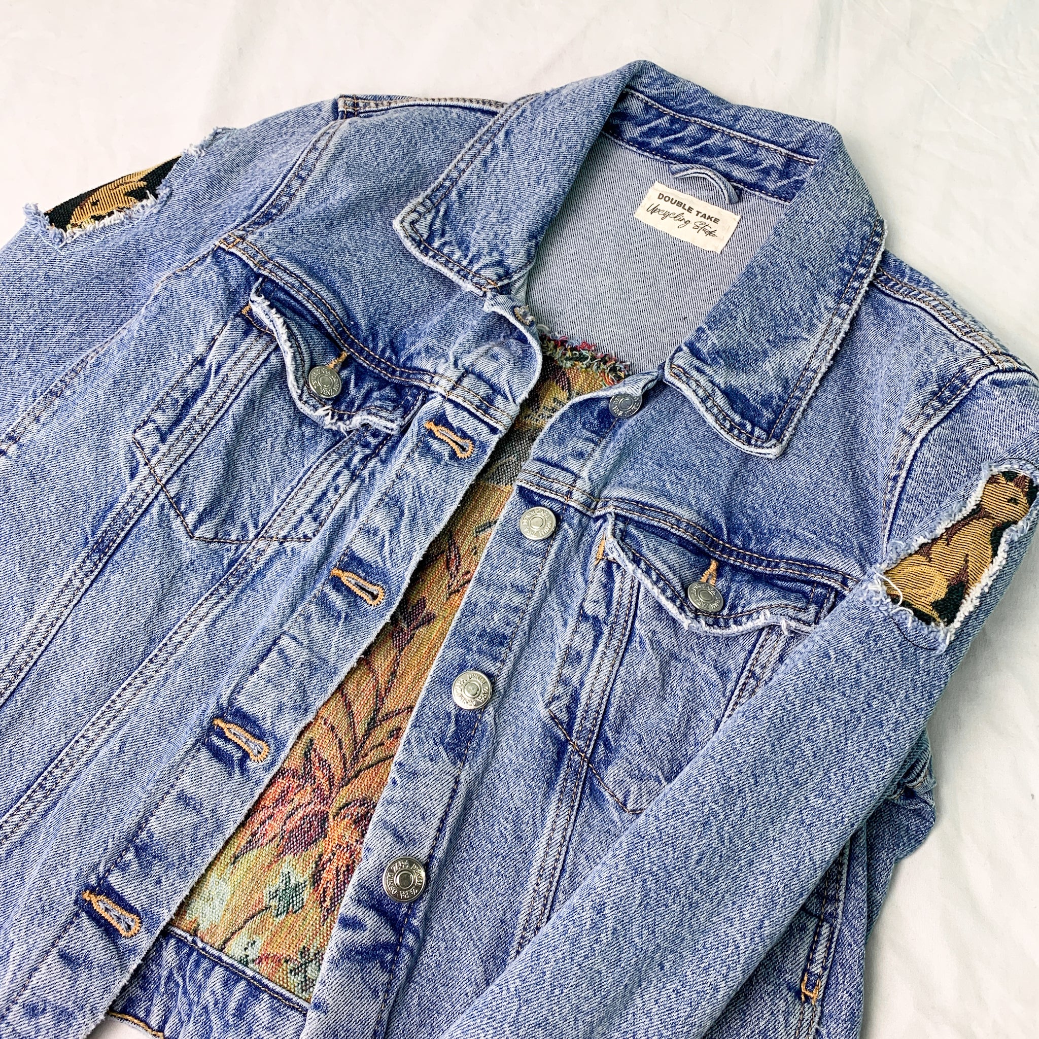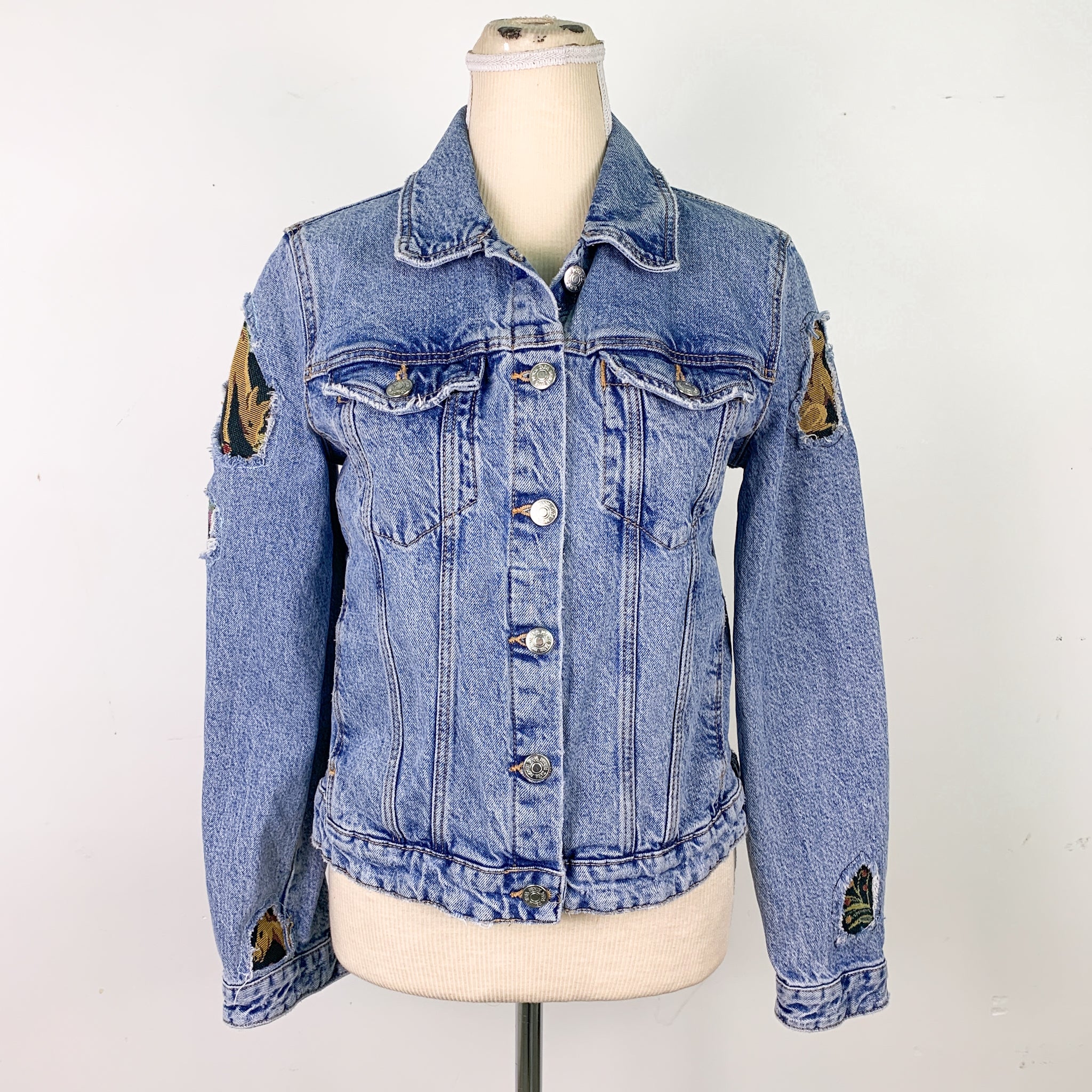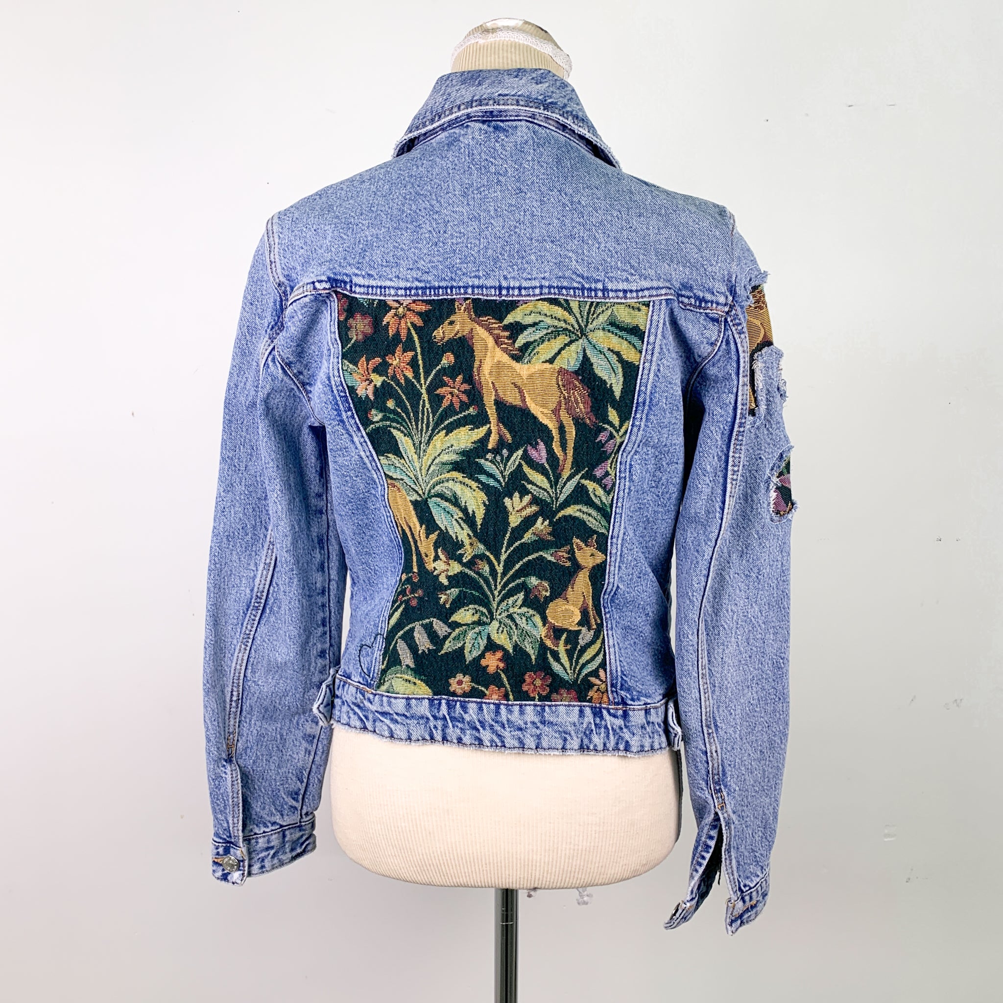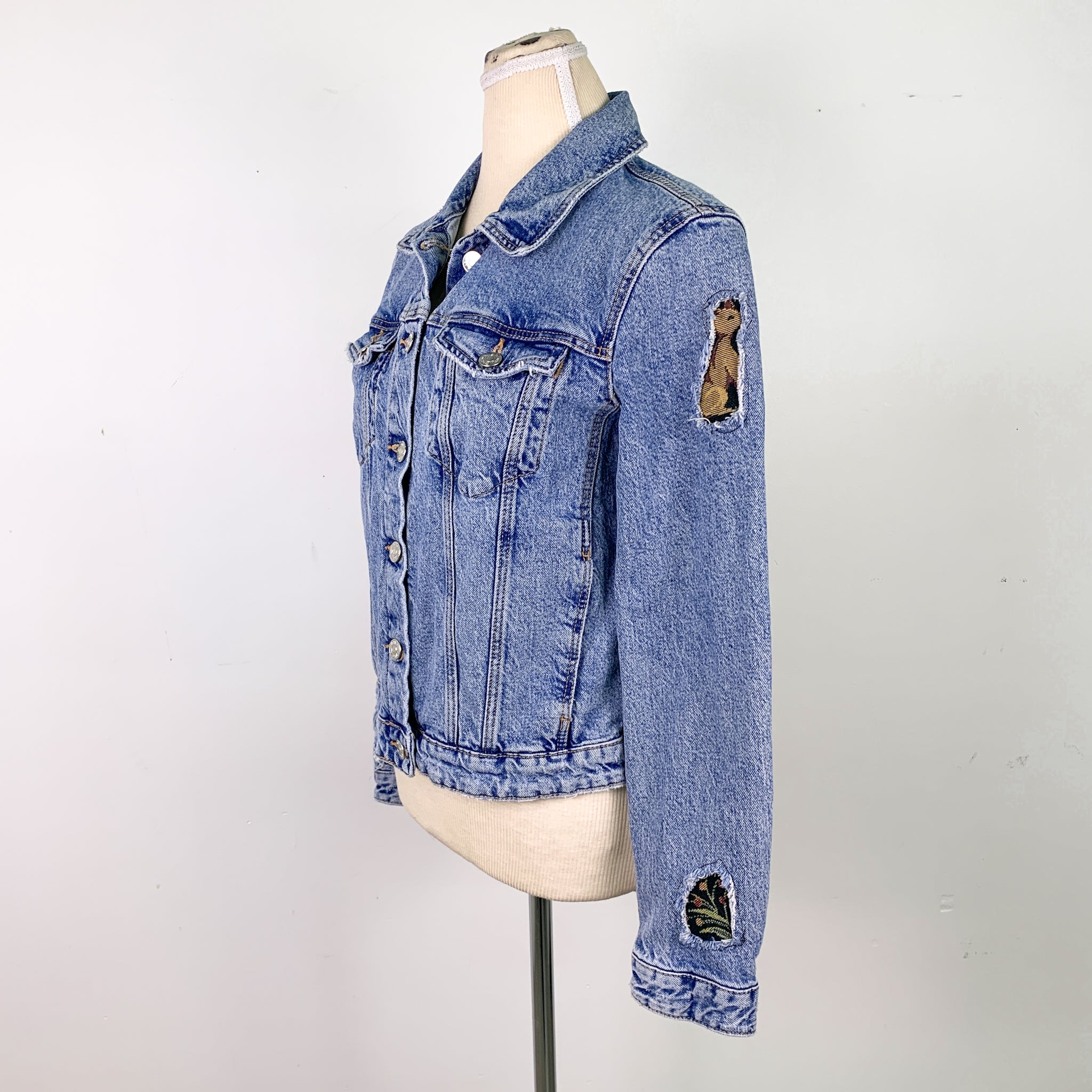 Upcycled Denim Jacket With Cutout Animal/Forest Patches