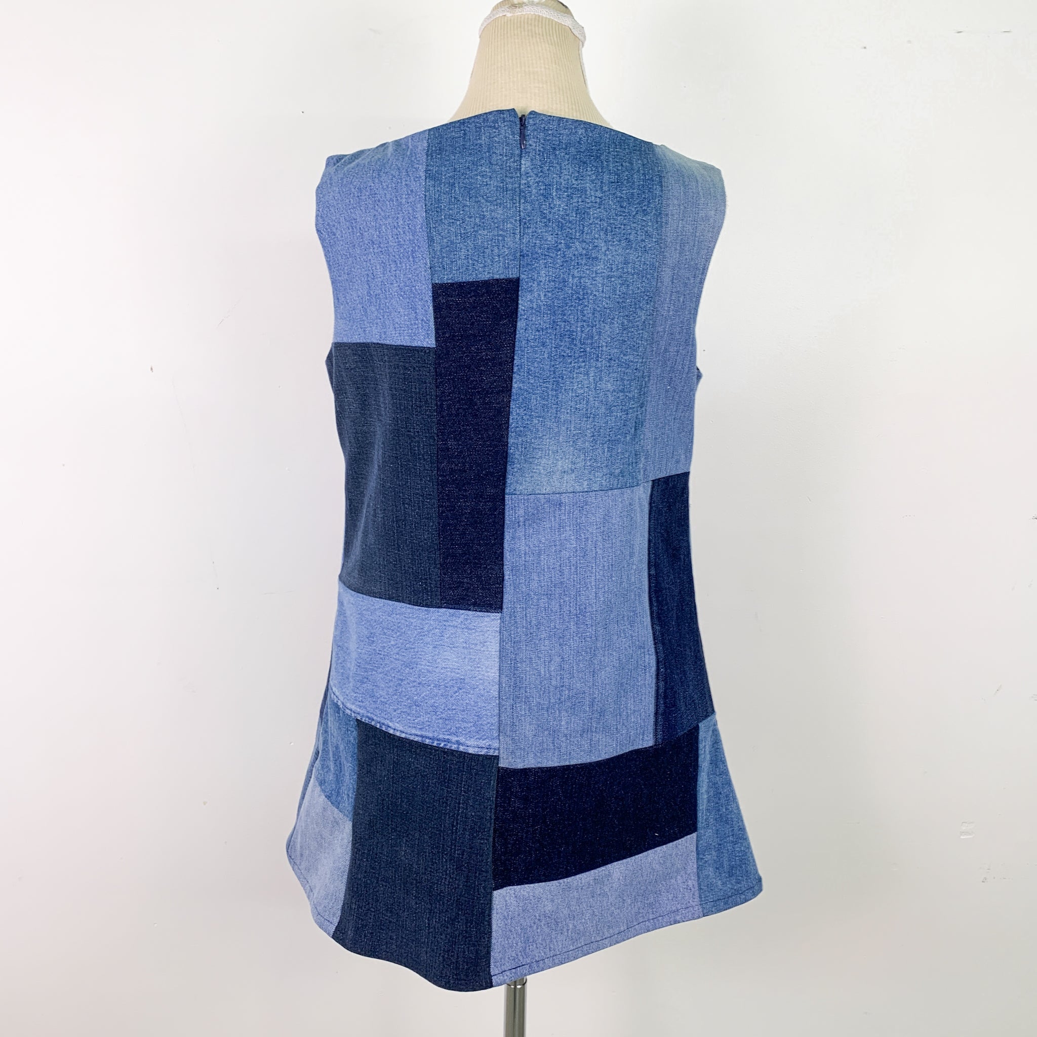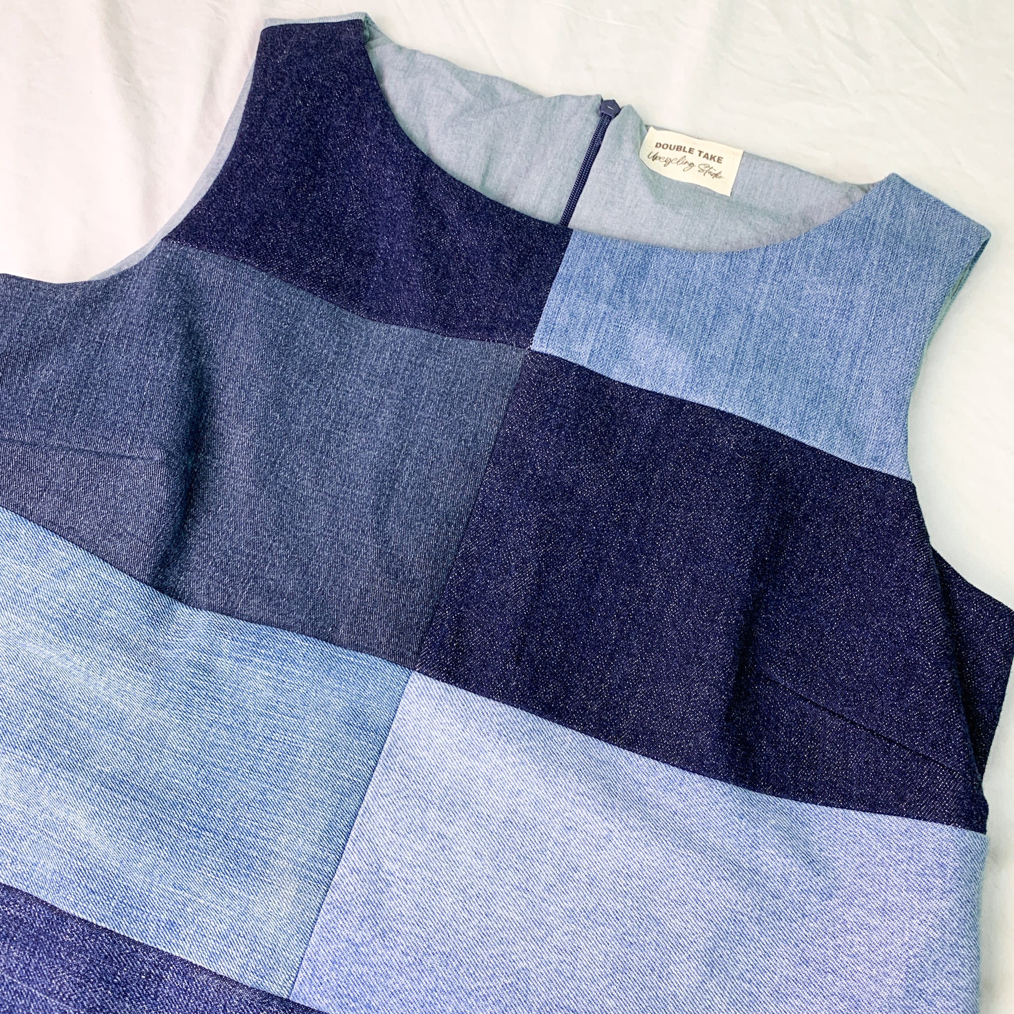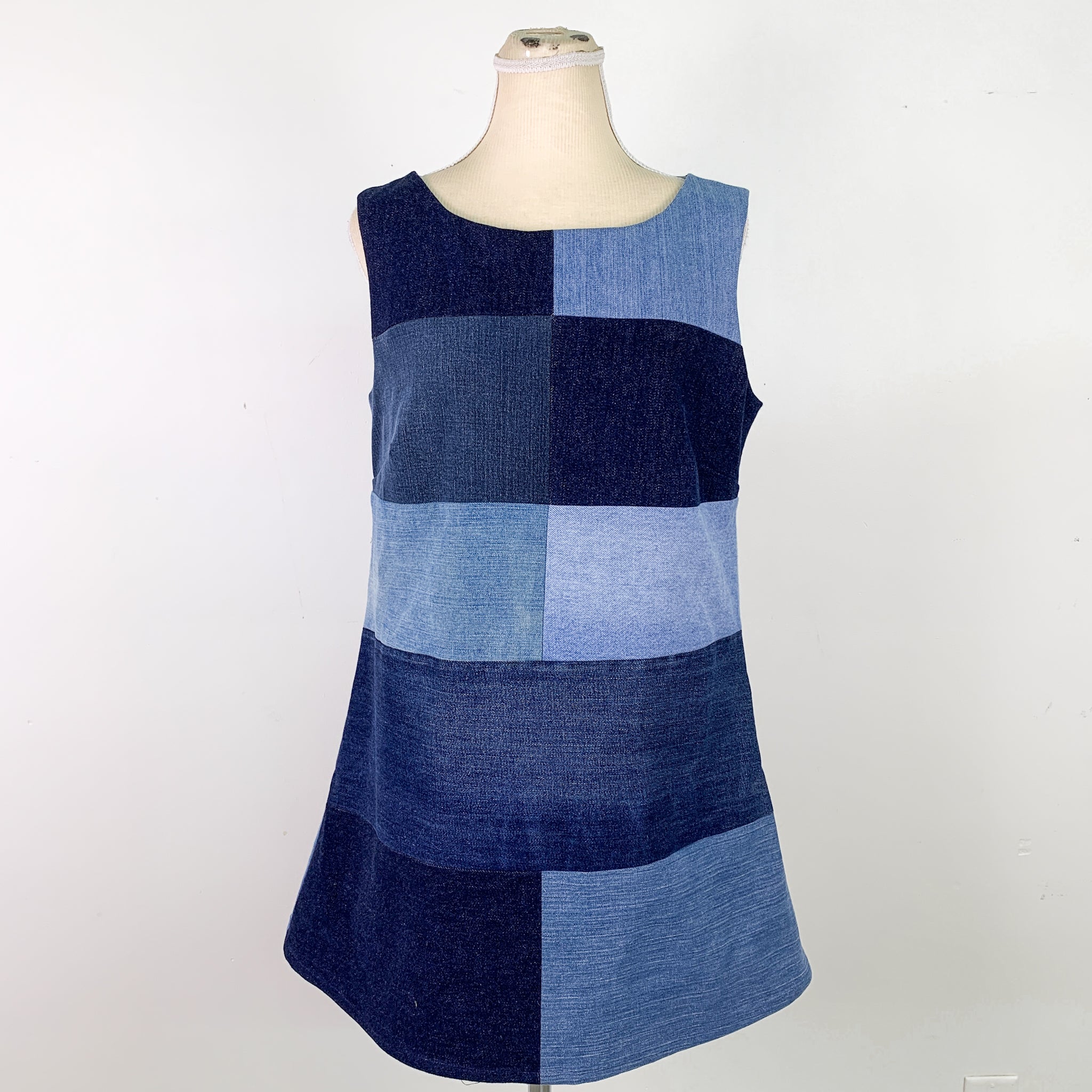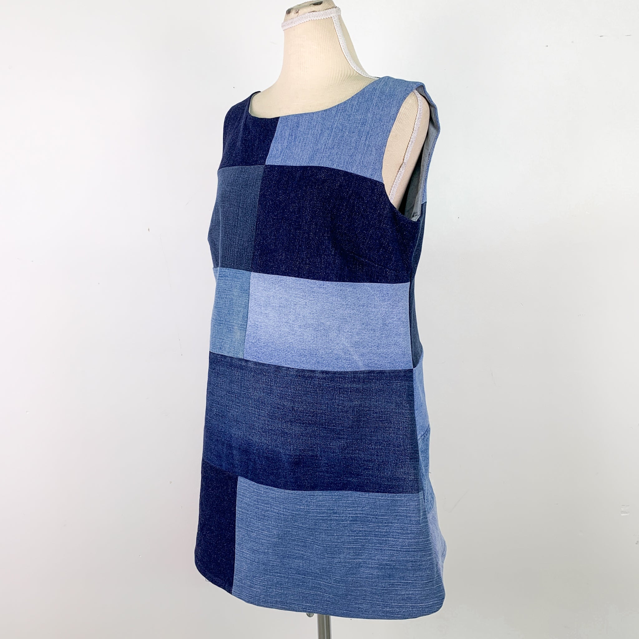 Upcycled Denim Patchwork Dress With Backzip & Lining (Medium)