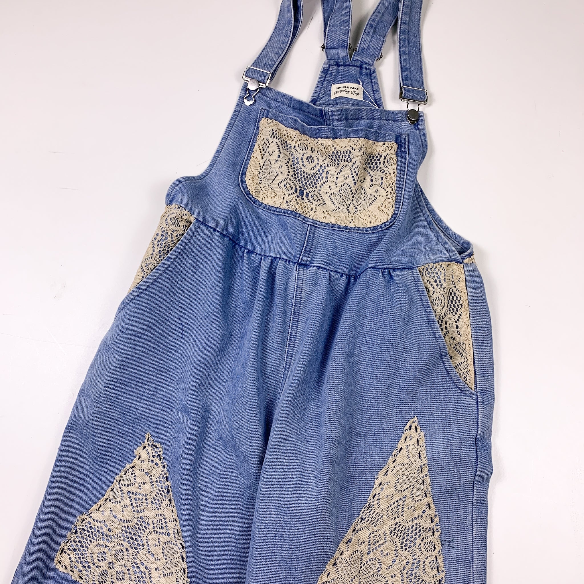 Upcycled Flared Overalls With Lace Crocheted Patches (X-Large)