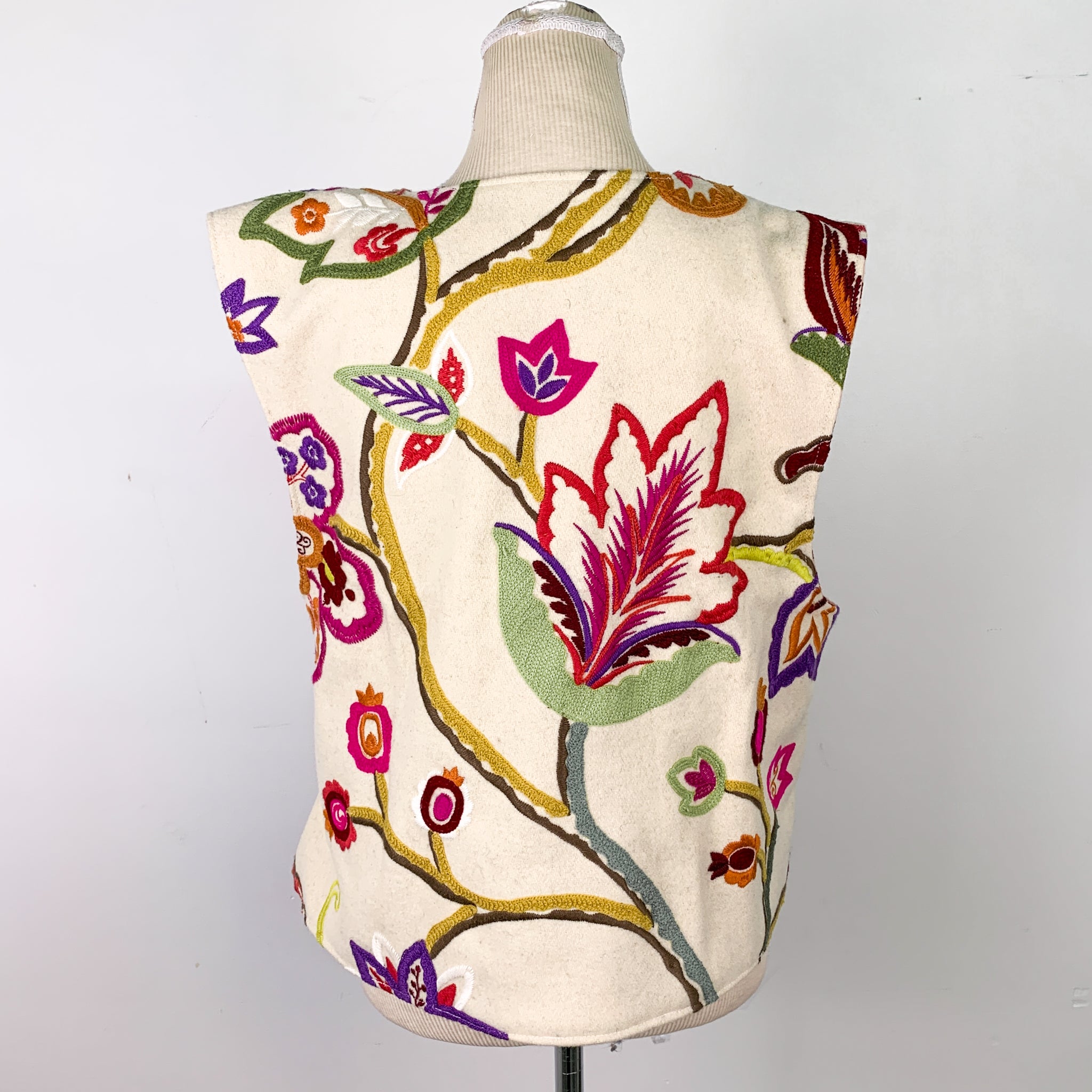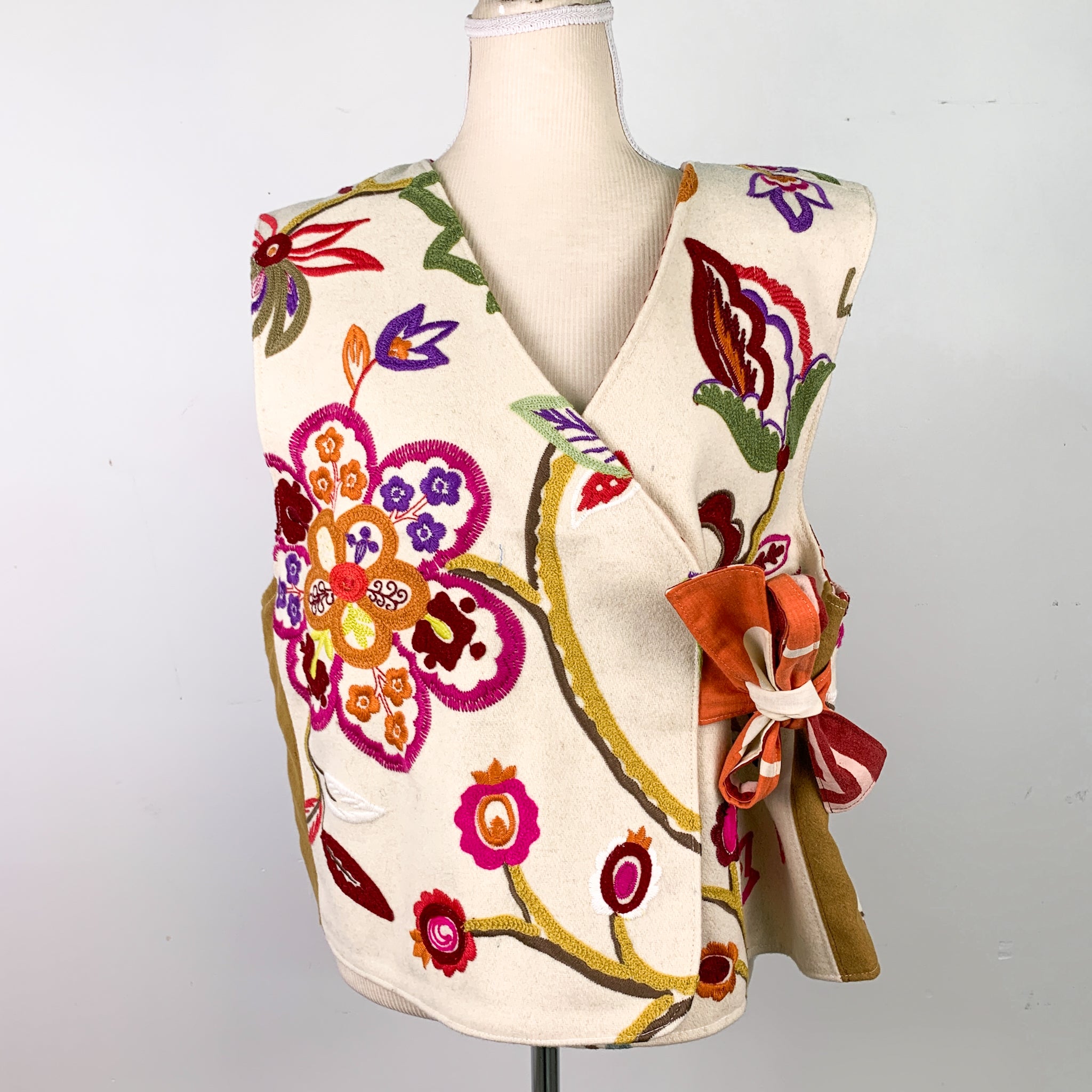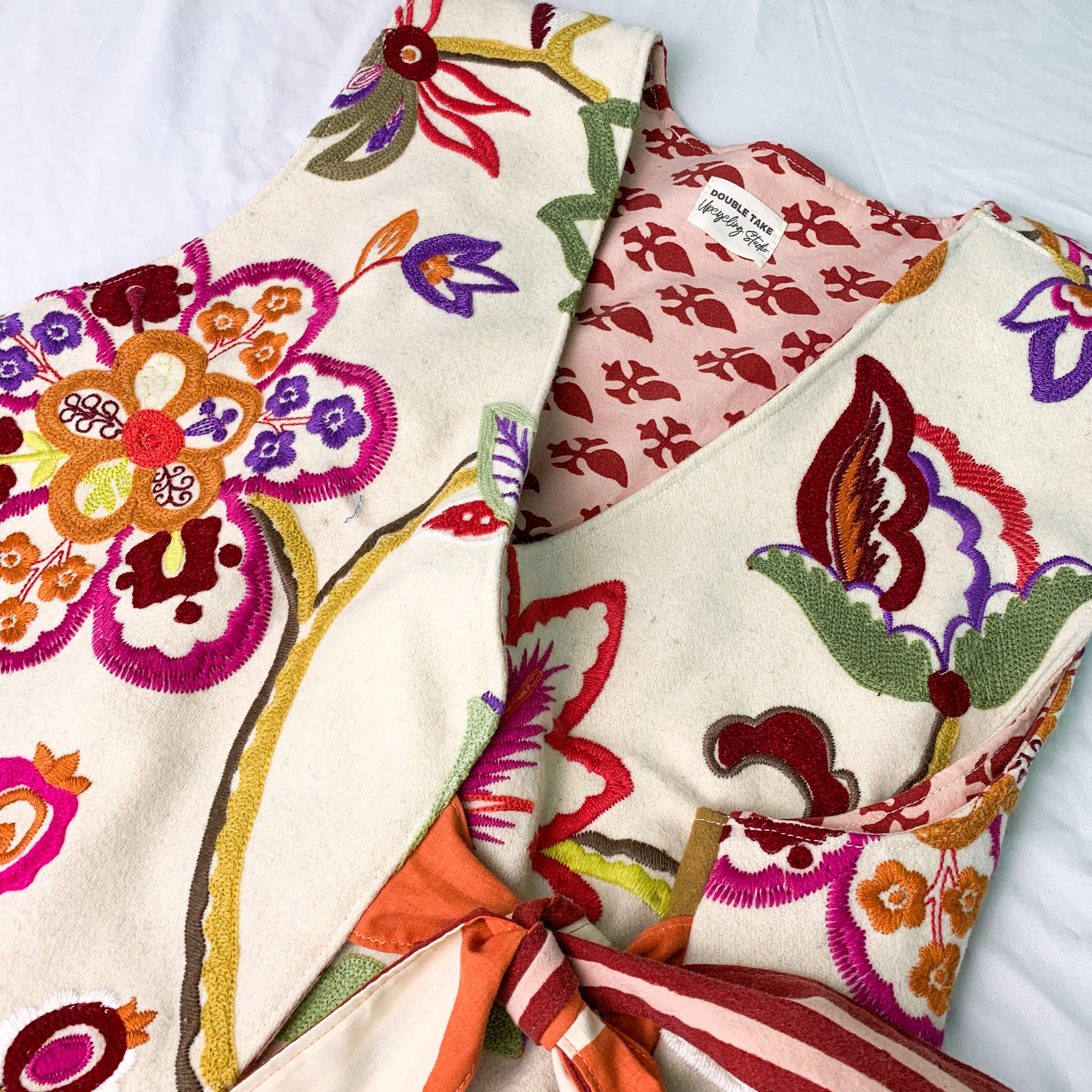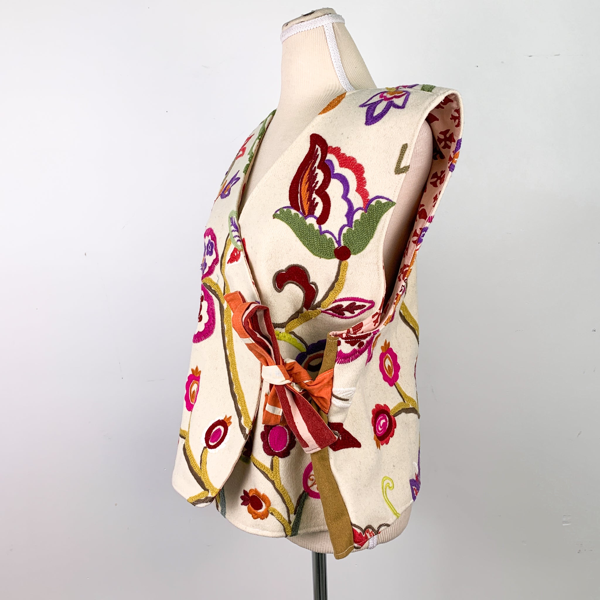 Upcycled Flower & Bird Pattern Lined Wrap Vest