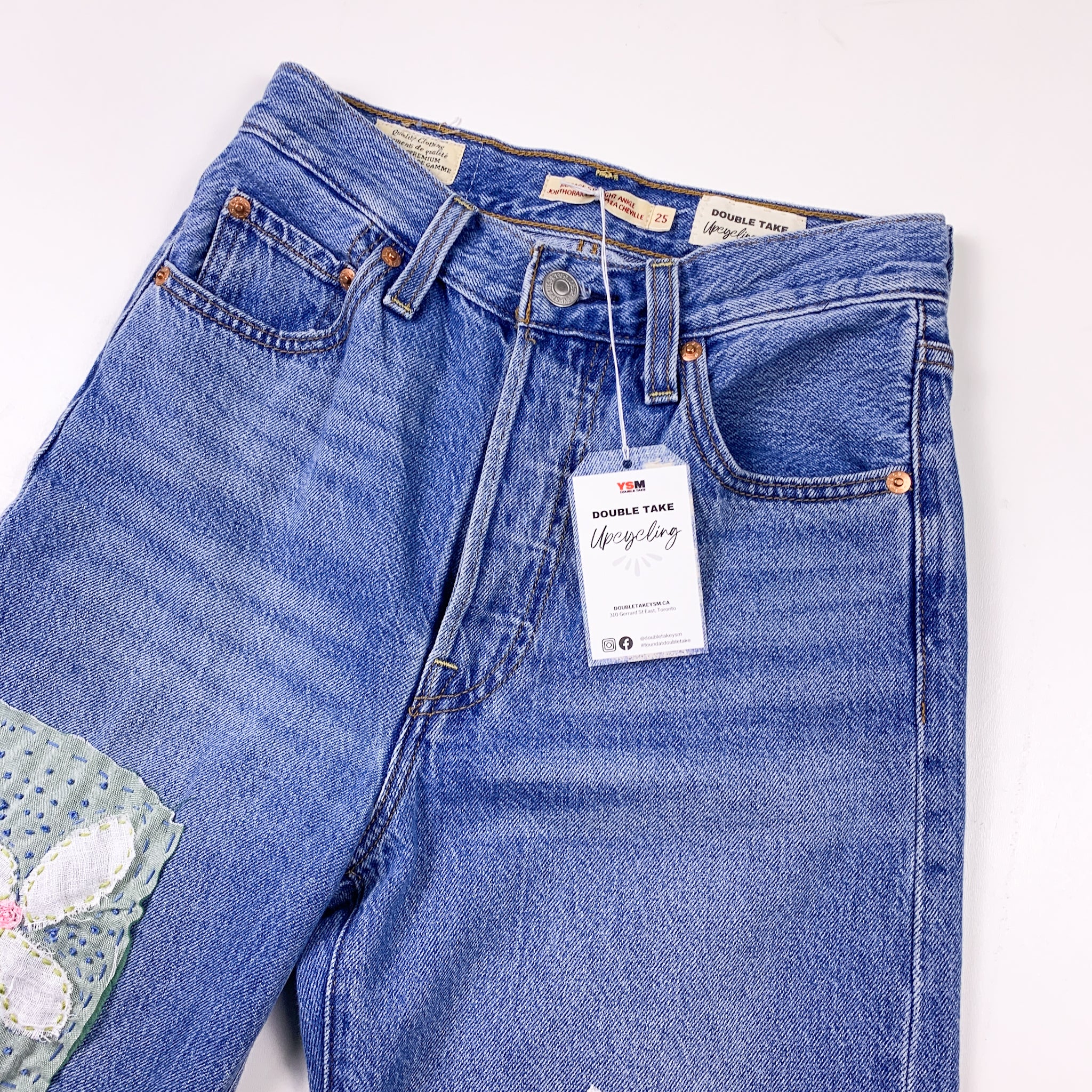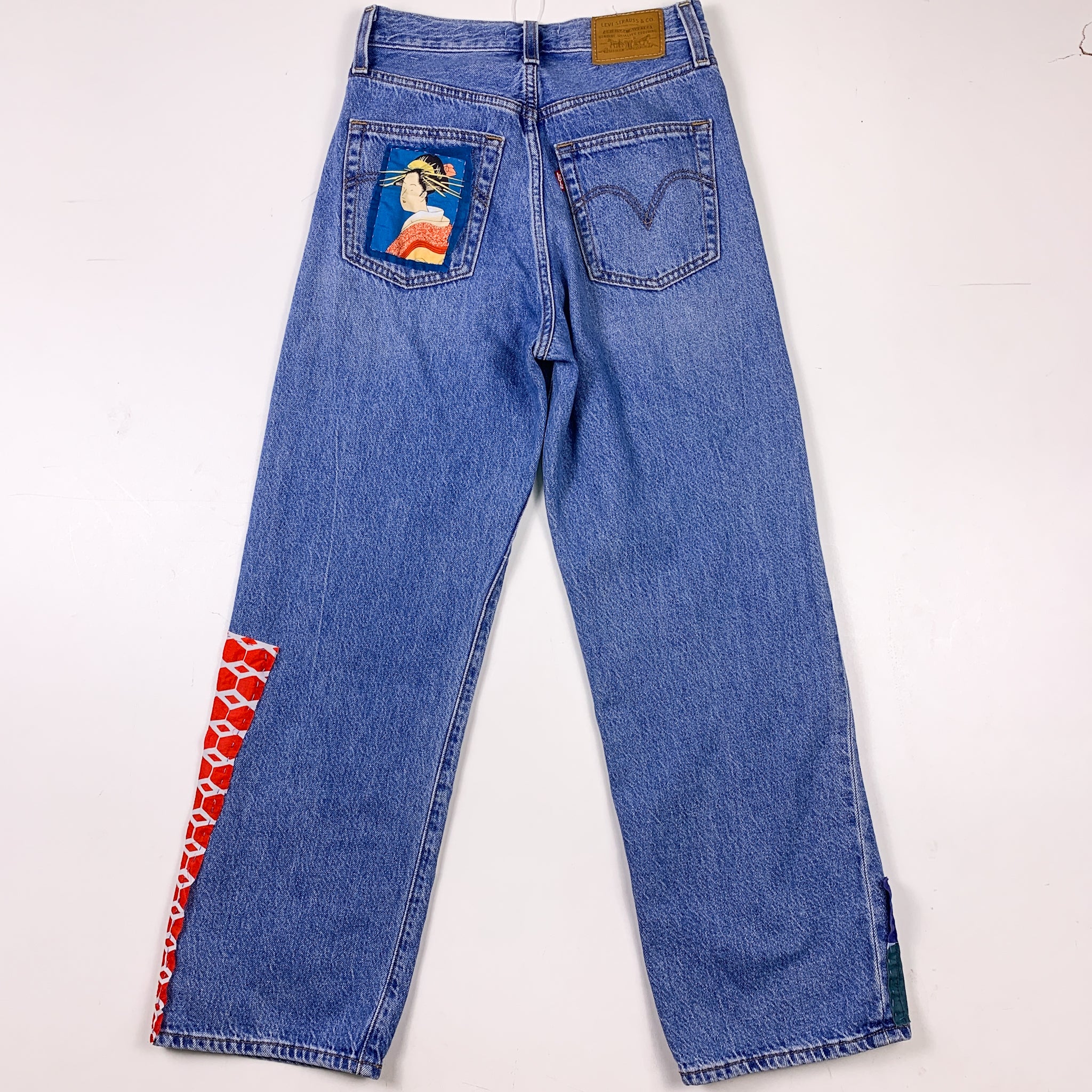 Upcycled Levi's Ribcage Straight Ankle Jeans With Handsewn Patchwork (25)