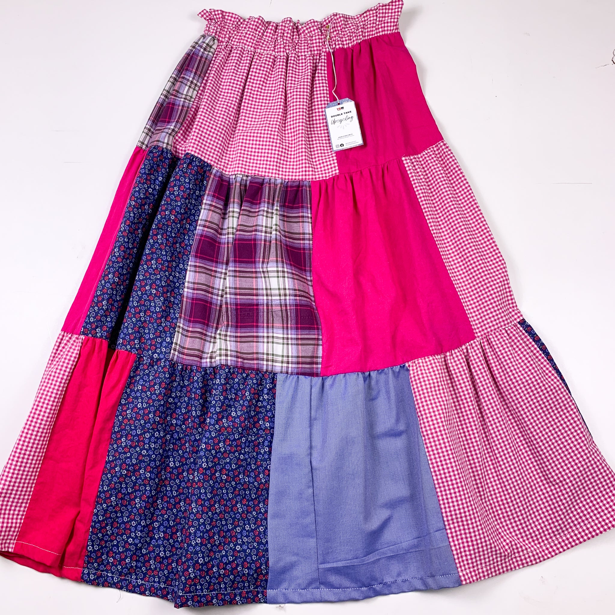 Upcycled Pink Cotton Patchwork Tiered Maxi Skirt (28)